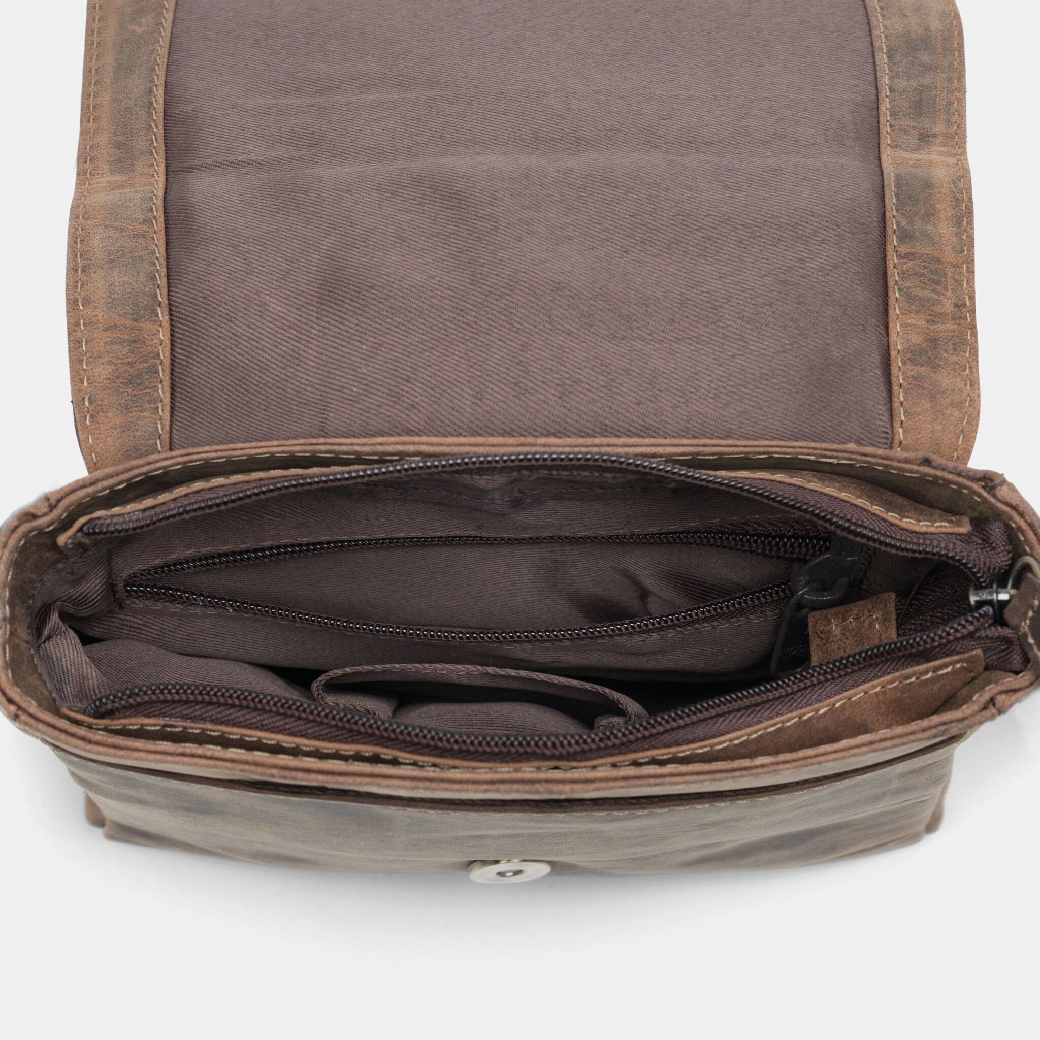 Кожаная сумка WILDERNESS : наружний карман, главный отдел на молнии, отделение для мобильного телефона, магнитная кнопка, регулируемый плечевой ремень