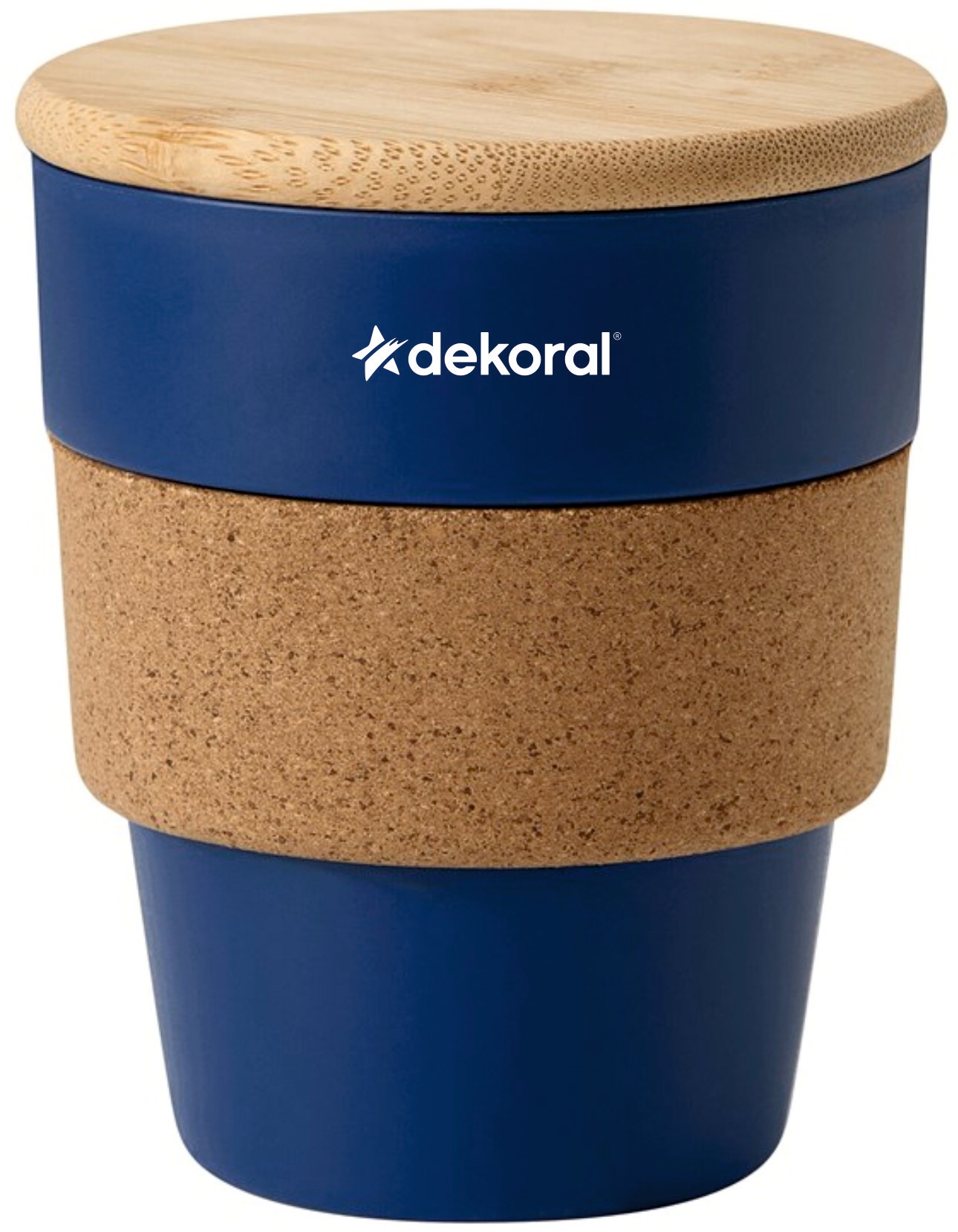 Кружка для напитков TRAVEL GRIP : изготовлена ​​из пластика, поверхность из пробкового дерева, съемная бамбуковая крышка с силиконовым уплотнительным кольцом, объем около 350 мл.