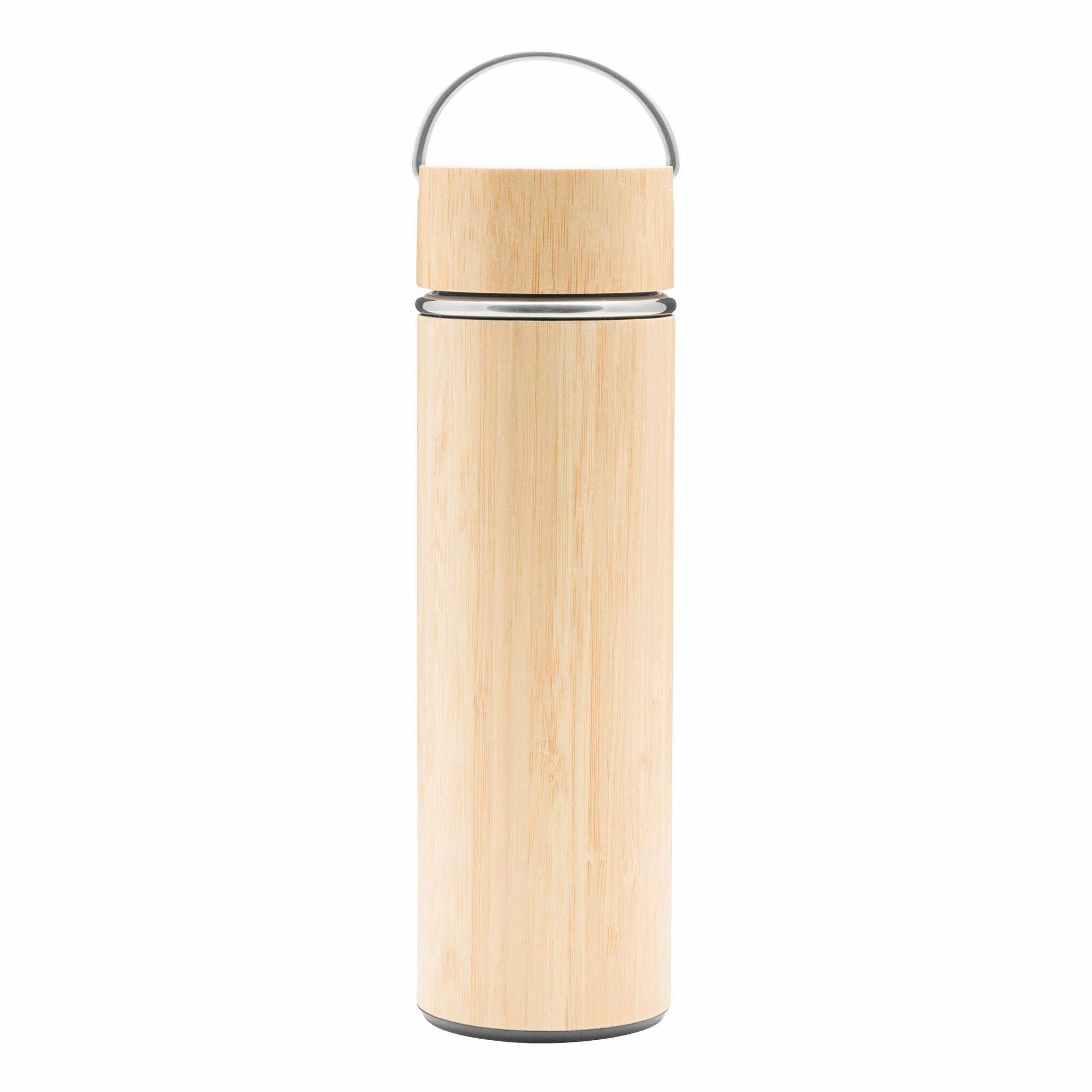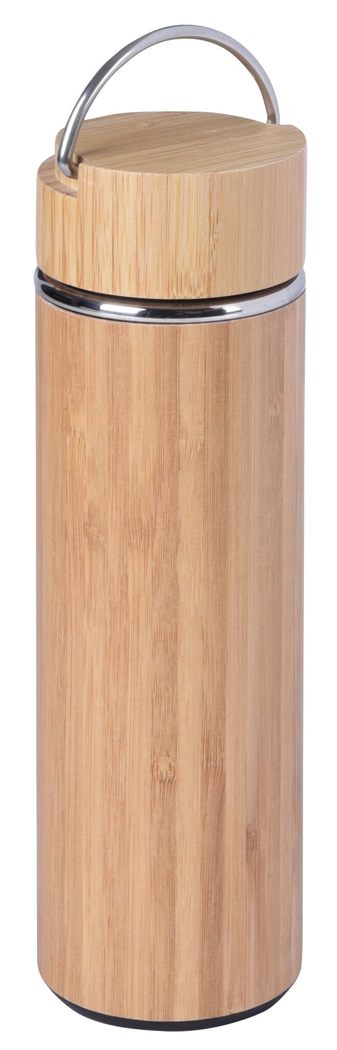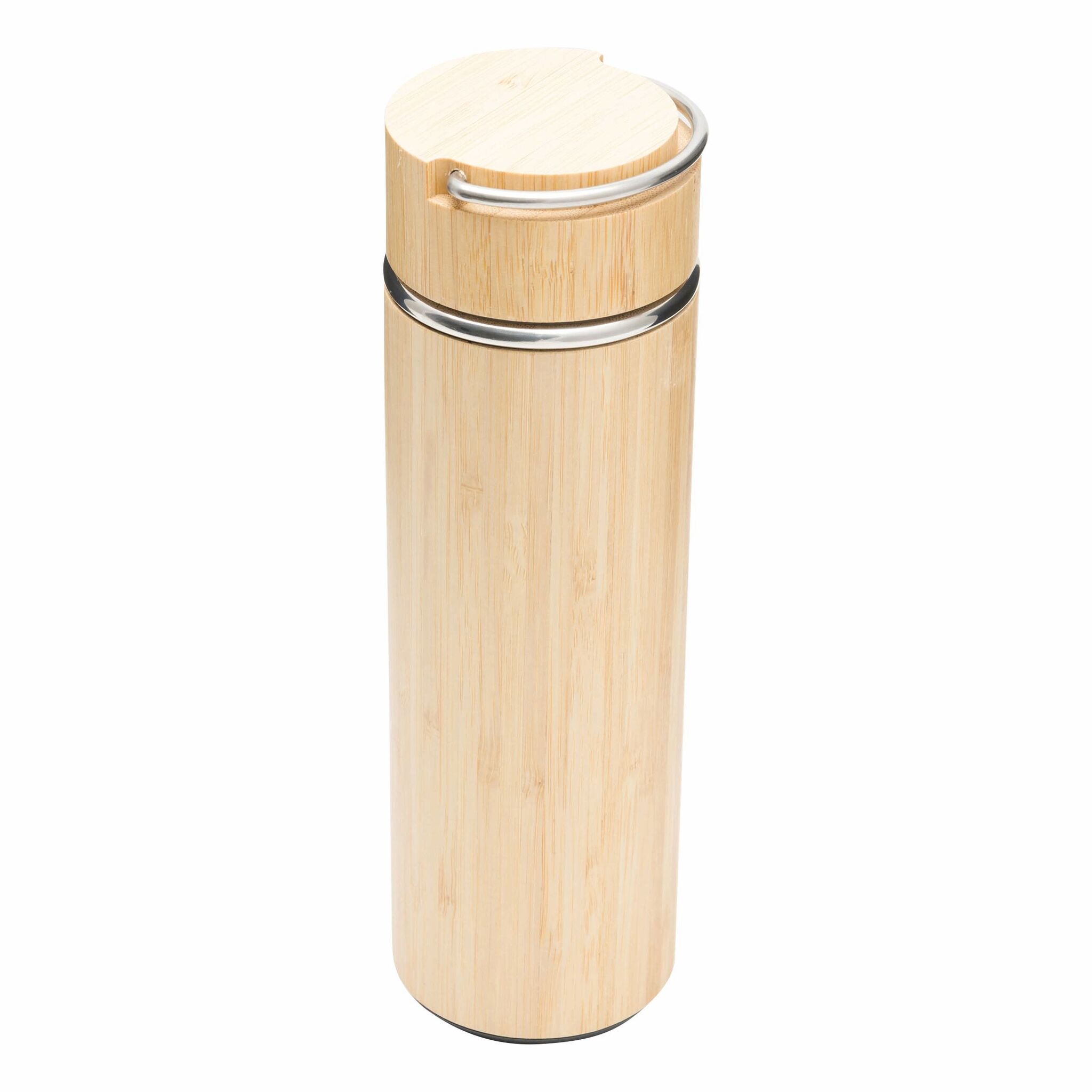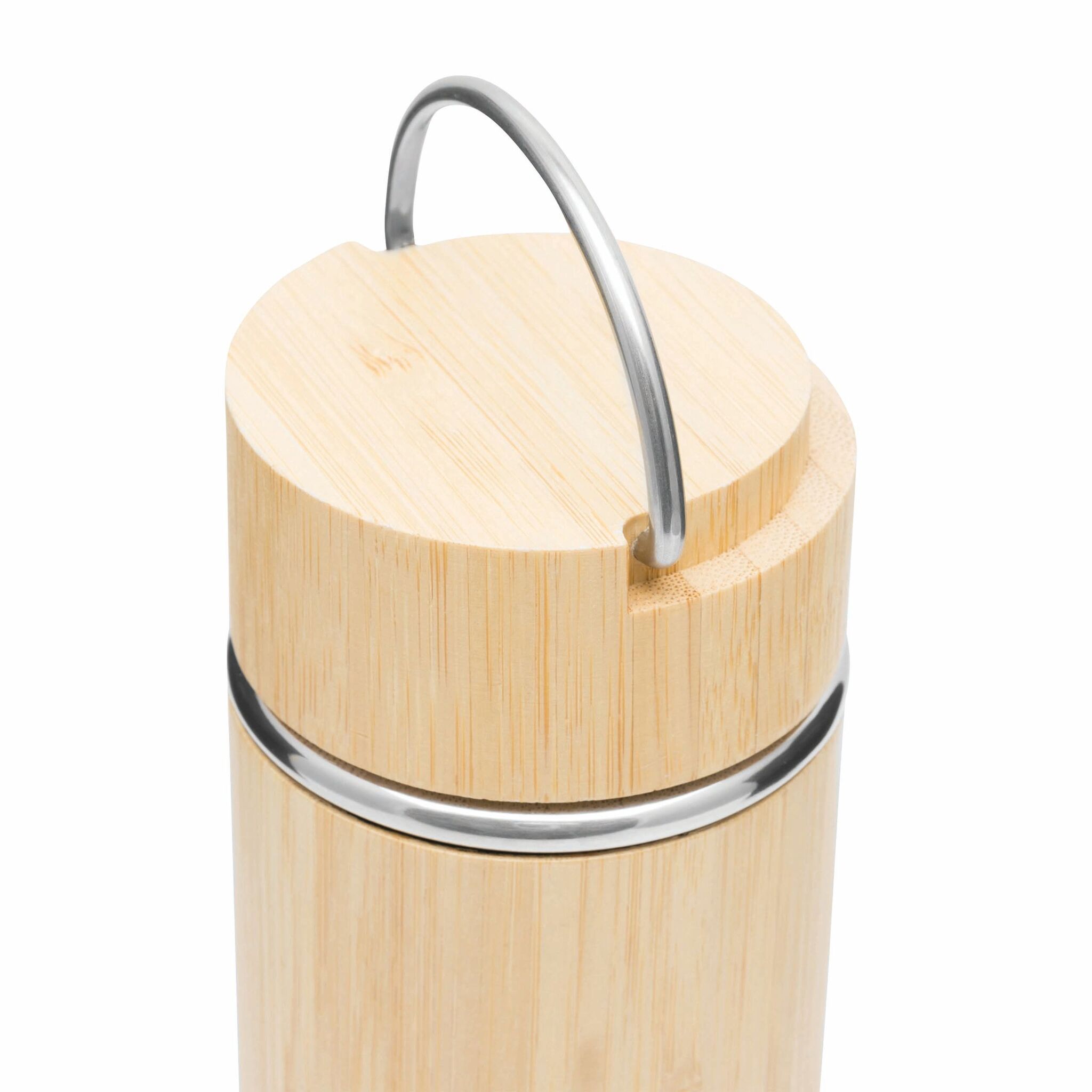 Кружка термическая BAMBOO HOT , с двойными стенками: внутри и снаружи из нержавеющей стали, снаружи покрыта бамбуком, завинчивающаяся крышка, силиконовое уплотнительное кольцо, ручка для переноски из нержавеющей стали, съемное сито, емкость ок. 400 мл