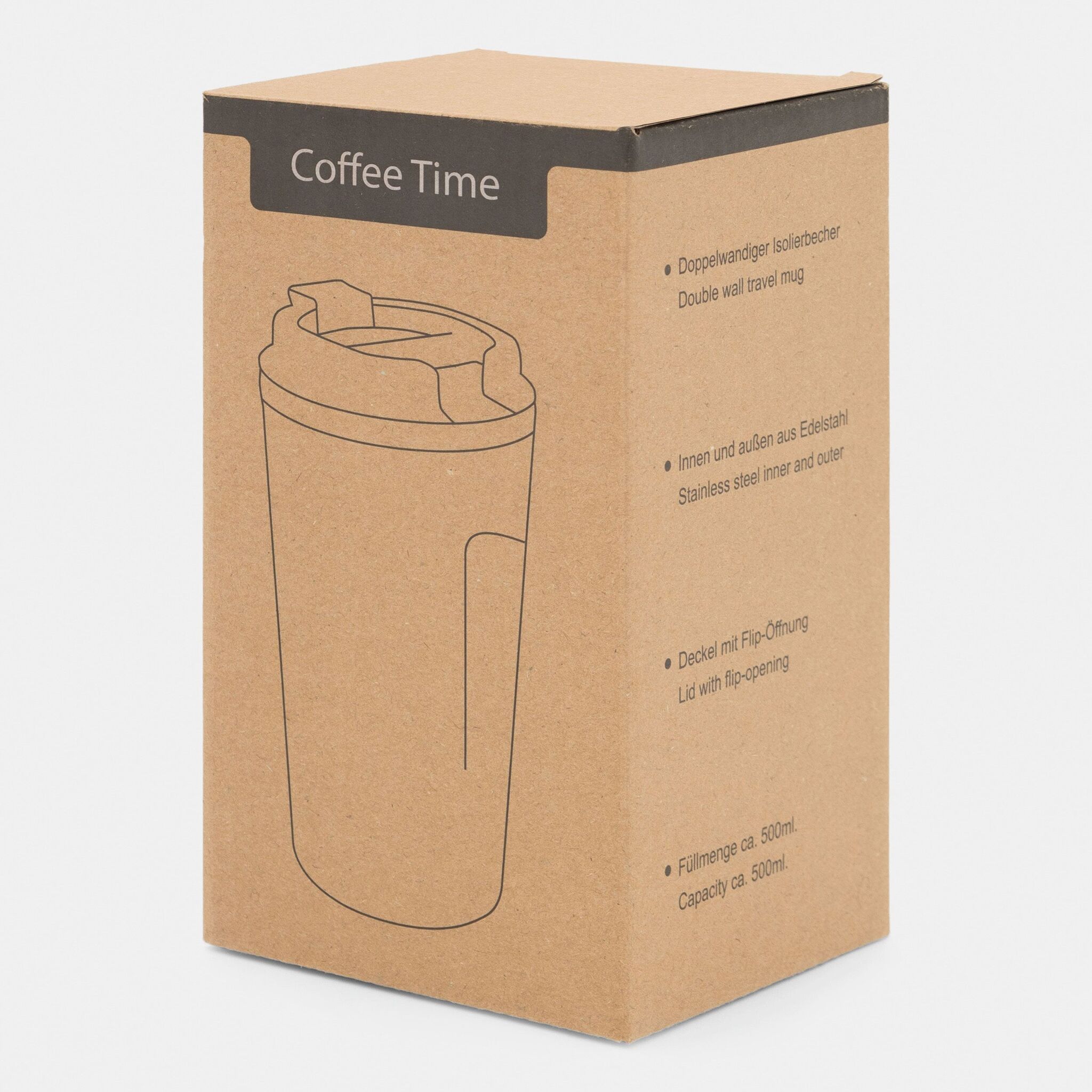 Кружка термическая COFFEE TIME , с двойными стенками: внутри и снаружи из нержавеющей стали, надежной завинчивающейся крышкой с силиконовым уплотнительным кольцом и встроенным отверстием для питья, емкость ок. 500 мл