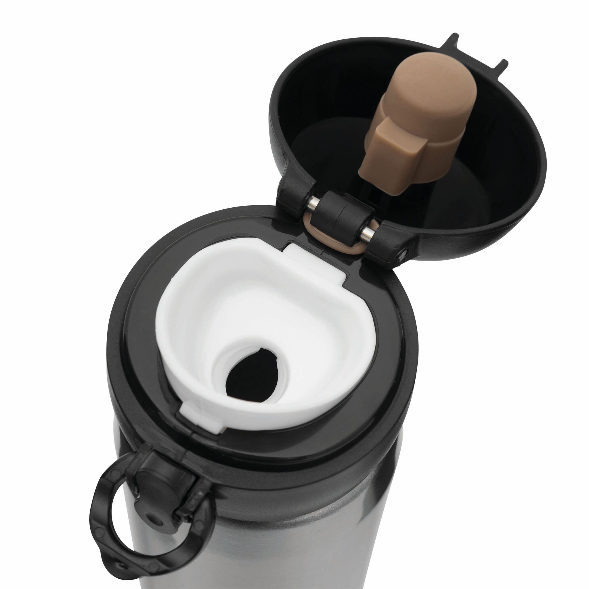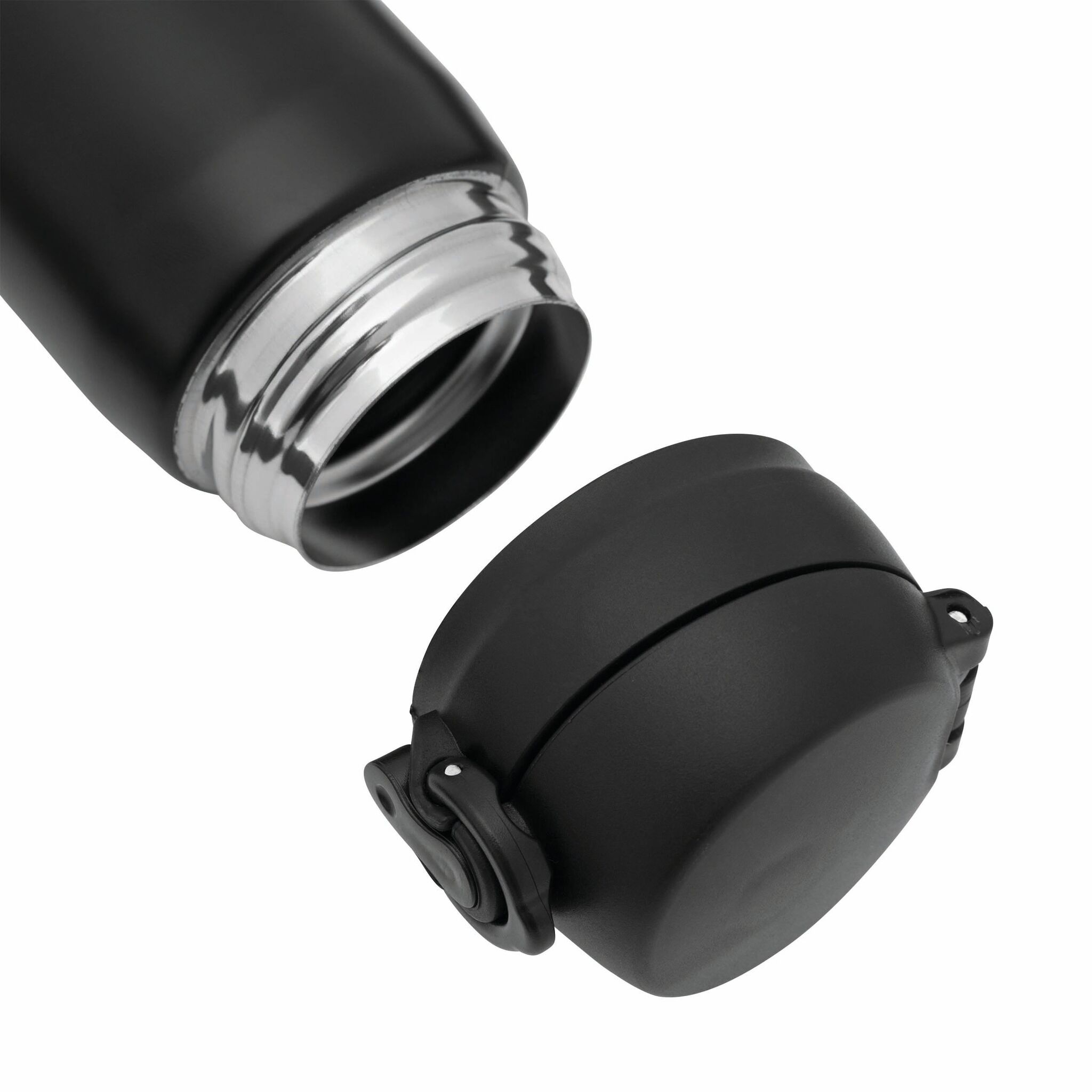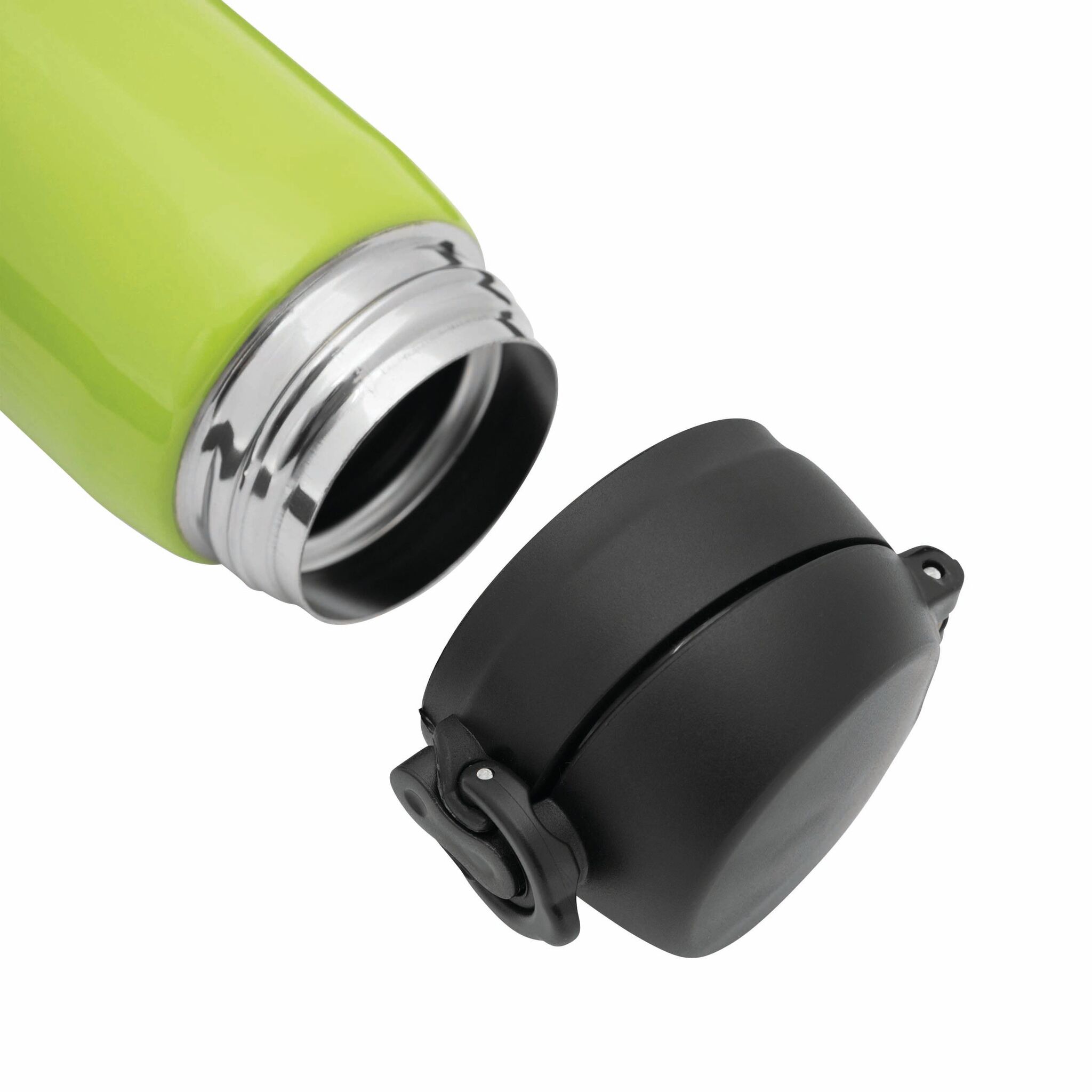 Кружка термическая OOLONG : двустенная, внутри и снаружи из нержавеющей стали, с носиком, завинчивающейся надежной крышкой и кнопкой, емкость около 400 мл.