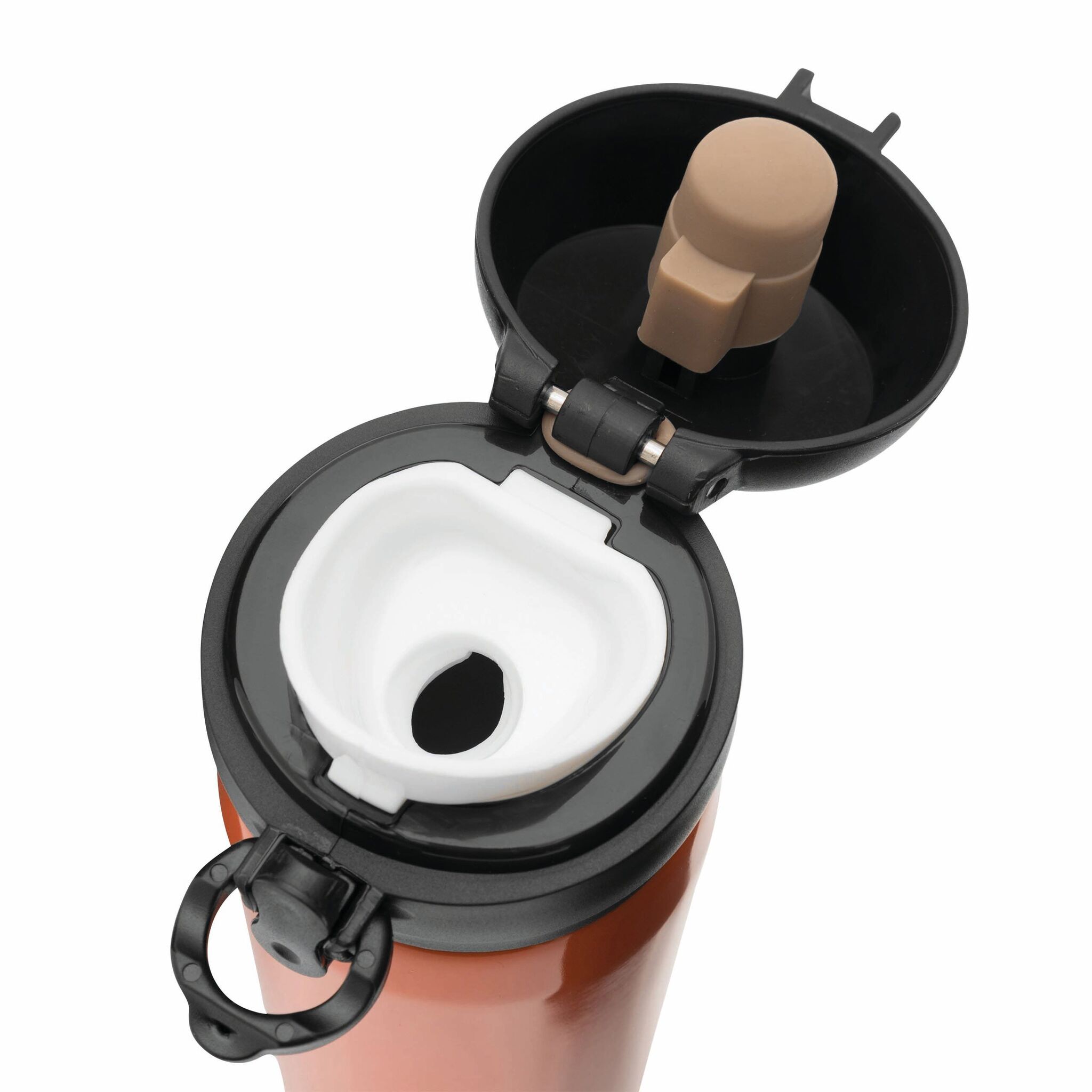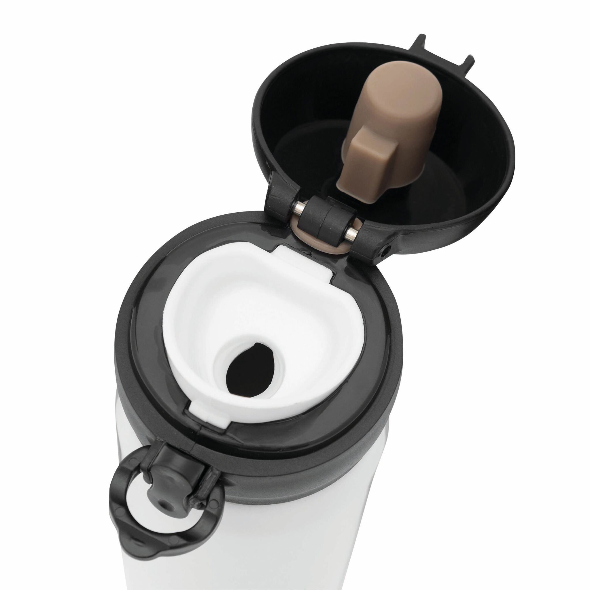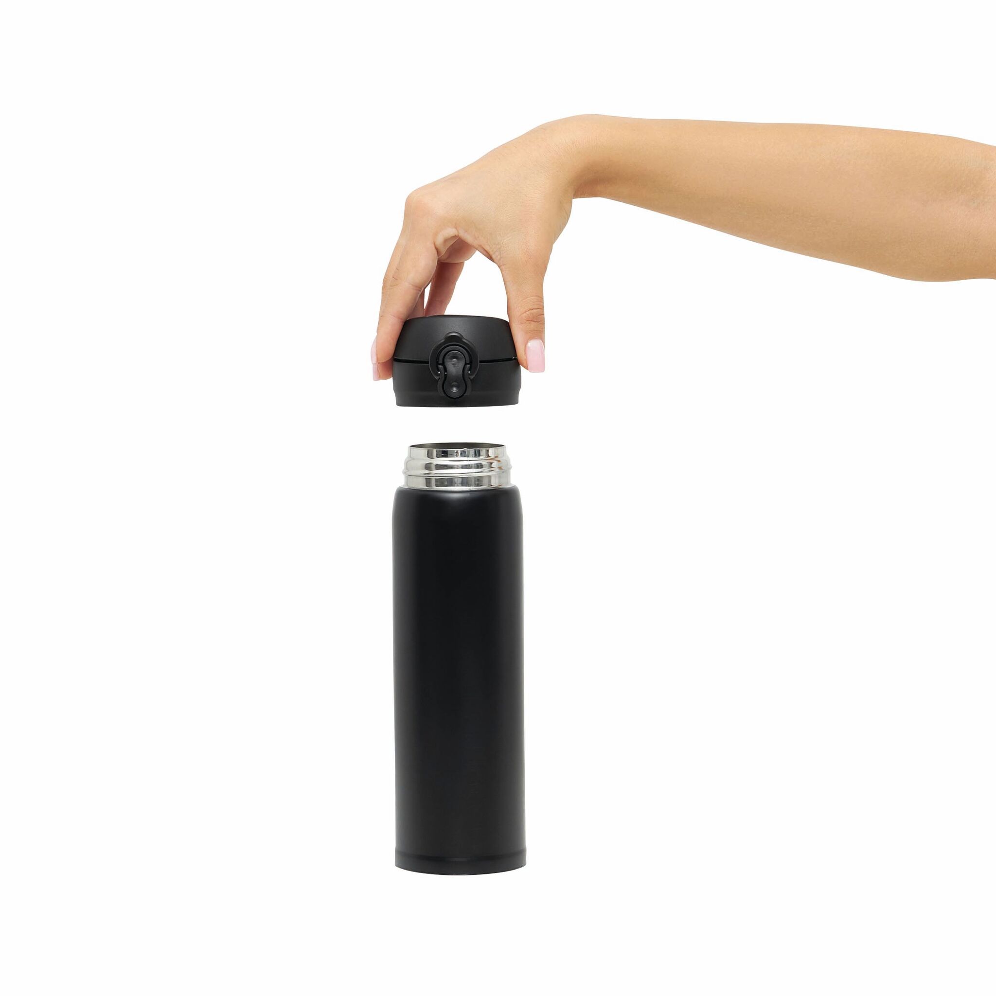 Кружка термическая OOLONG : двустенная, внутри и снаружи из нержавеющей стали, с носиком, завинчивающейся надежной крышкой и кнопкой, емкость около 400 мл.