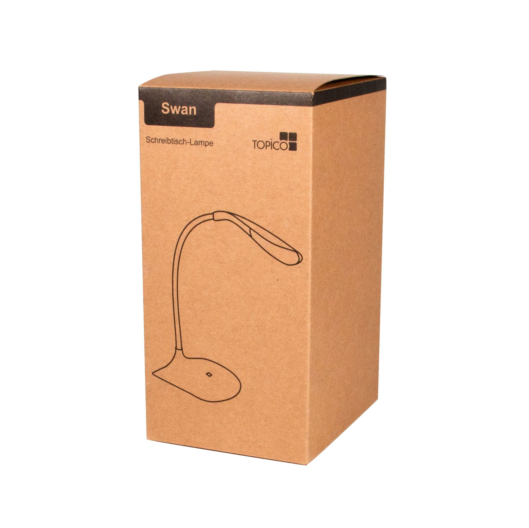 Лампа настольная SWAN гибкий кронштейн с 14 диодами LED, 3 уровня яркости, сенсорный вкл/выкл, питание через USB кабель (длина ок.120 см), универсальна в применении благодаря встроенному аккумулятору, потребляемая мощность до 1,5W, резиновая подставка, упакована в коробку