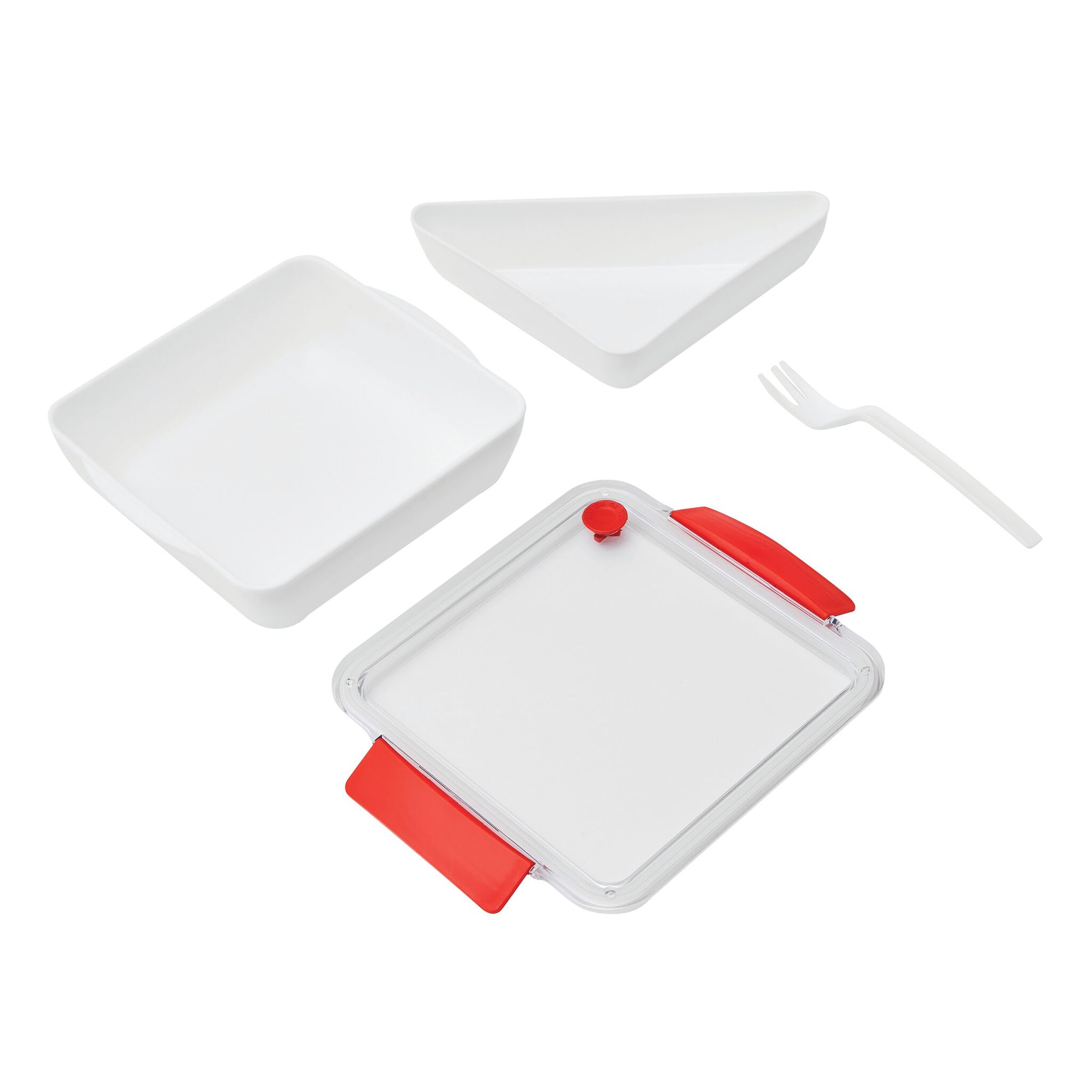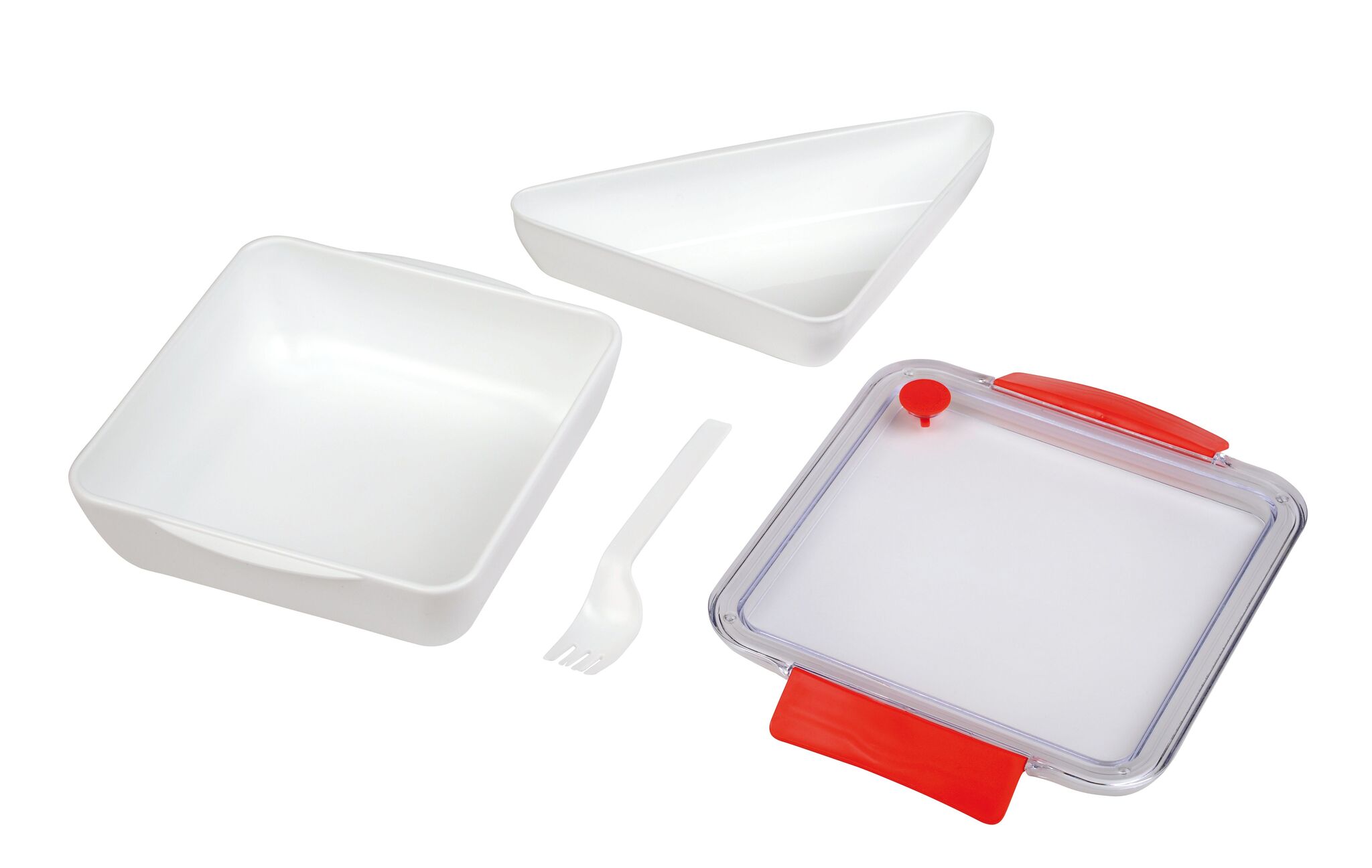 Ланч-бокс DELICIOUS с отделением (oк. 400 мл), пластиковой вилкой в наборе, общий объем oк. 1000 мл, в крышке есть клапан для выпуска воздуха, контейнер можно мыть в посудомоечной машине и использовать в микроволновой печи.