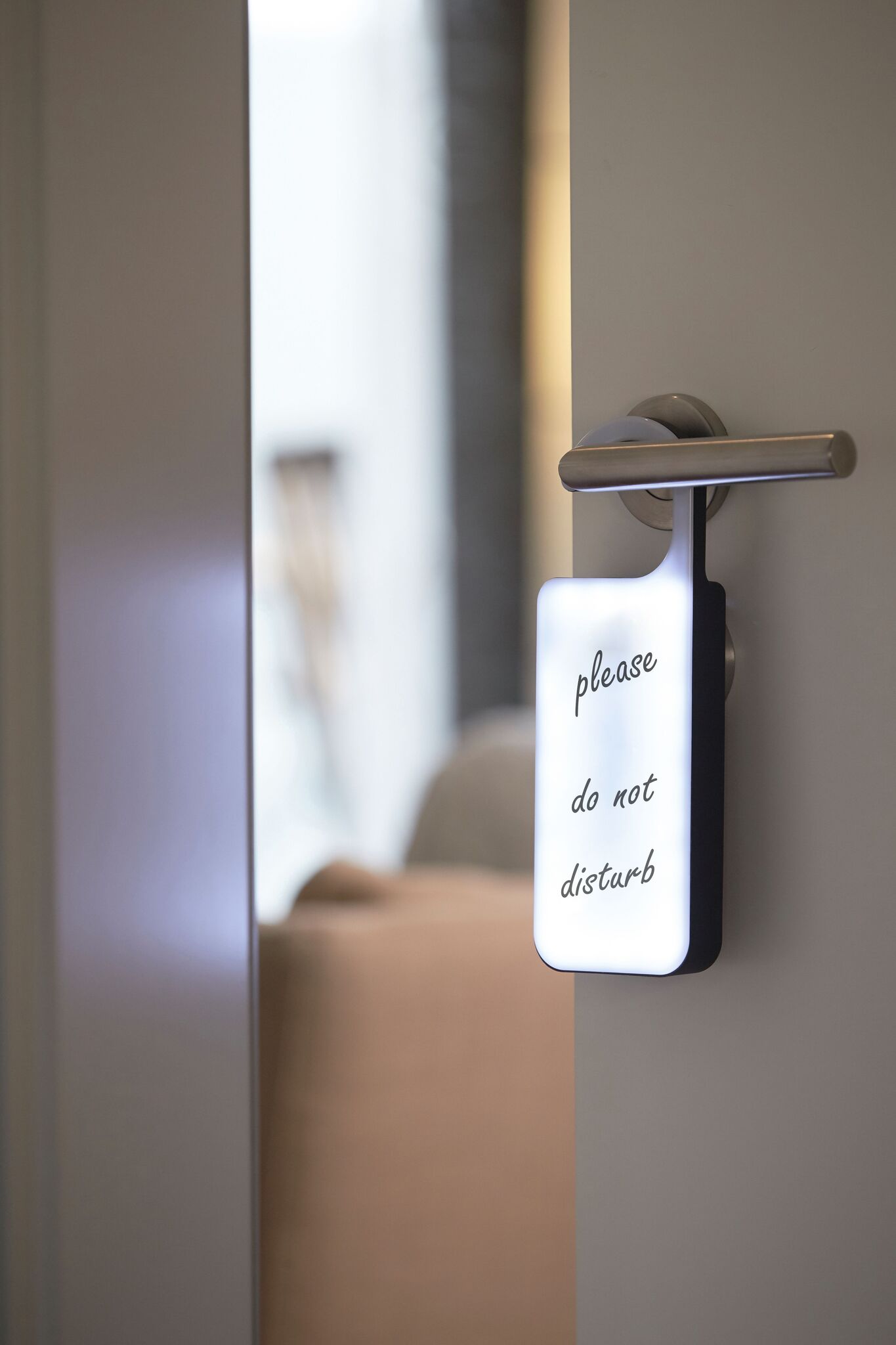 LED вывеска на дверь DO NOT DISTURB со светодиодной лентой внутри, сбоку выключатель, со стирающимся маркером и стеркой для написания сообщений на вывеске, 3 x AAA батарейки (нет в наборе)