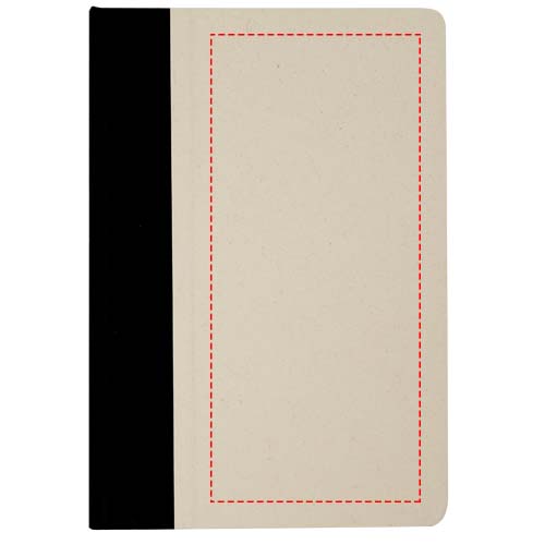 Liliana блокнот формата А5 в твердой обложке со скругленными углами и 80 линованными листами бумаги плотностью 90 г/м². Крышка изготовлена из RPET и пластика из сахарного тростника.