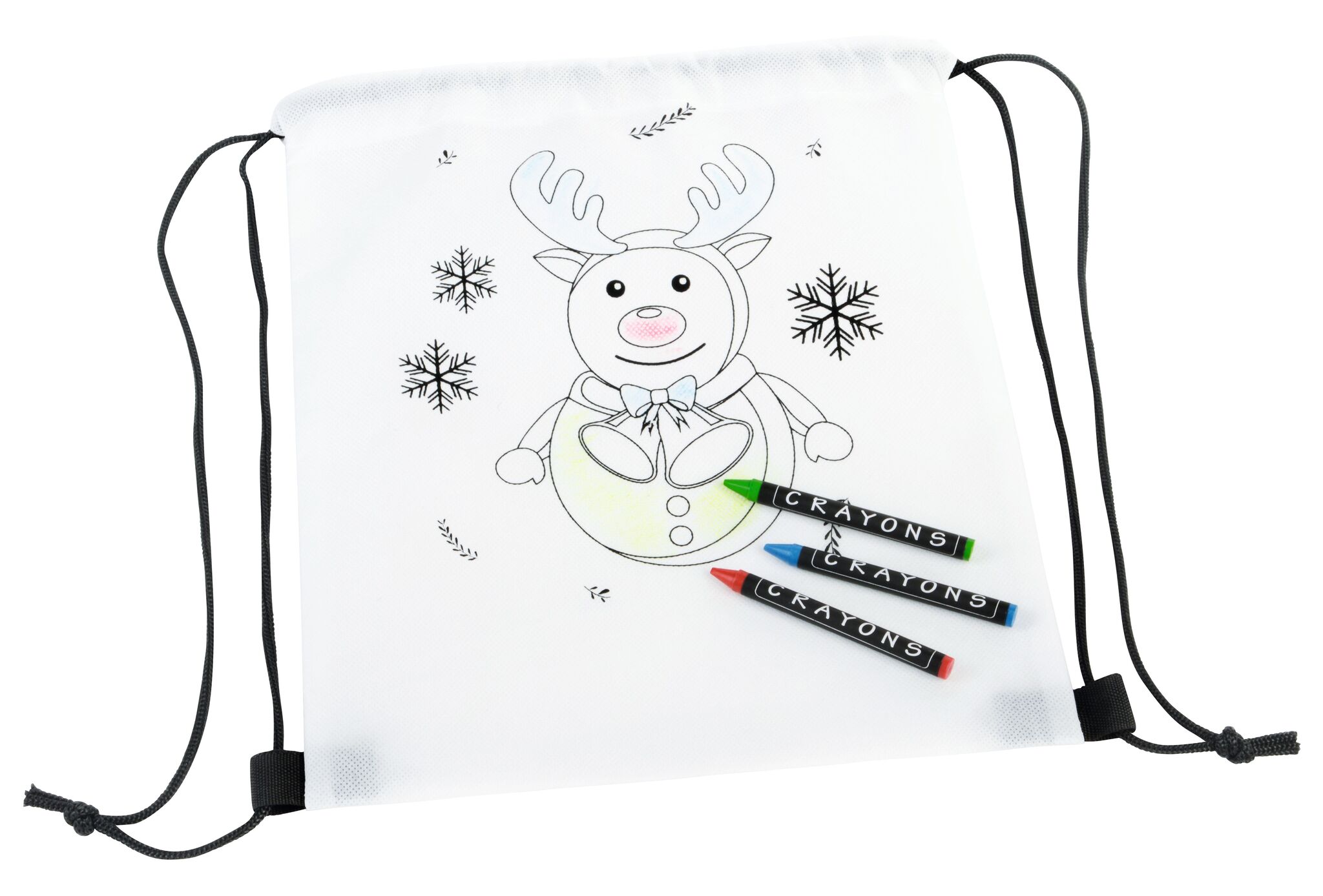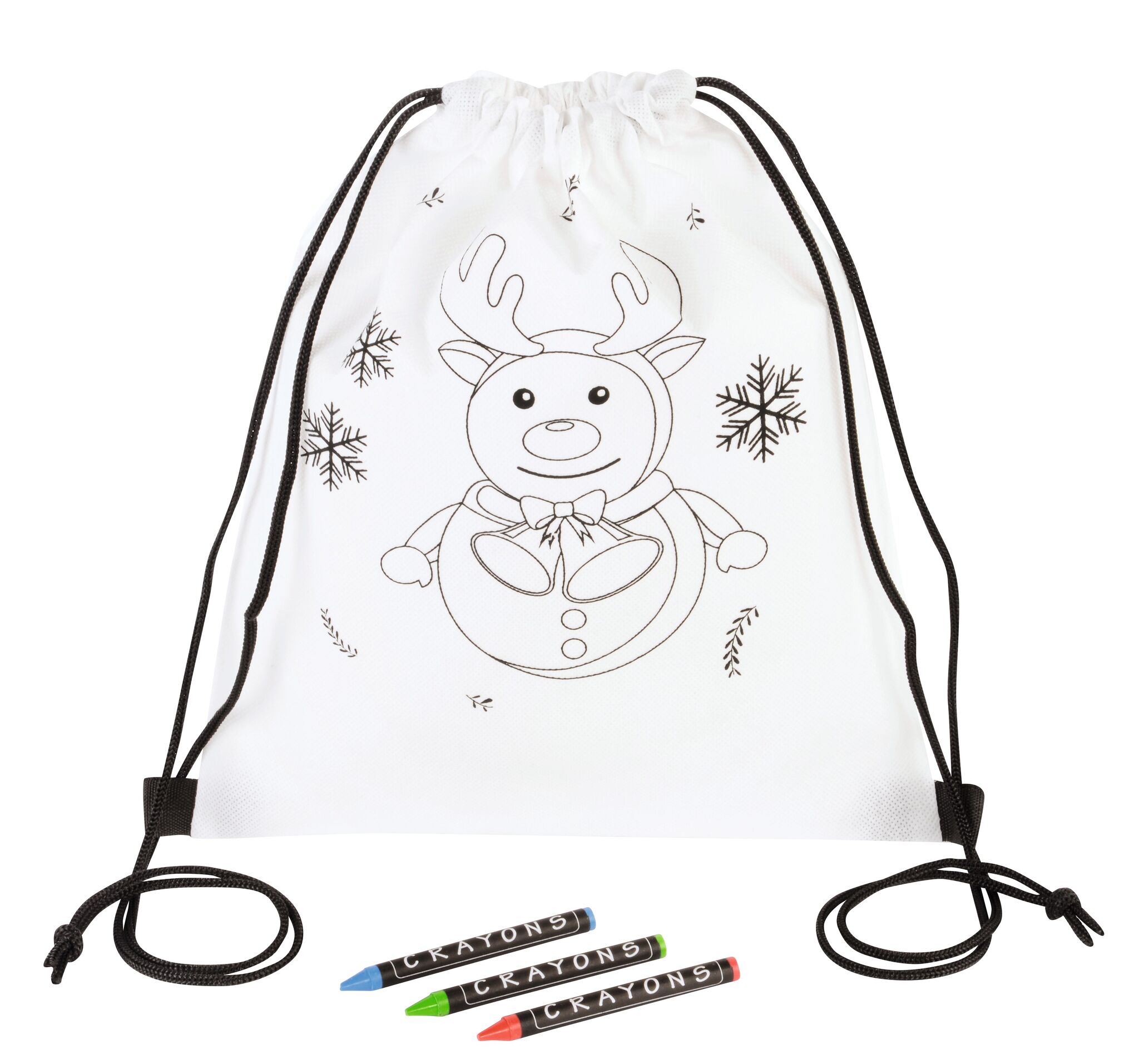 Мешок для раскрашивания COLOURFUL ELK : с рождественской аппликацией, 3 восковых карандаша в наборе