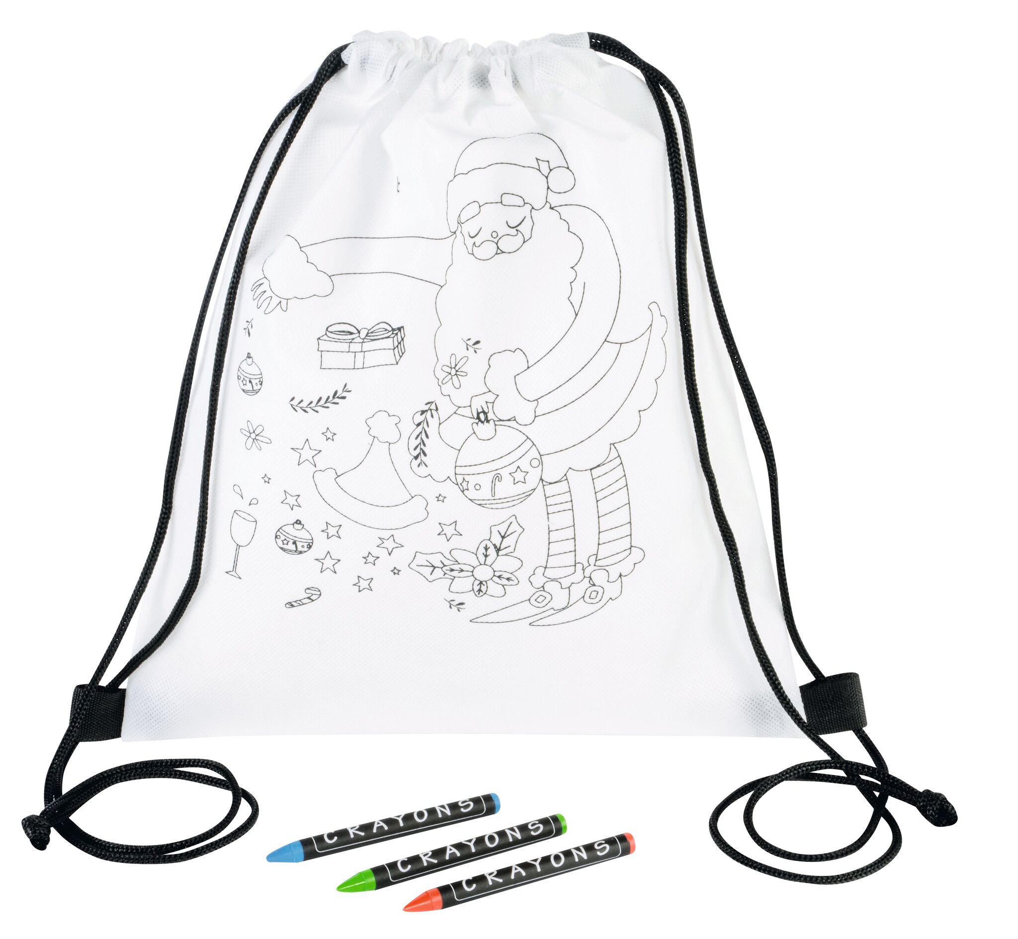Мешок для раскрашивания COLOURFUL SANTA : с рождественской аппликацией, 3 восковых карандаша в наборе