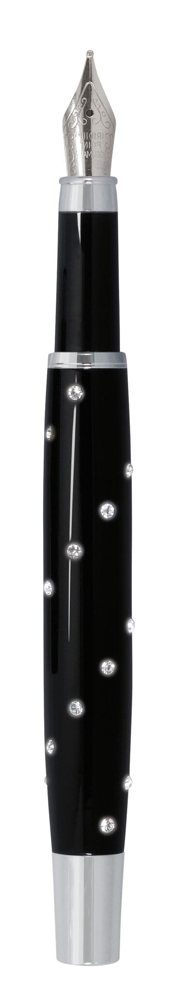 Металлическая перьевая ручка ST. PETERSBURG корпус - черный рояльный лак: с наконечником из иридия, 24 элементами CRYSTALLIZED™ Swarovski на корпусе, в комплекте с 1 дополнительными чернилами; поставляется в кейсе