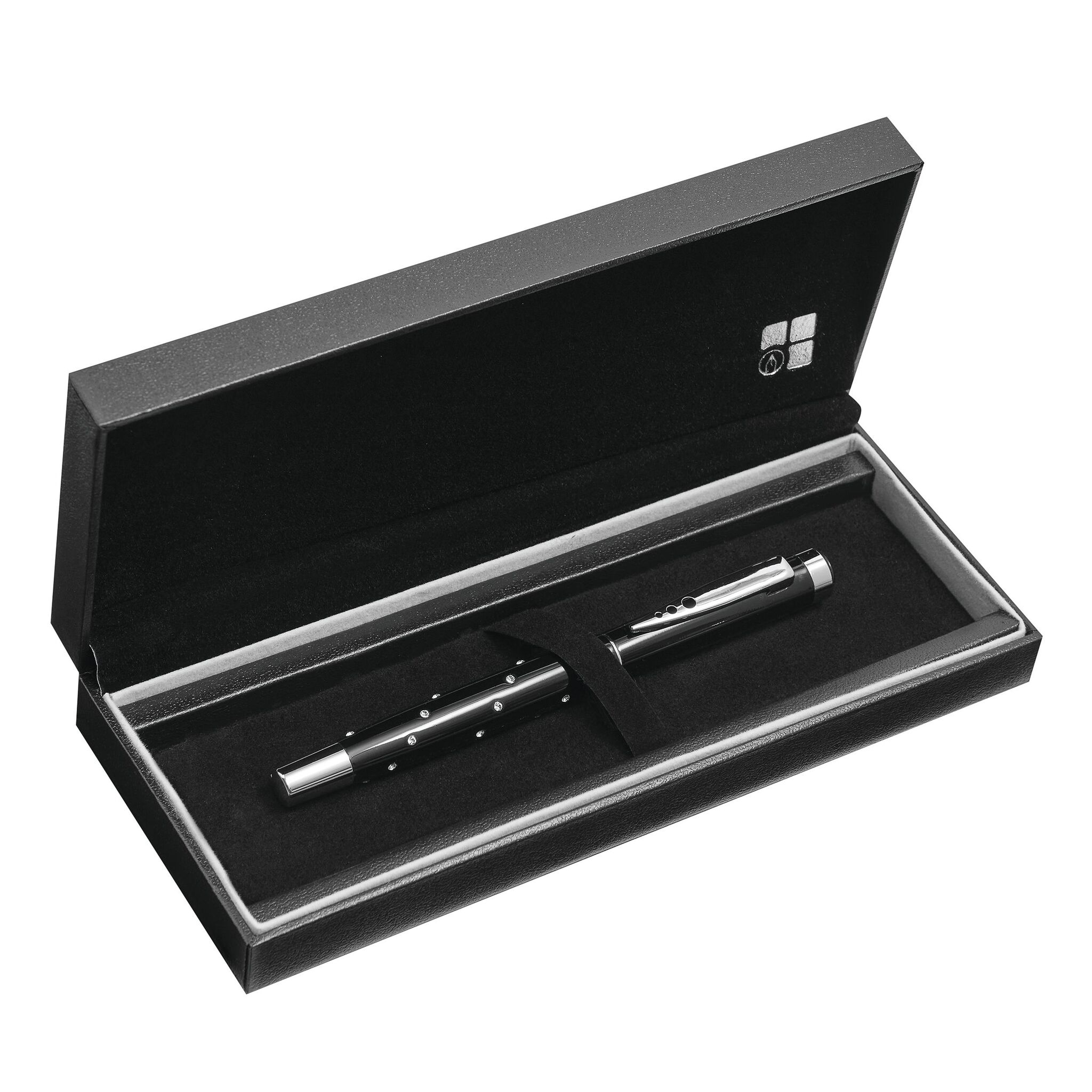 Металлическая ручка-роллер RIGA корпус - черный рояльный лак: 24 элементами CRYSTALLIZED™ Swarovski на корпусе, чёрными чернилами; поставляется в кейсе