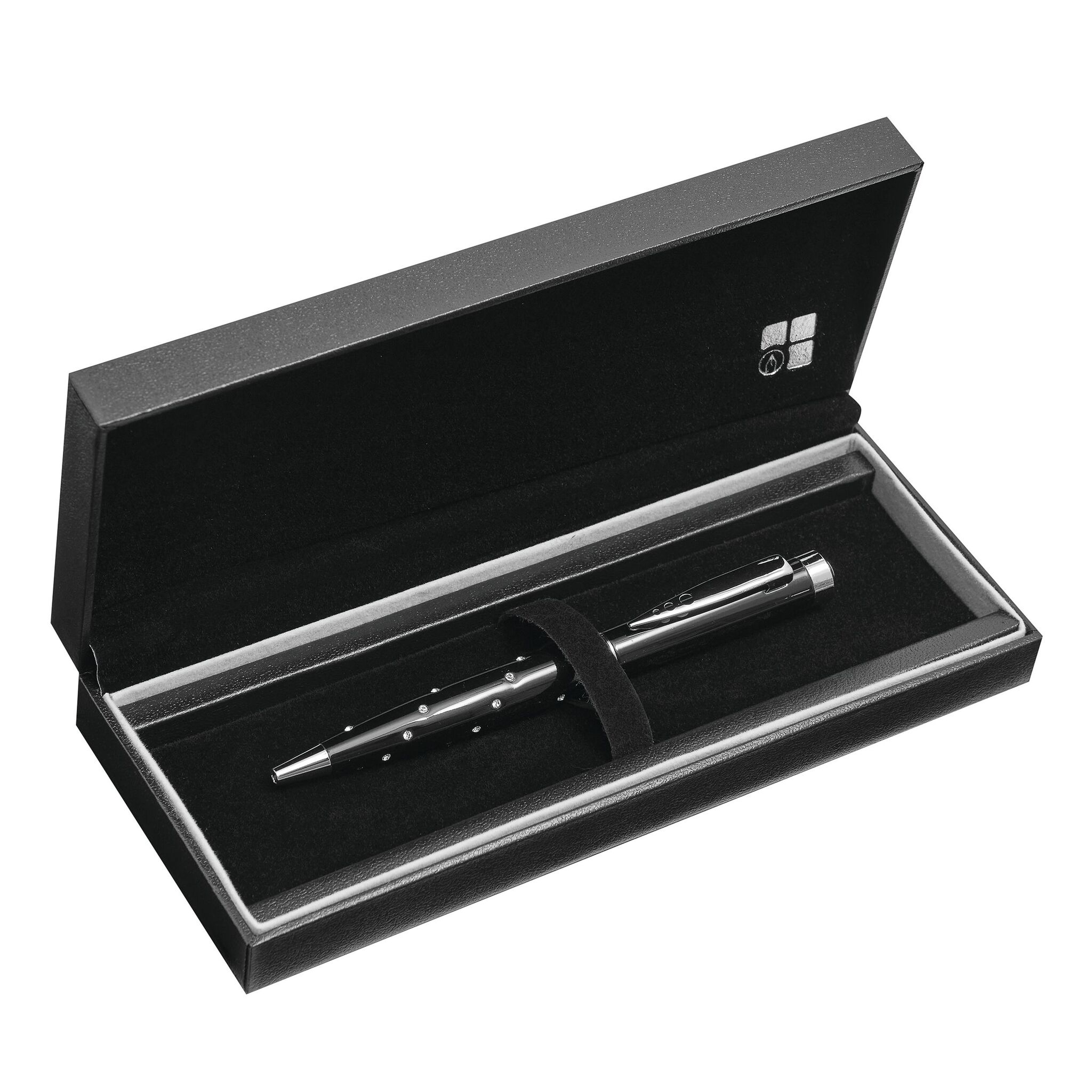 Металлическая шариковая ручка MOSCOW корпус - черный рояльный лак: с поворотным механизмом, 24 элементами CRYSTALLIZED™ Swarovski на корпусе, синии чернила; запакован в коробку