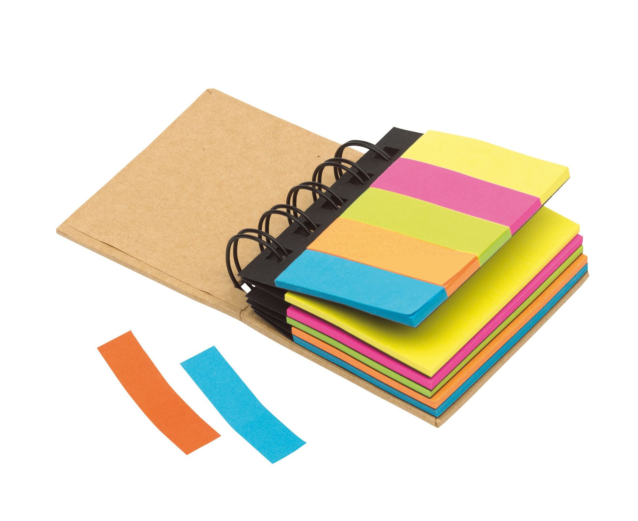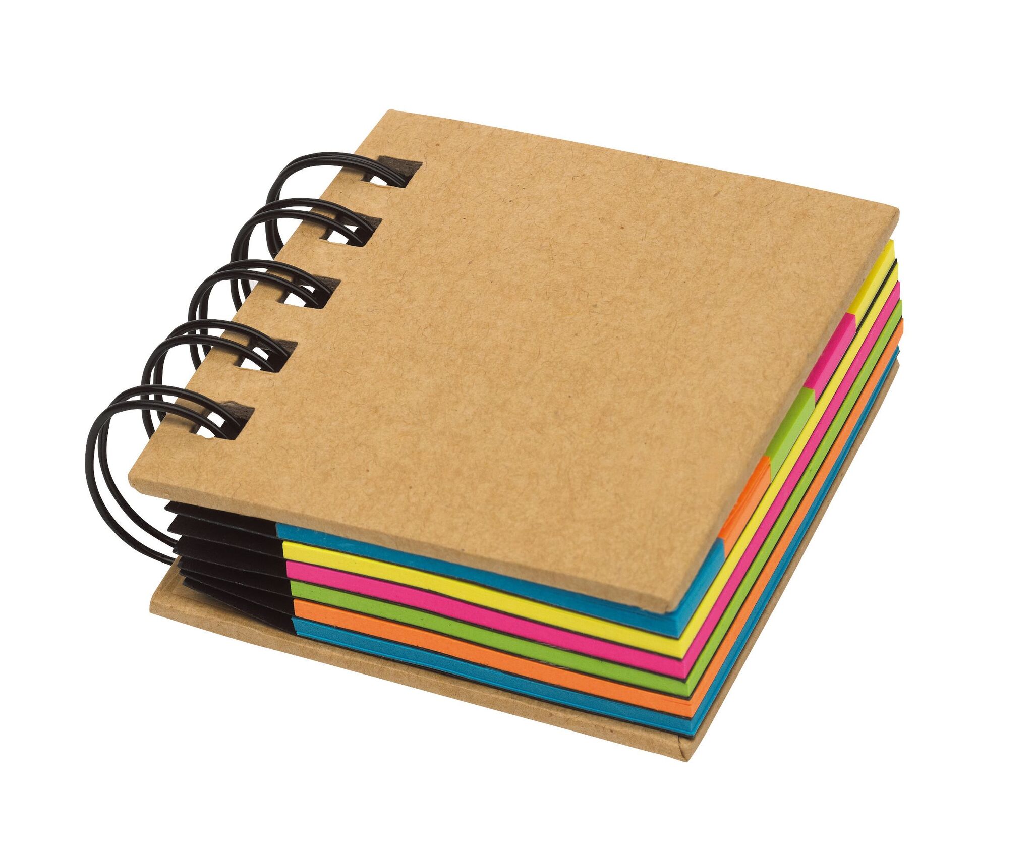 Мини-блокнот на пружине MULTI MEMO с разноцветными клеящимися закладками - из перерабатываемых материалов