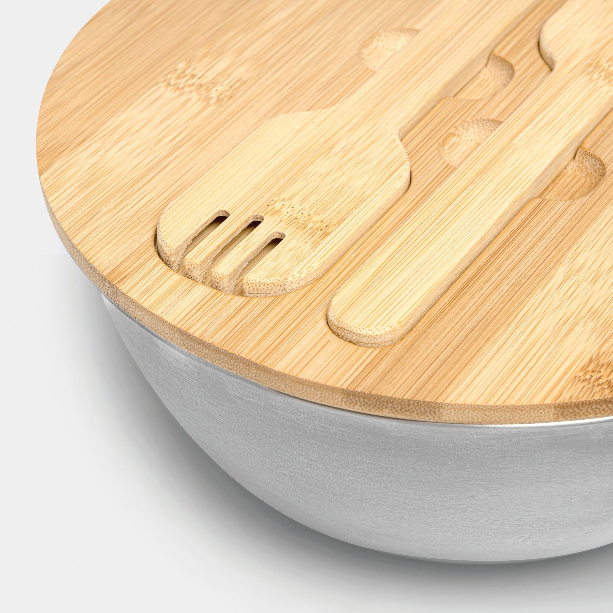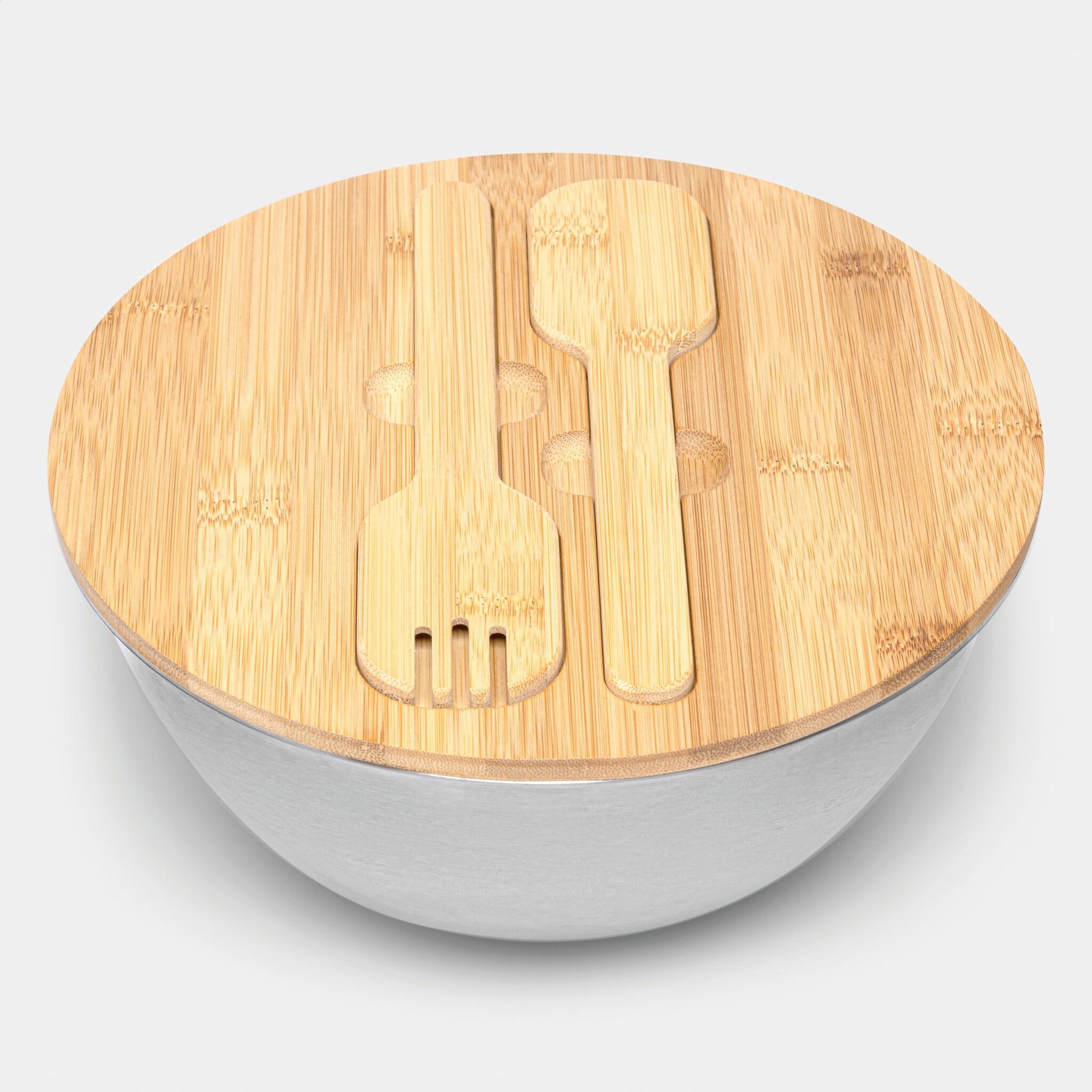 Миска салатница EAT HEALTHY : большая миска из нержавеющей стали с бамбуковой крышкой, встроенные салатники, удерживаемые магнитами, емкость: ок. 3 литра