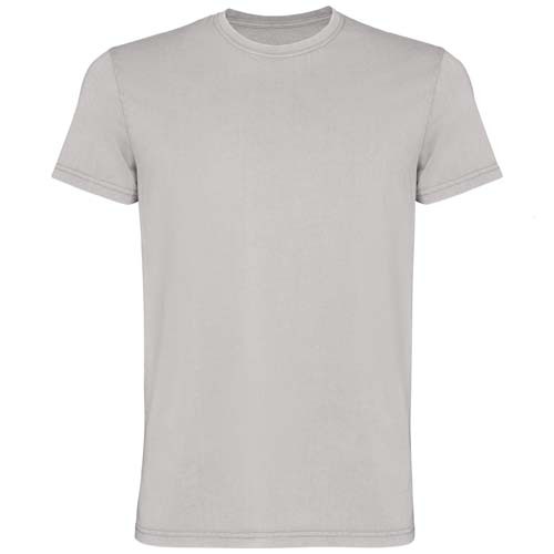 Футболка с коротким рукавом для мужчин. С эффектом выцветшей, потертой ткани. Круглый вырез горловины с резинкой 1x1. Перекрывающий стежок тон в тон с глянцевой отделкой.