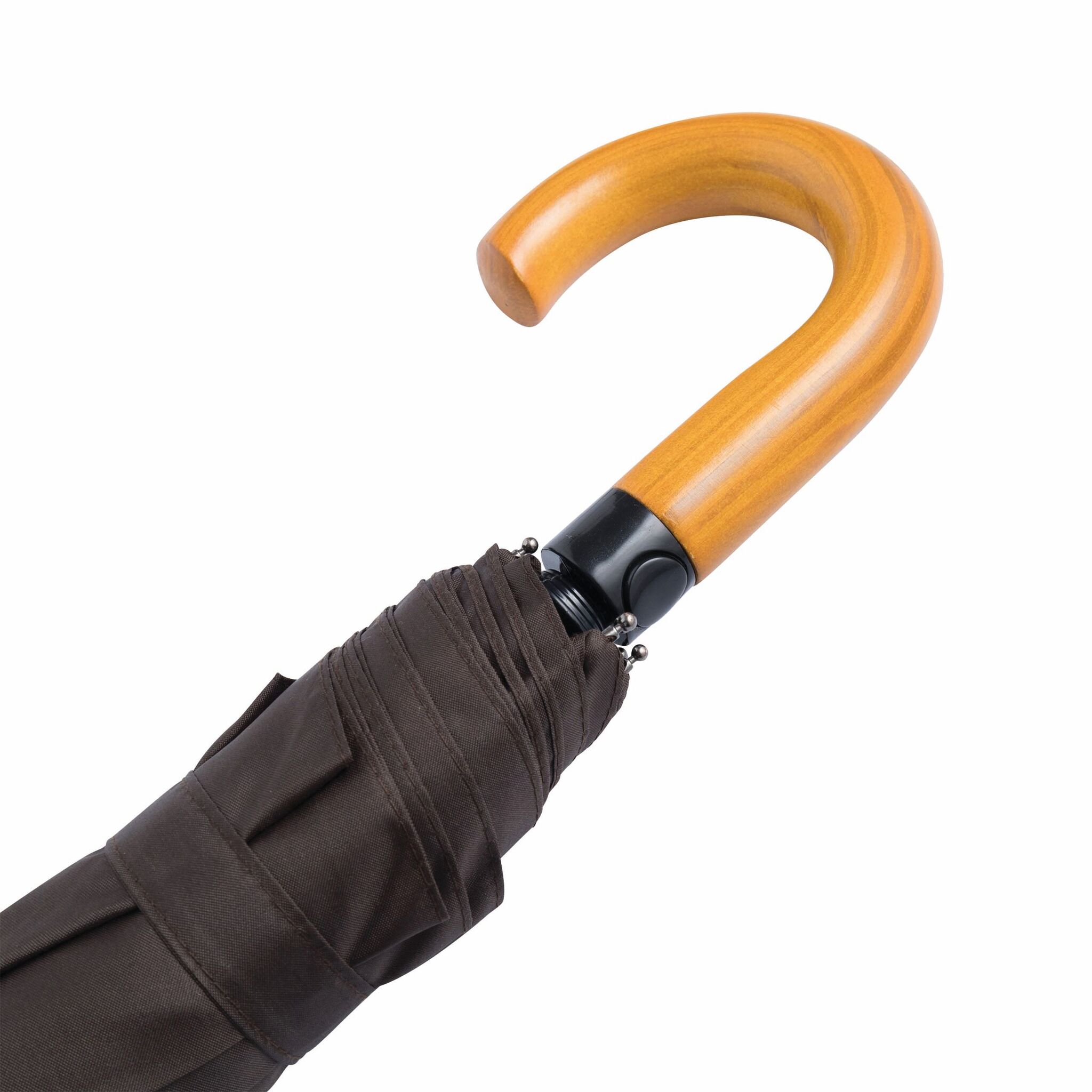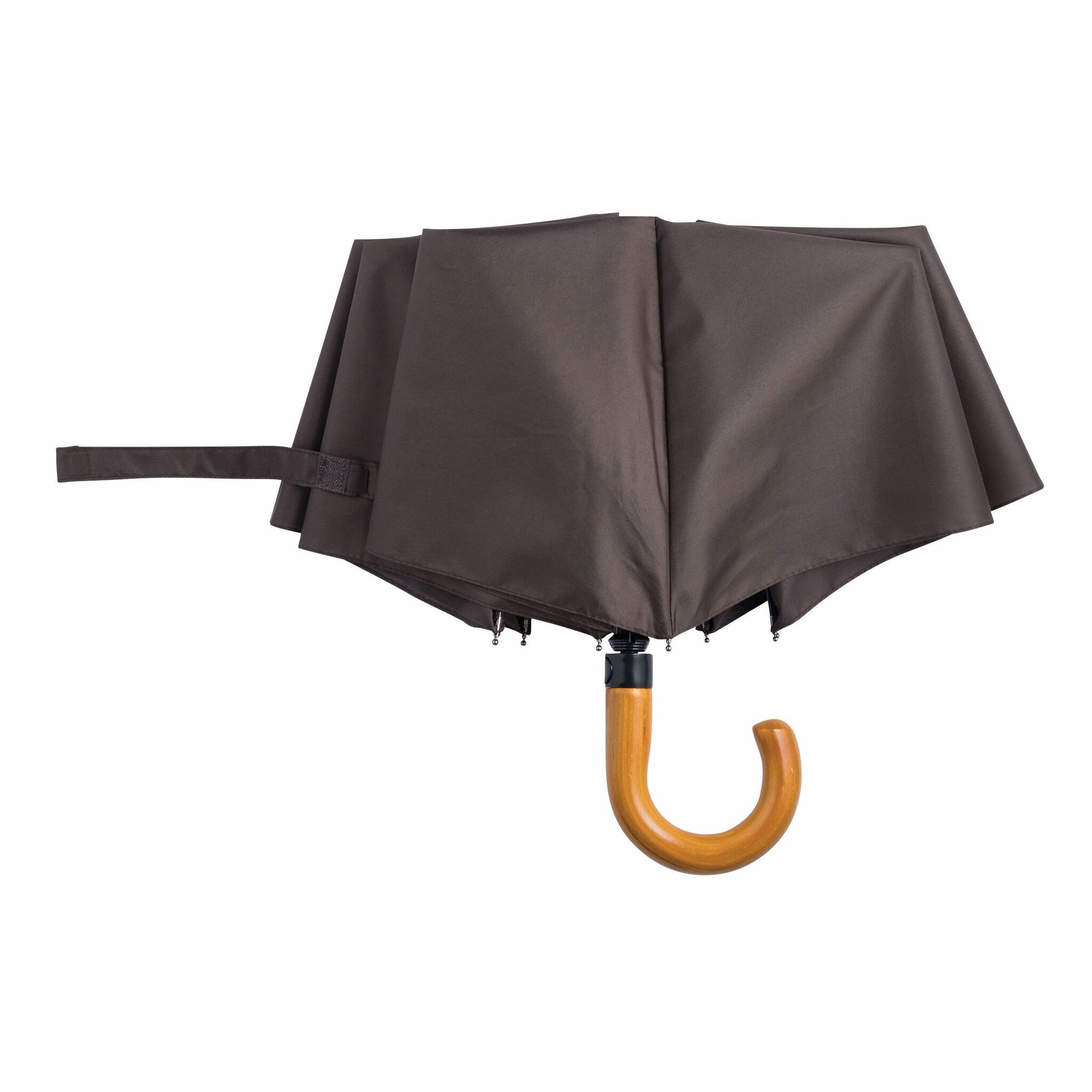 Мужской автоматический складной зонтик LORD : металическая трость, из 3 частей, спицы из метала и стеклопластика, деревянная ручка-крючок, материал полиэстер понджи, специальное водоотталкивающее покрытие, застёжка-липучка
