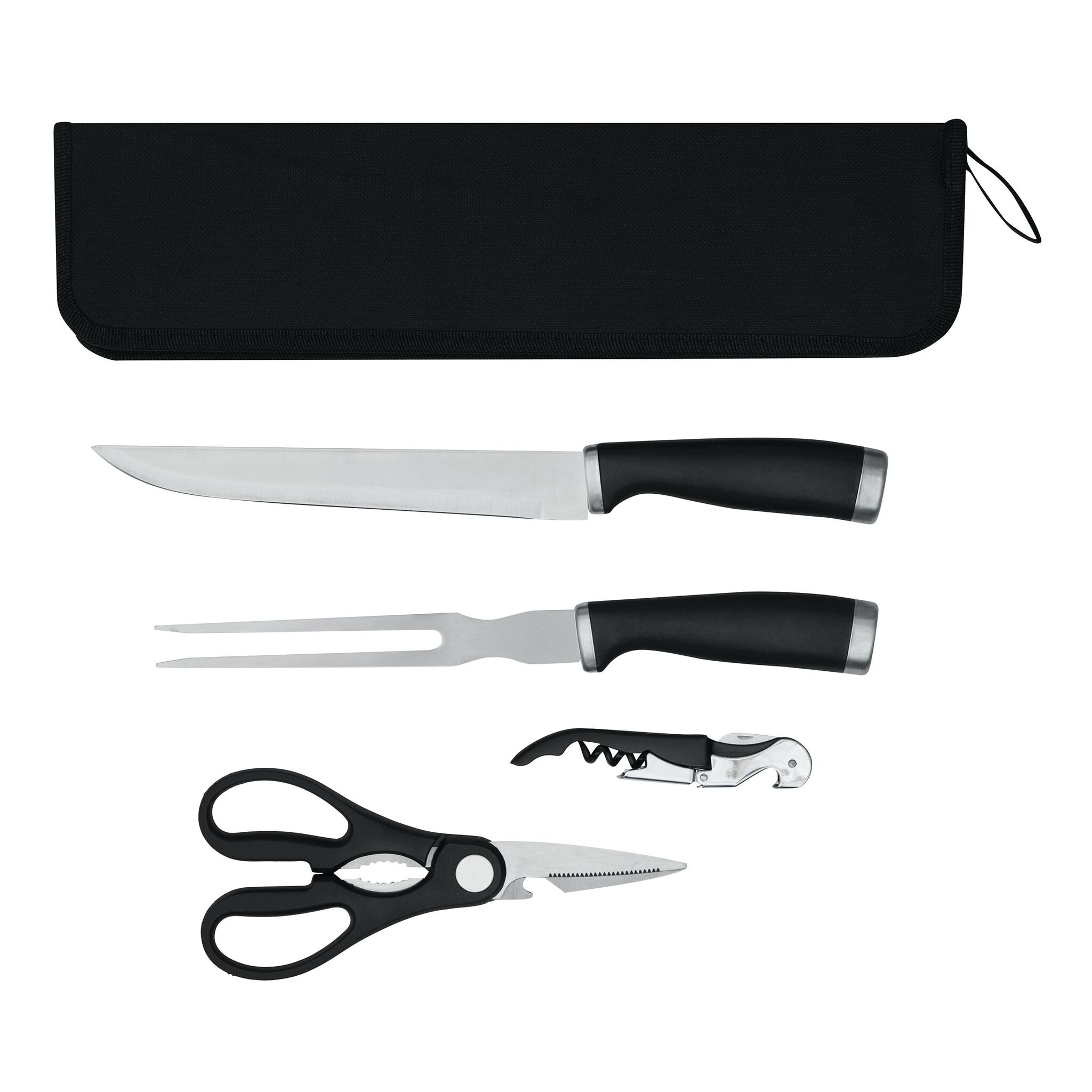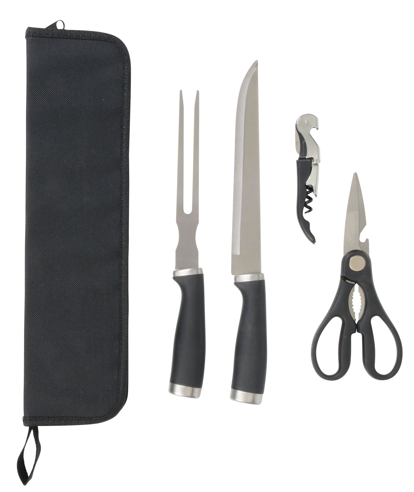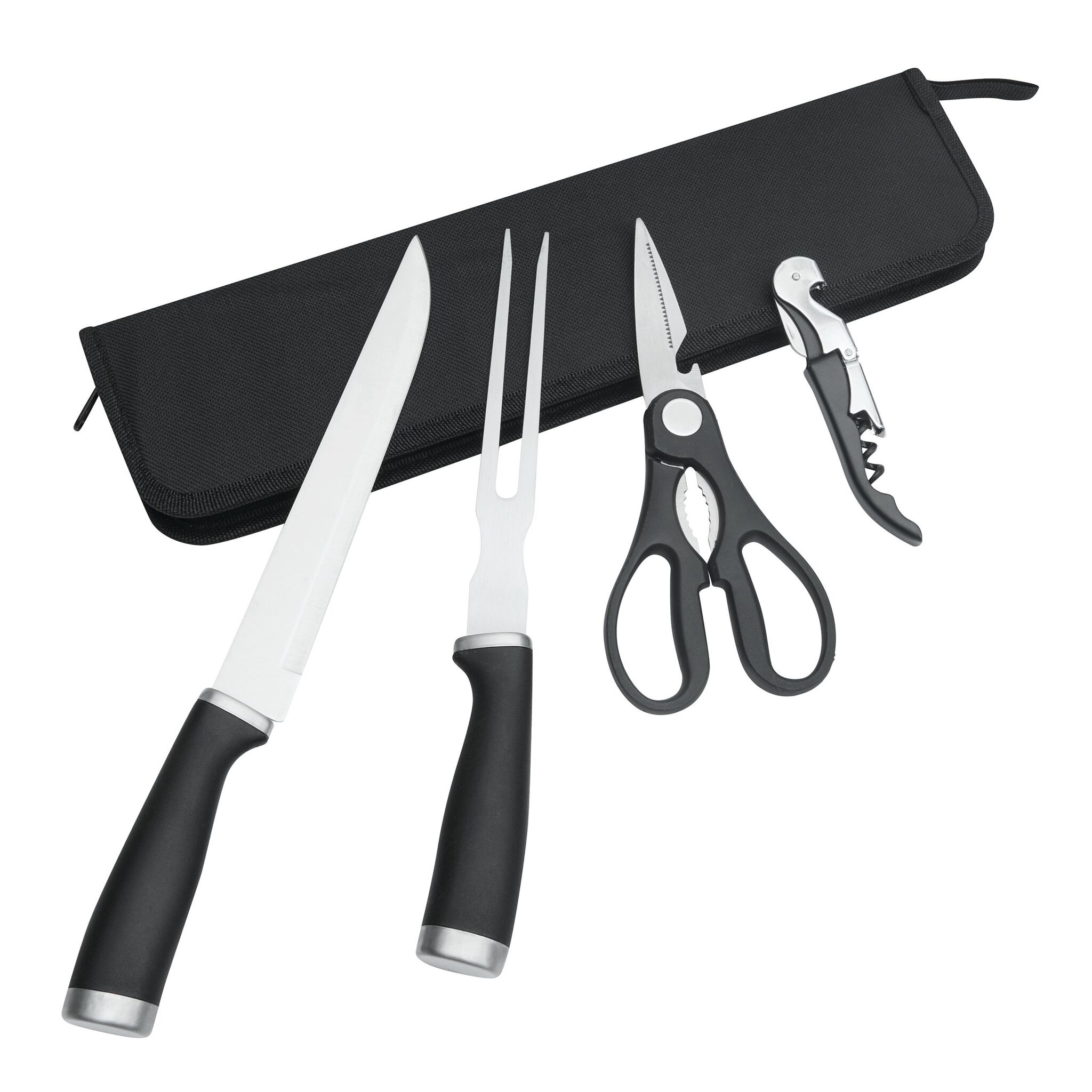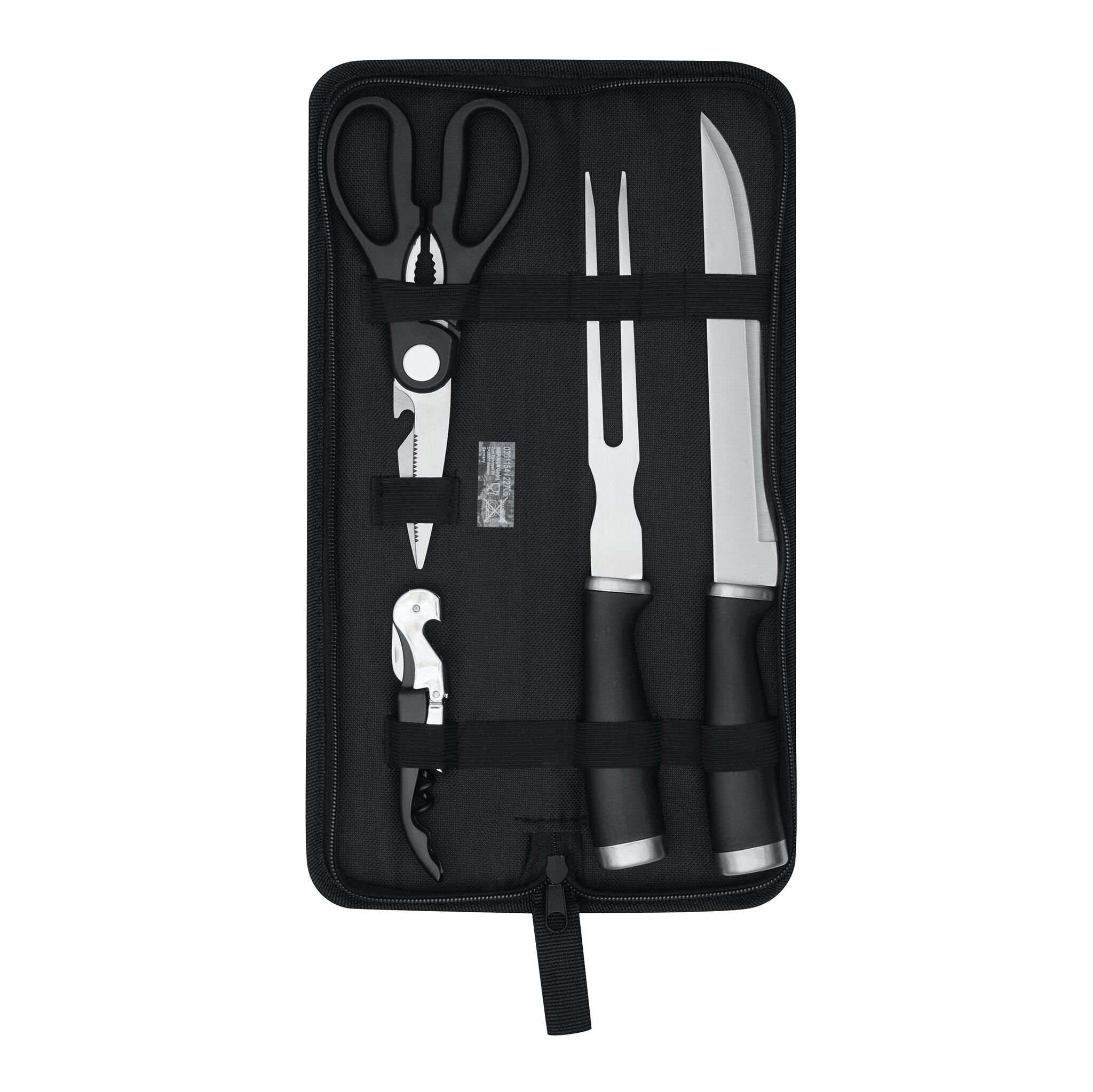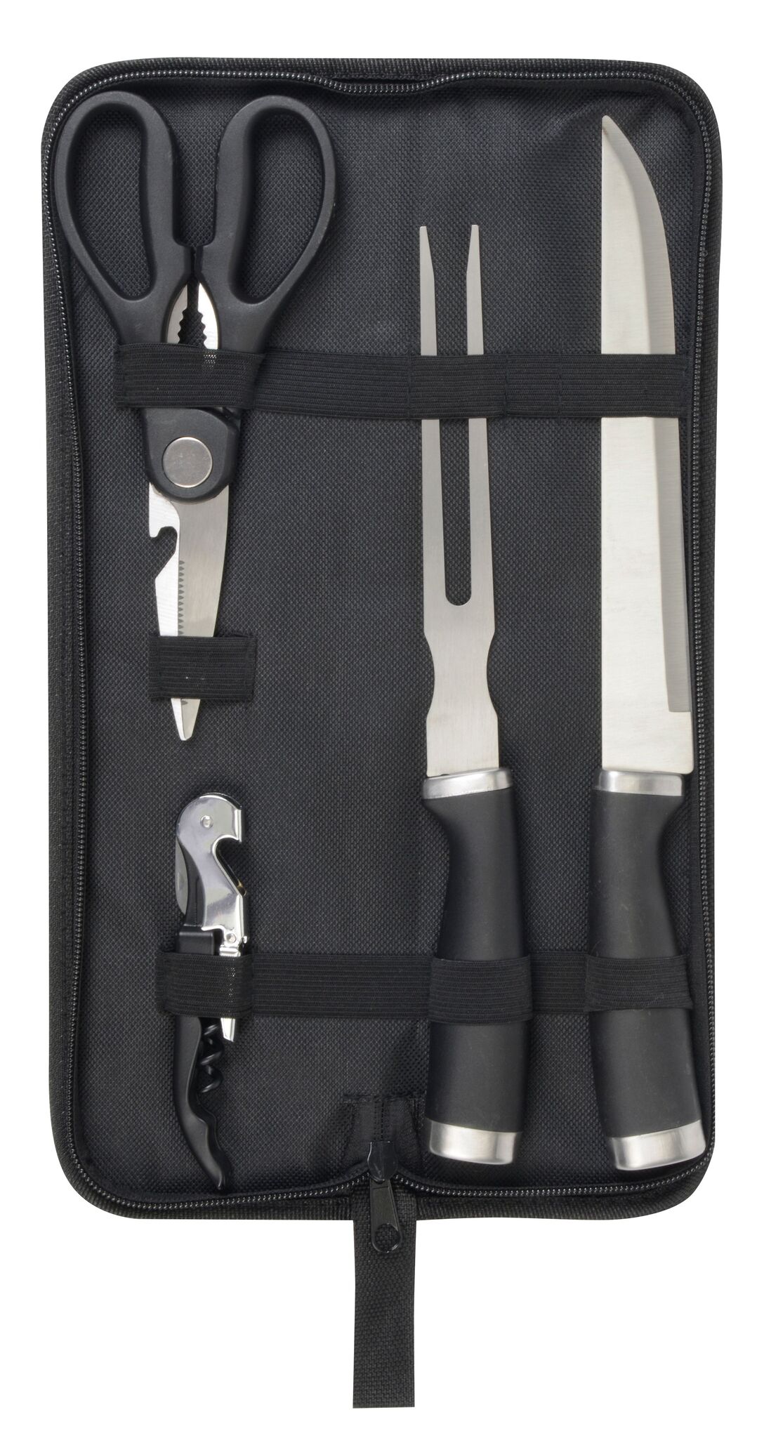 Набор для разделки мяса ROASTY , из нержавеющей стали, в наборе: нож, вилка, ножницы, нож сомелье, в черном нейлоновом футляре