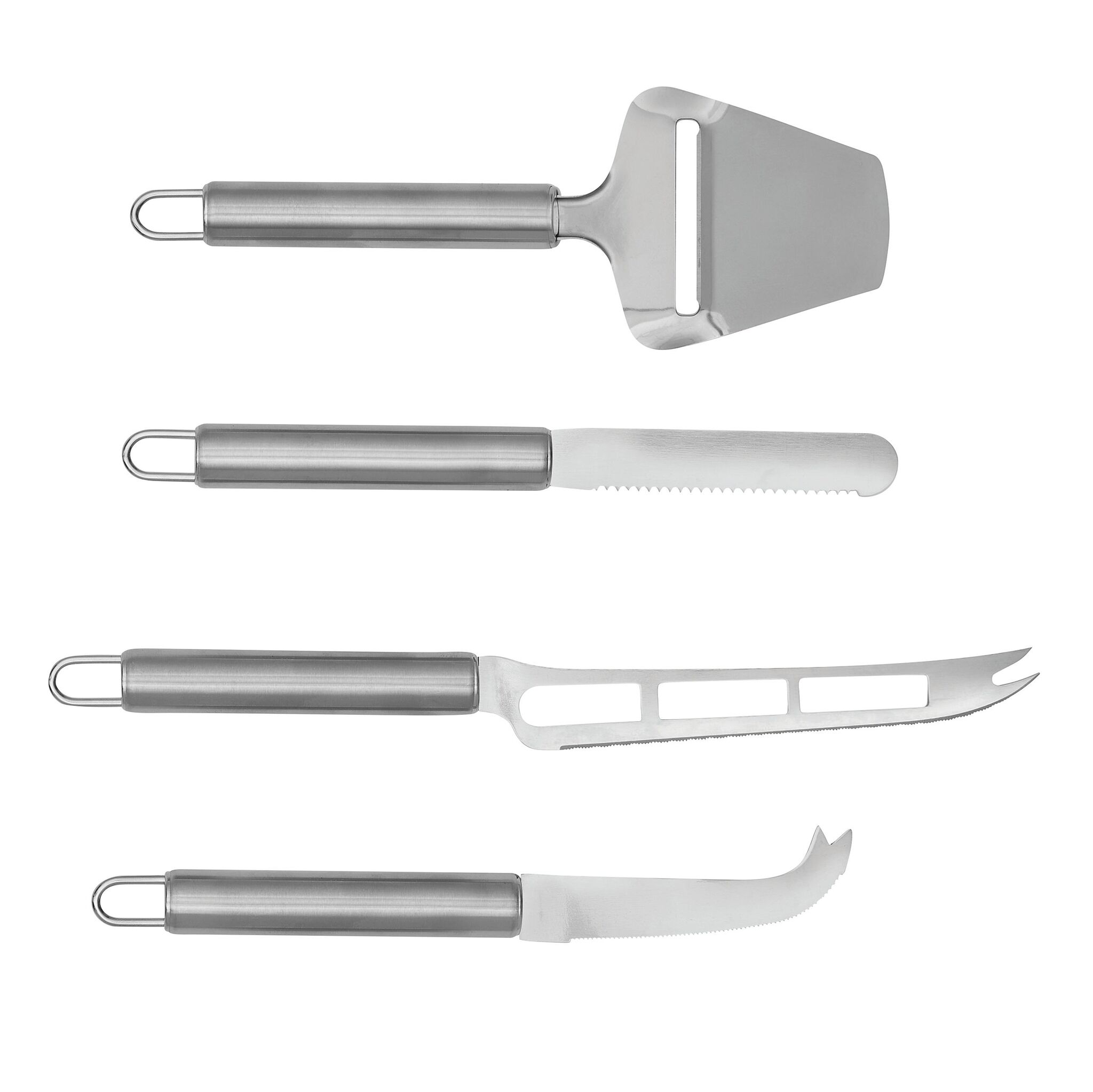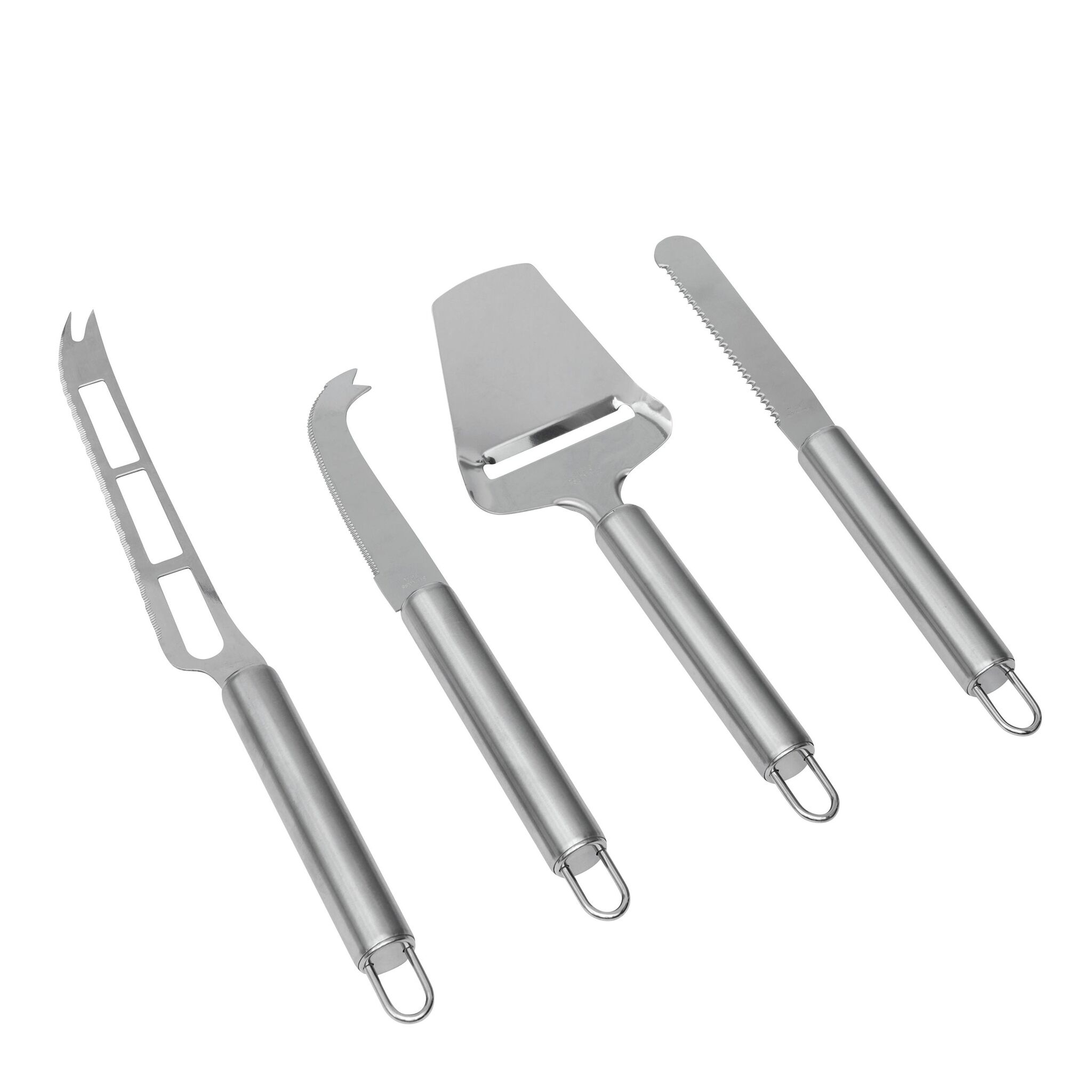 Набор ножей для сыра CHEESE , состоящий из ножа для мягкого сыра, ножа для твёрдого сыра, лопатки и ножa с изогнутым лезвием, с крючками для подвешивания