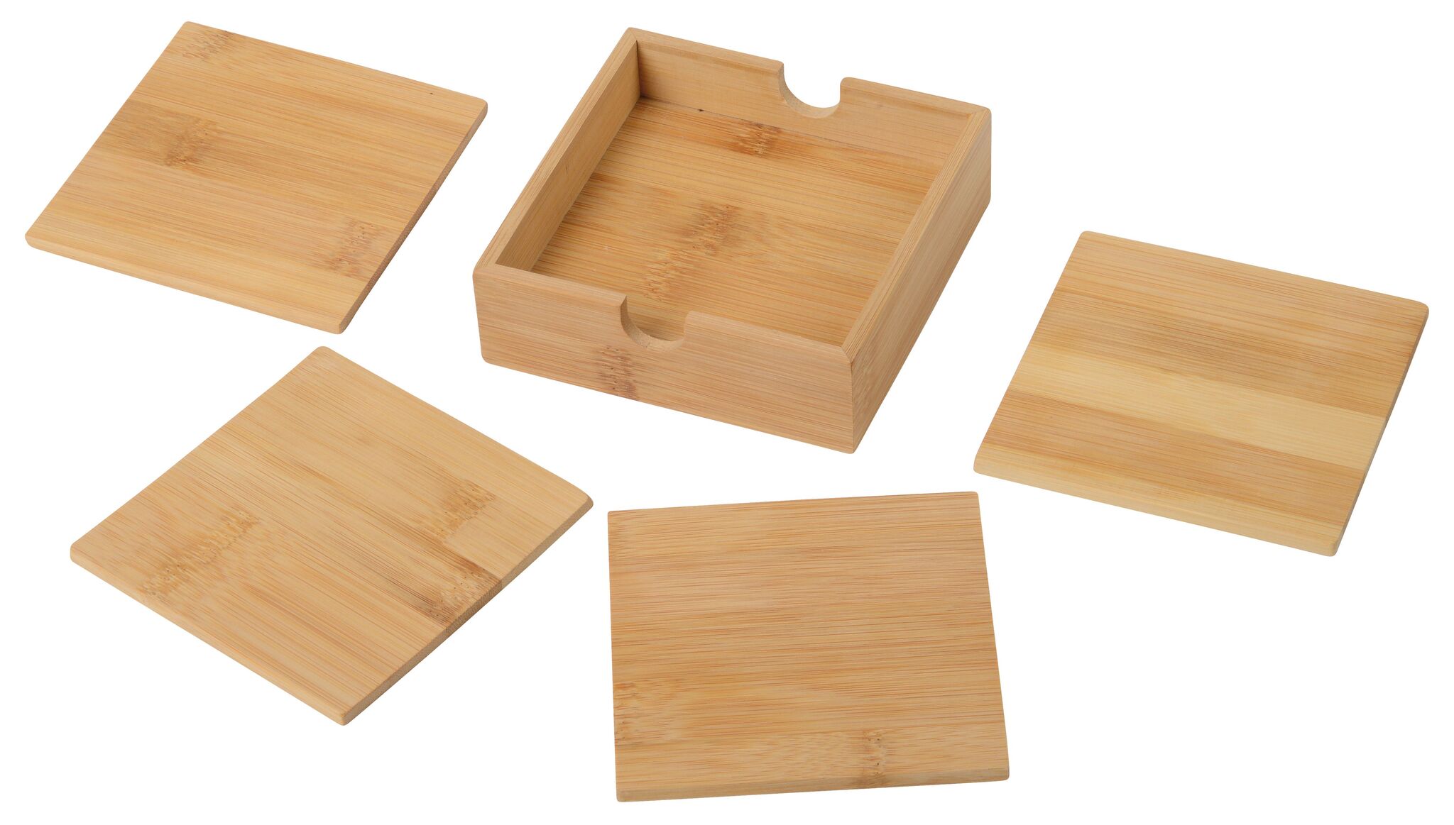 Набор подставок под стаканы PUT UNDER , в наборе 4 подставки и бамбуковая коробка, большая поверхность для нанесения логотипа