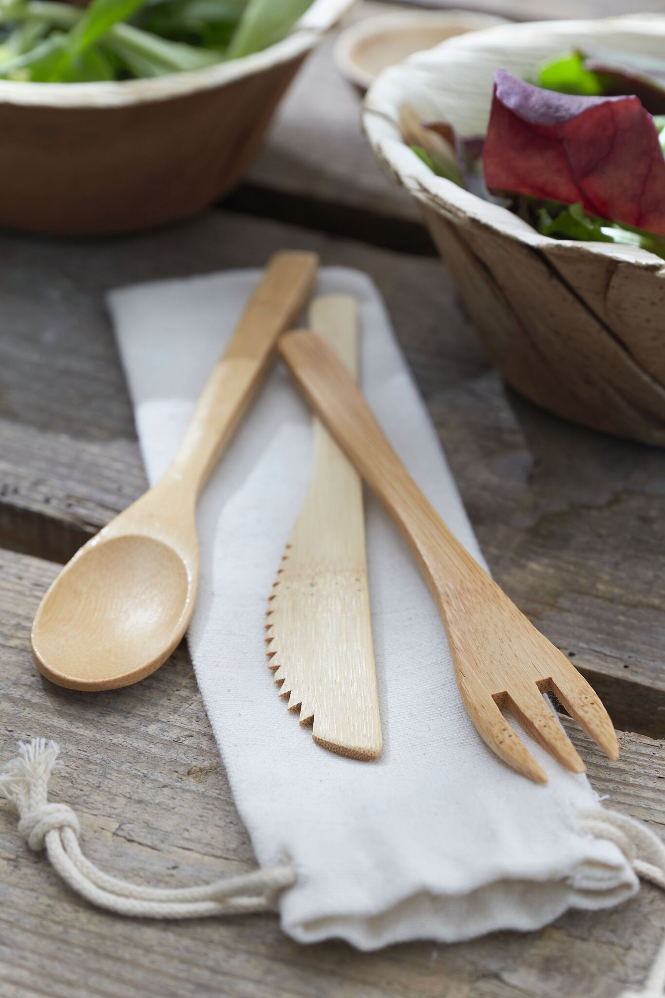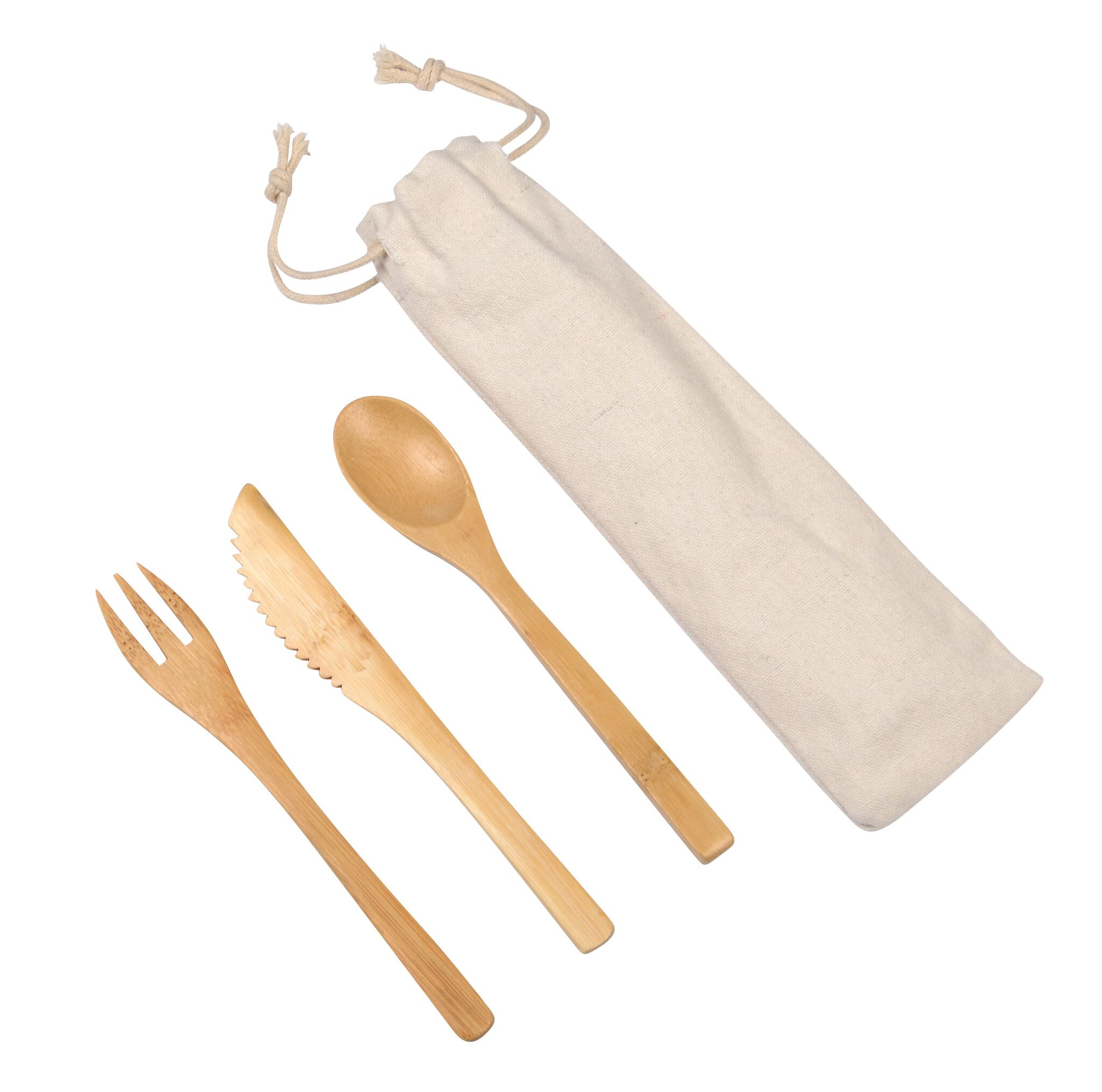 Набор столовых приборов из бамбука NATURAL TRIP , в хлопчатобумажном мешочке: вилка, нож и ложка