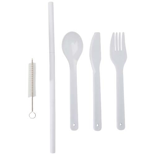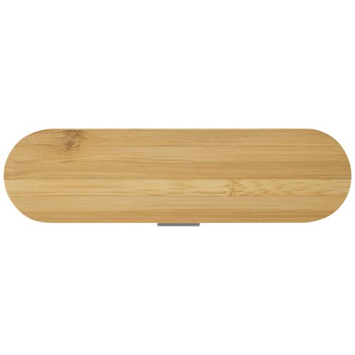 Набор многоразовых столовых приборов с бамбуковой крышкой, включающий вилку, нож, ложку, соломинку и очиститель соломинки — идеально подходит для еды на ходу. Компактный и простой в уходе, он идеально подходит для ланч-боксов, путешествий или использования в офисе.