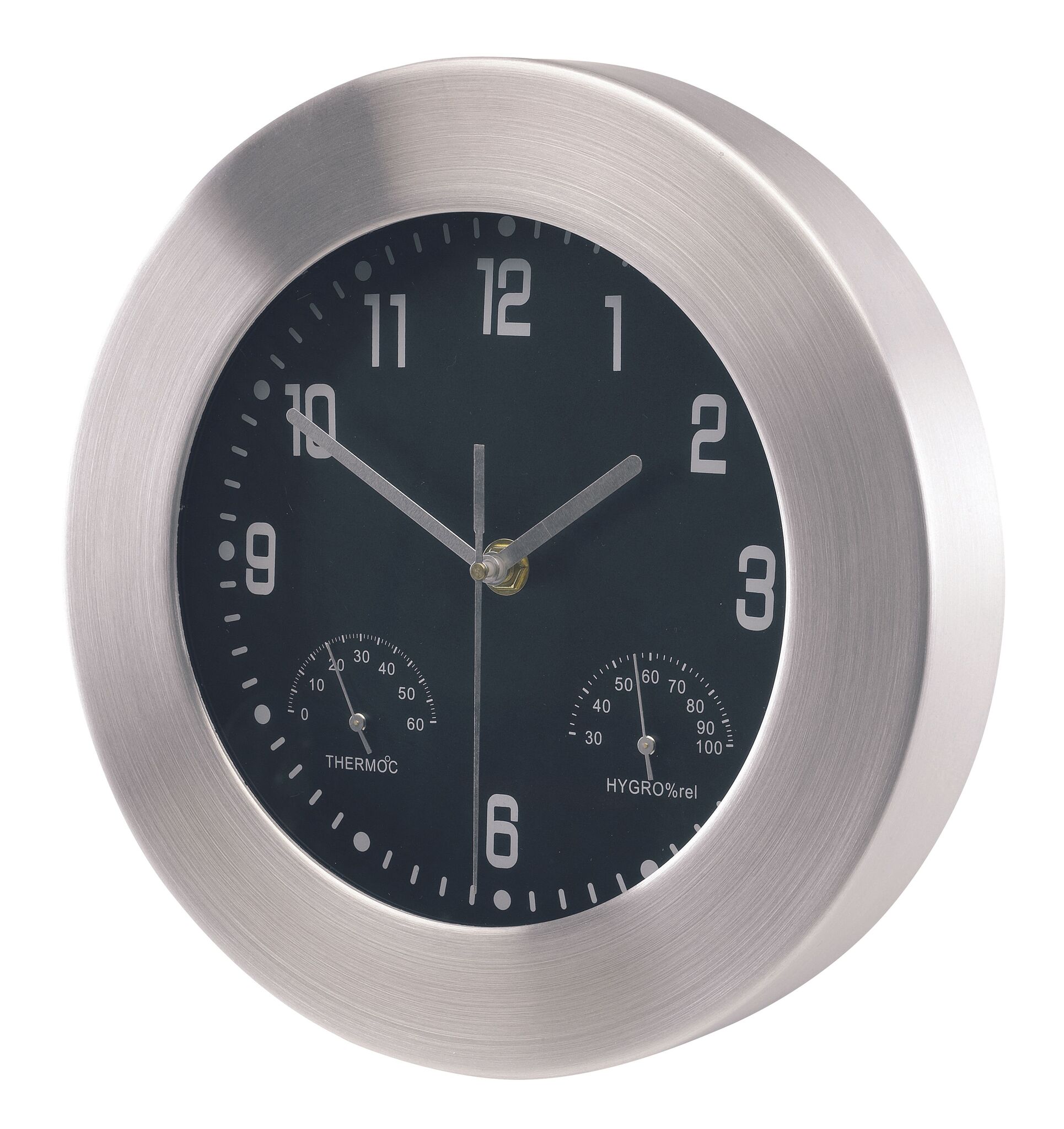 Настенные алюминивые часы JUPITER с термометром, гигрометром и с круглой широкой рамкой