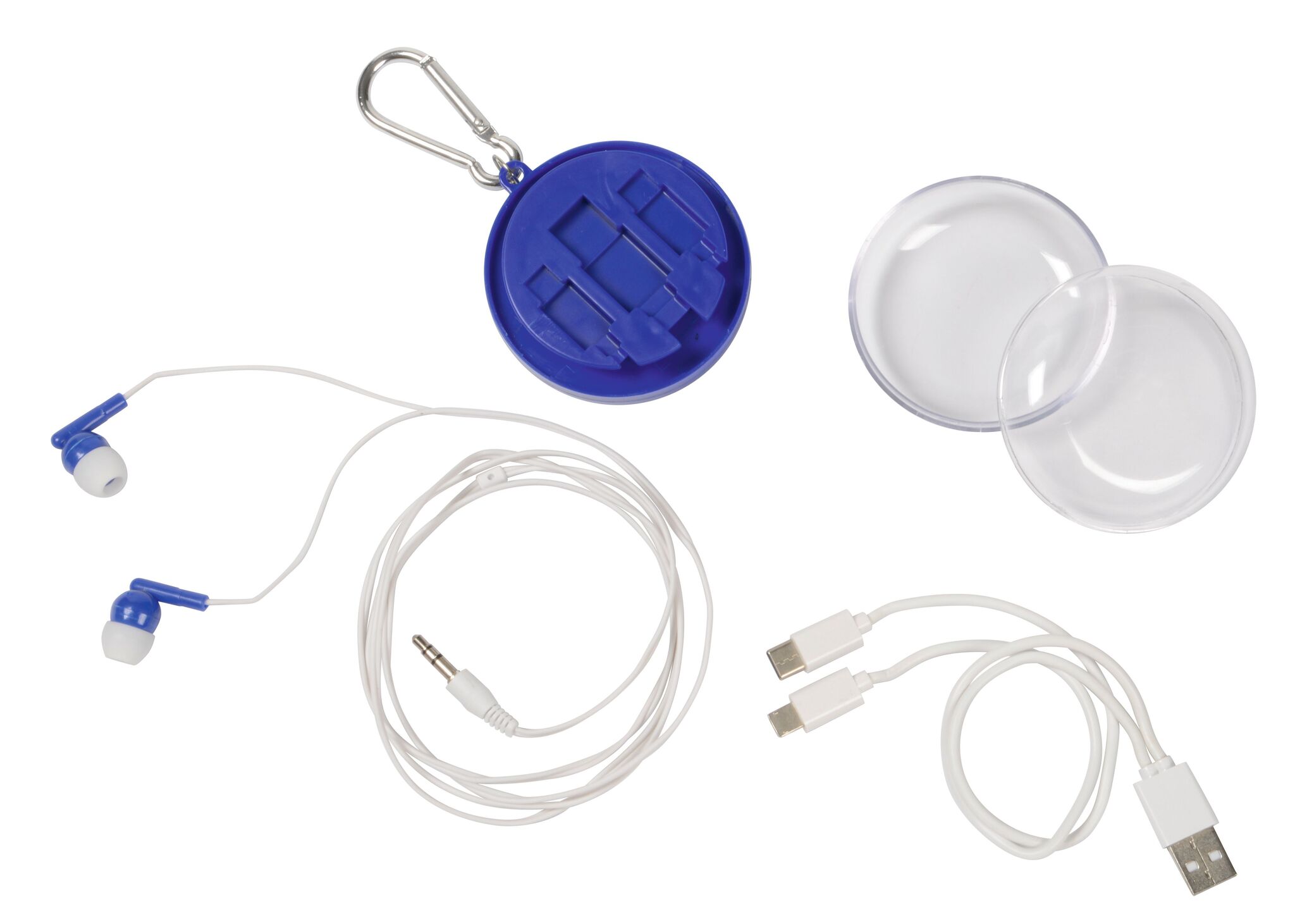Наушники с универсальным шнуром для подзарядки LISTEN & CHARGE : 3,5 мм штекером типа джек, длина шнура около 126 см., в подходящей по цвету корбоке для хранения, два разных штекера для подключения подзарядки, подходящих к наиболее распостранённым электонным устройствам и смартфонам, длиной около 28 см., с карабином
