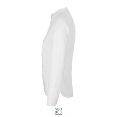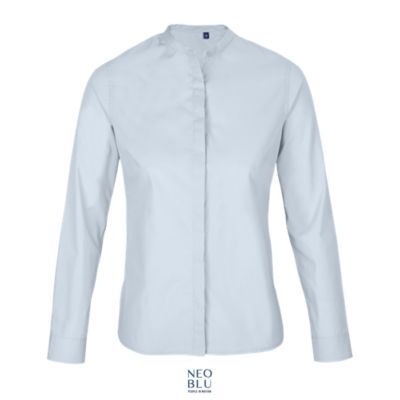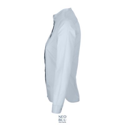 ЖЕНСКАЯ РУБАШКА С ВОРОТНИКОМ-СТОЙКОЙ. Длинный рукав; Воротник-стойка; Пуговицы закрыты планкой; Регулируемые манжеты; боковыми разрезами