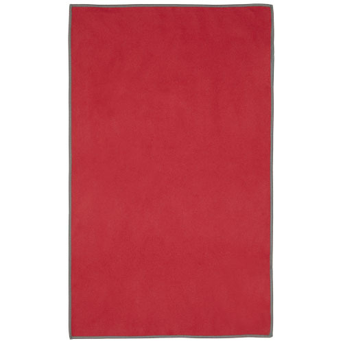 Спортивное полотенце Pieter очень хорошо впитывает влагу, легкое, быстро сохнет, а ткань прочная и очень мягкая. Когда полотенце сложено и закреплено резинкой, оно уменьшается до небольшого размера, поэтому его удобно брать с собой в тренажерный зал, бассейн, на пешую прогулку или в поход. Полотенце размером 50 х 30 см изготовлено из 90 % переработанного полиэстера GRS и 10 % нейлона. Его можно стирать в стиральной машине при температуре 40 °C. В комплект поставки входит мешок для хранения (15,5 x 10 см), изготовленный из переработанного ПЭТ-пластика, обеспечивающий большую площадь для печати логотипа.