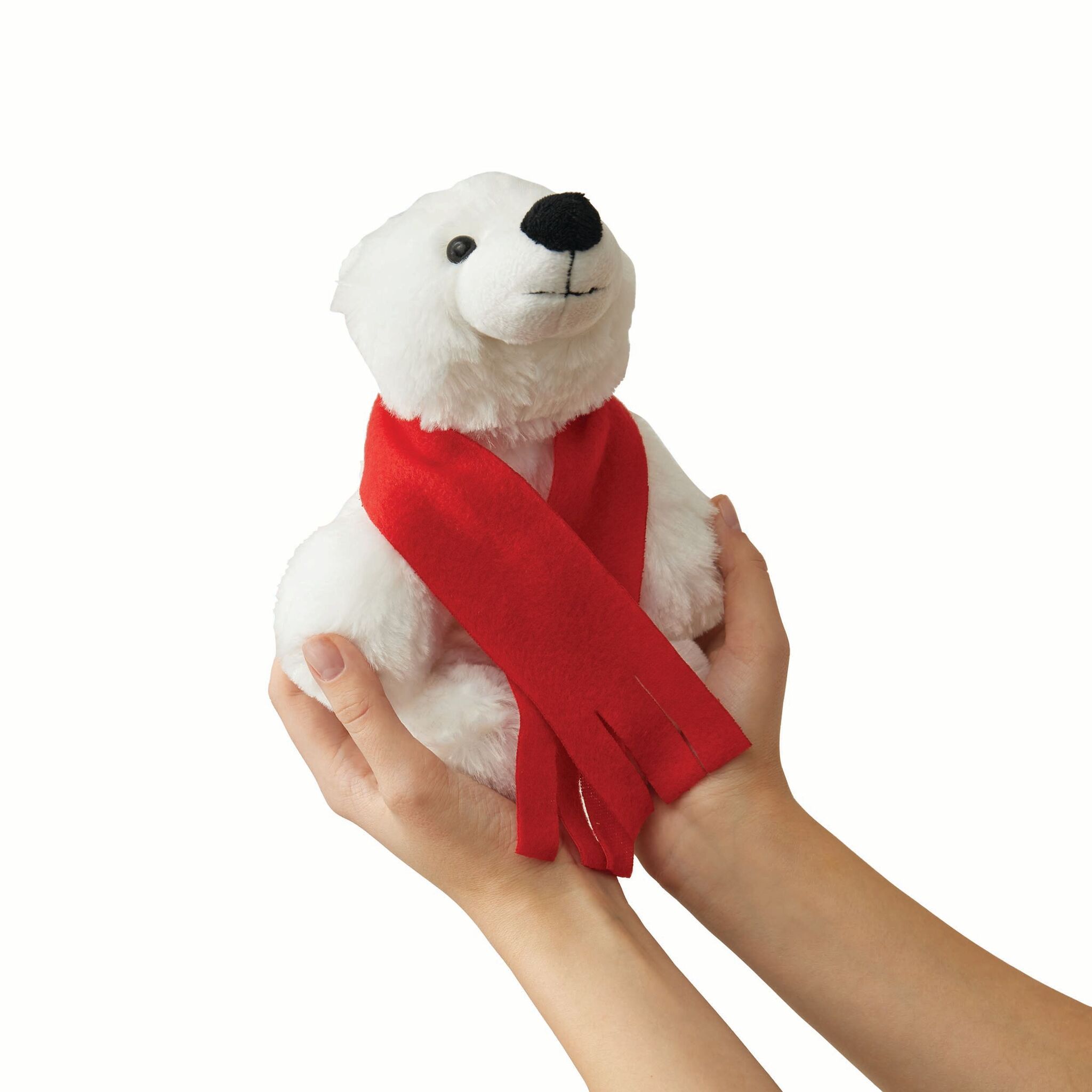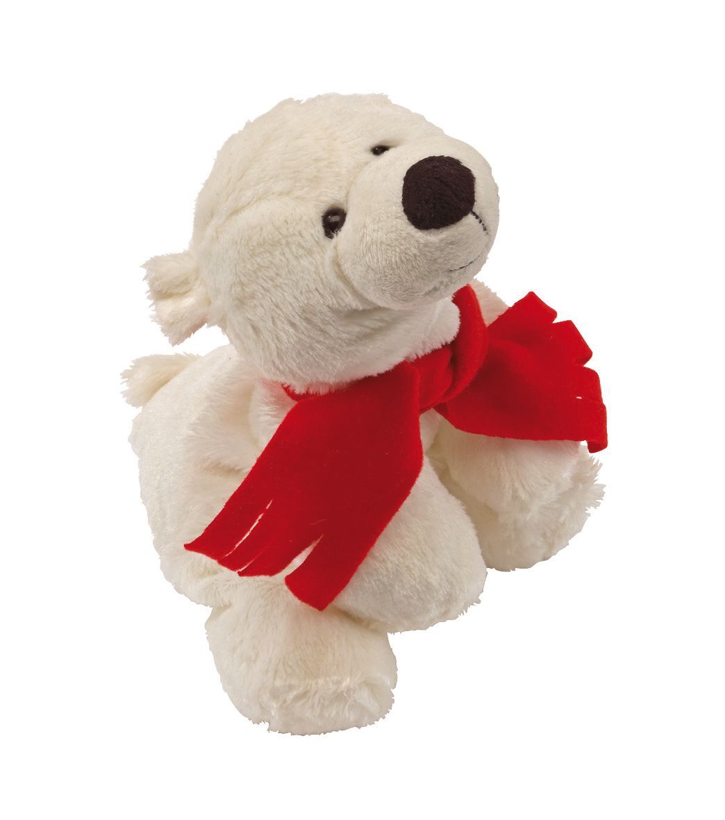 Плюшевый белый медведь LARS с мягким мехом и шарфом для нанесения логотипа (шарфы упакованы отдельно)