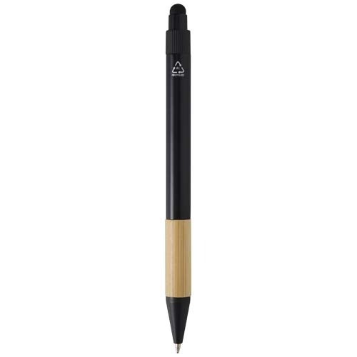 Подарочный набор Minka включает шариковую ручку из сертифицированного RCS переработанного алюминия со стильным бамбуковым захватом и наконечником стилуса, алюминиевый брелок (5,5 × 1,8 × 1 см) с бамбуковыми деталями и встроенным держателем для телефона, а также держатель для RFID-карт (9,7 × 6,2 × 1 см) с корпусом из алюминиевого сплава и бамбуковыми деталями, обеспечивающий защиту до 10 карт. Ручка заполнена черными чернилами и обеспечивает длину письма 1000 метров. Продуманный и практичный подарок, сочетающий в себе функциональность и современный дизайн. Поставляется в высококачественной черной подарочной коробке (16 × 16 × 2,7 см) с простой лицевой стороной, идеально подходящей для размещения логотипа.