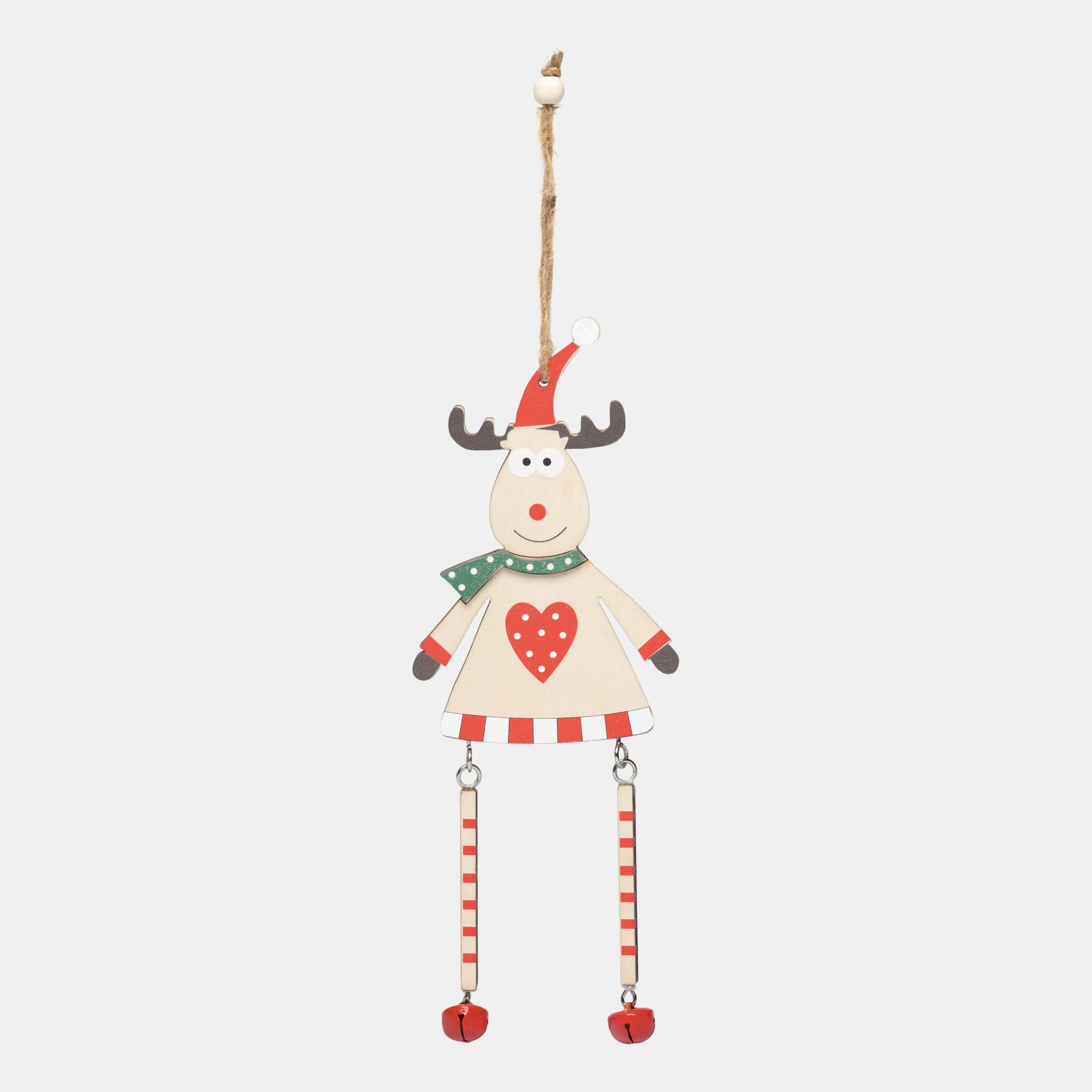 Подвеска на елку или подарок WOODEN ELK : шарф в 3D-оптике, с подвижными ножками и джутовой петлей для подвешивания