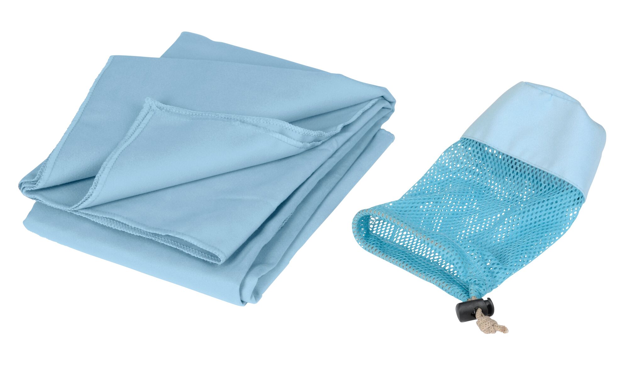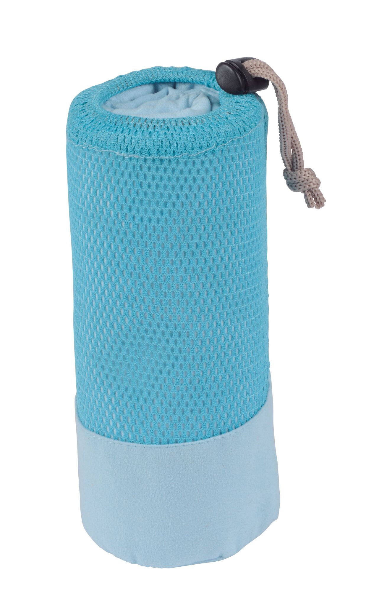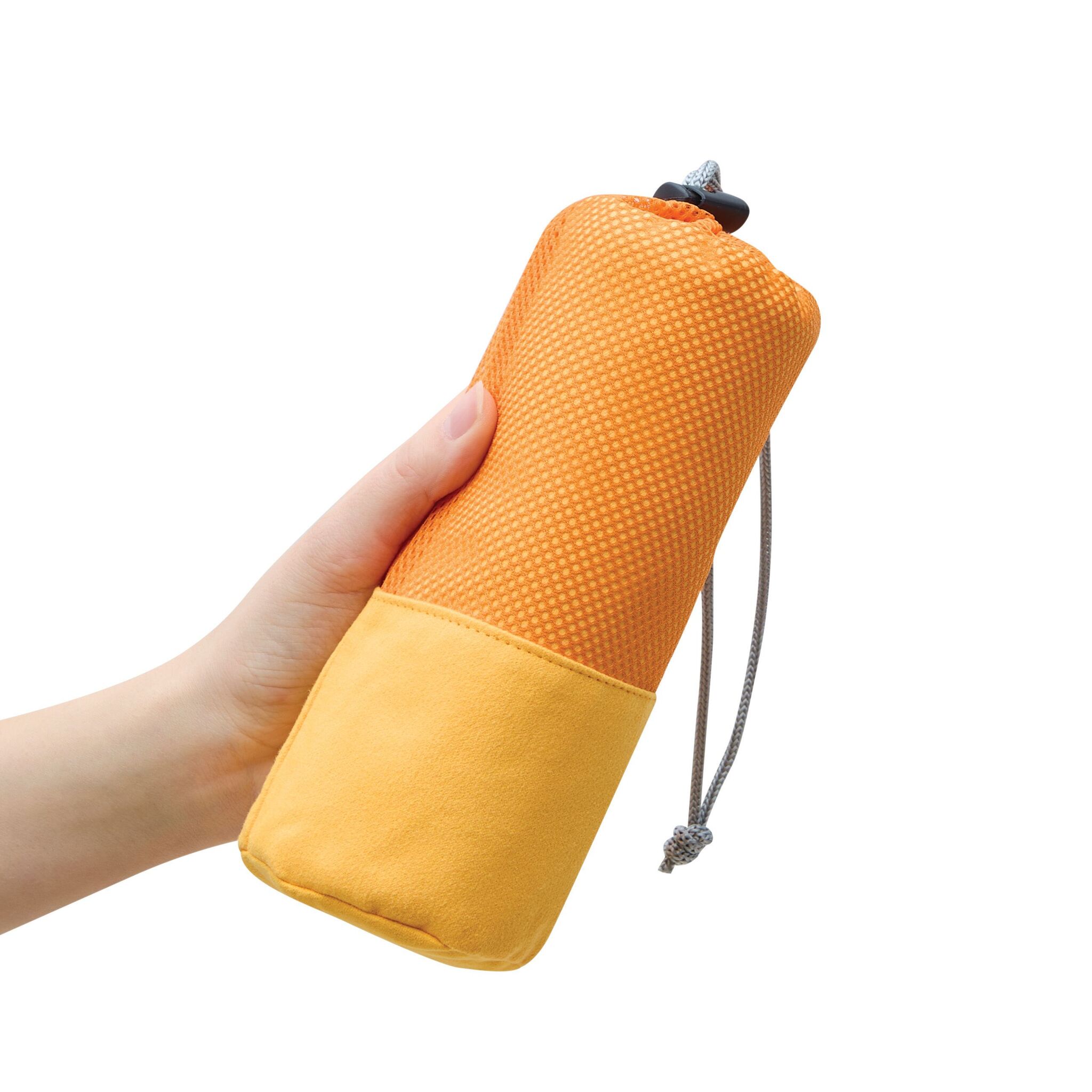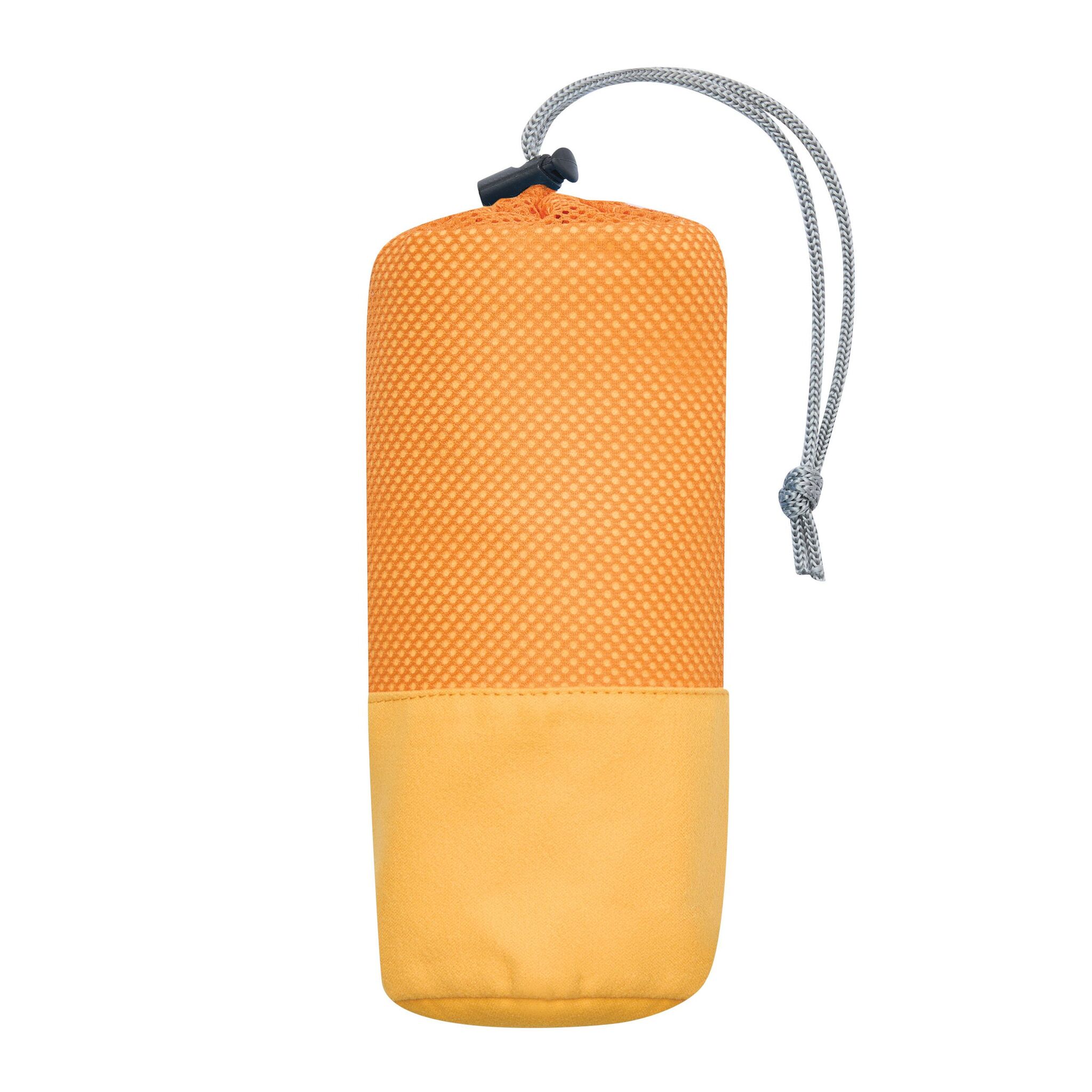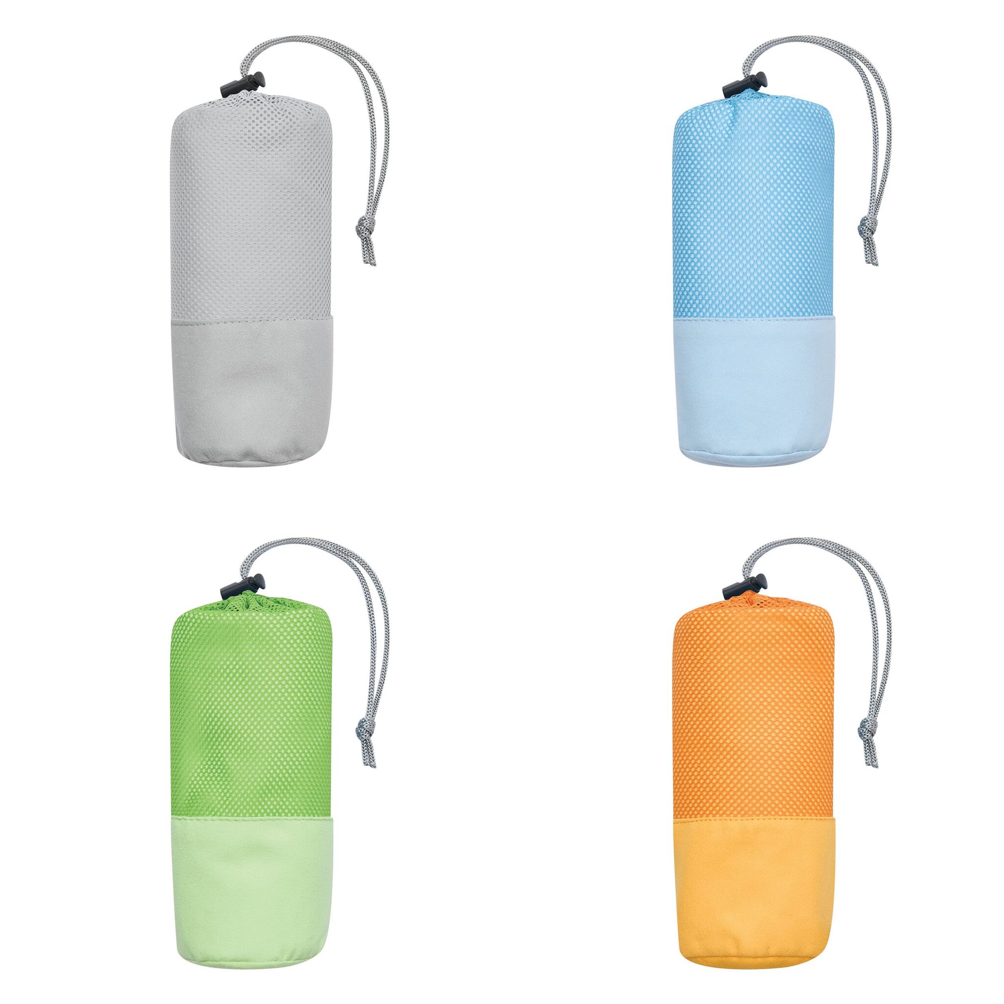 Полотенце из микрофибры FRESHNESS хорошо впитывает влагу и быстро сохнет, мягкая текстура, в сетчатом мешочке соответствующего цвета с затягивающим шнурком и пластиковым стоппером.