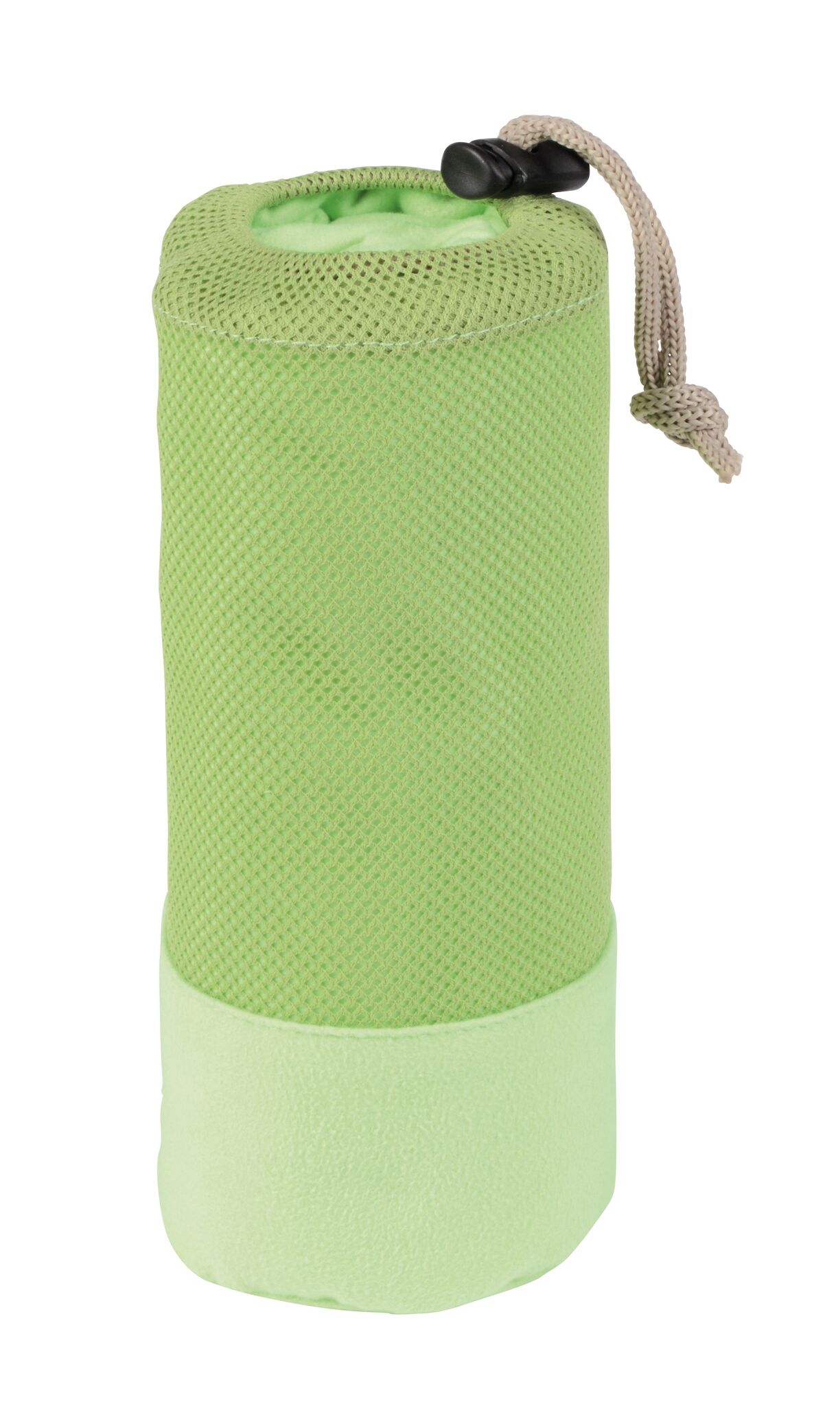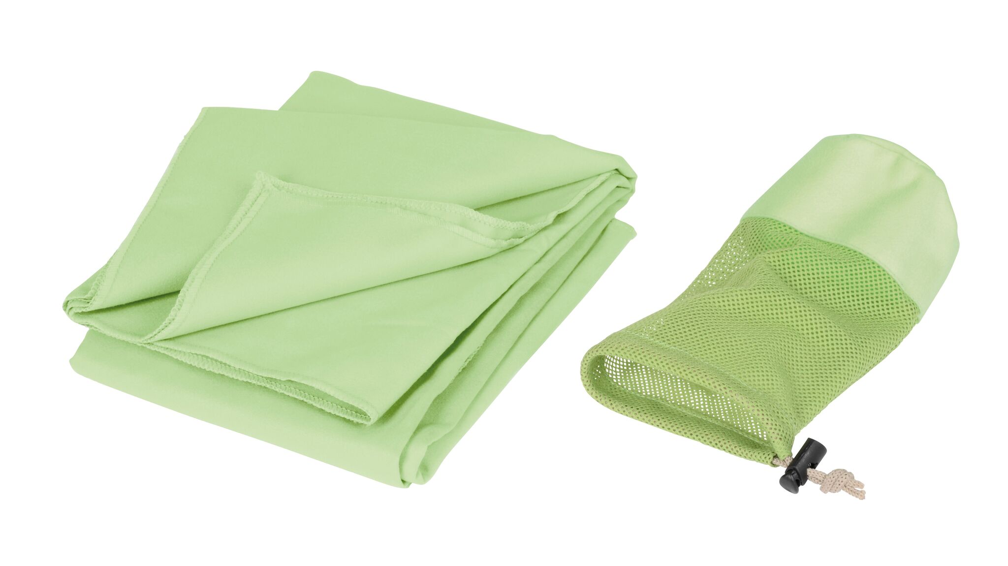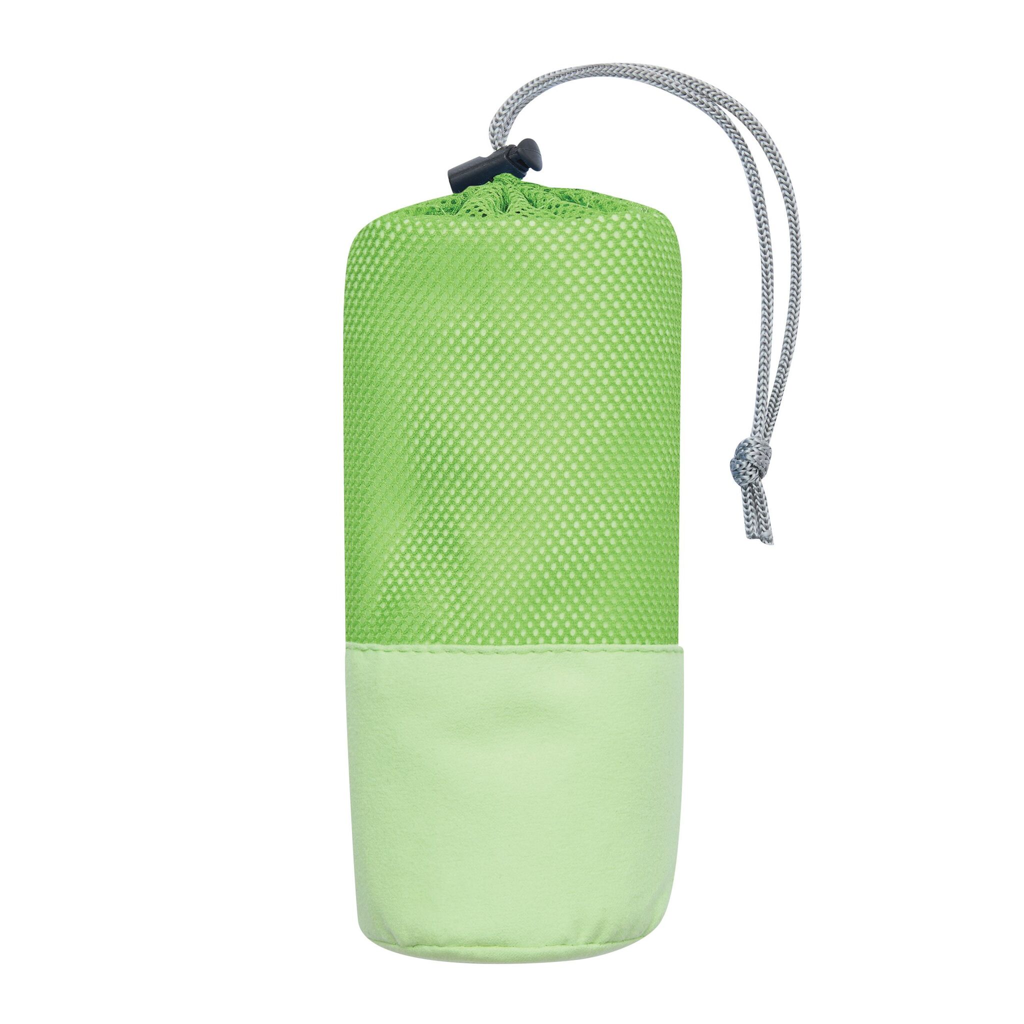 Полотенце из микрофибры FRESHNESS хорошо впитывает влагу и быстро сохнет, мягкая текстура, в сетчатом мешочке соответствующего цвета с затягивающим шнурком и пластиковым стоппером.