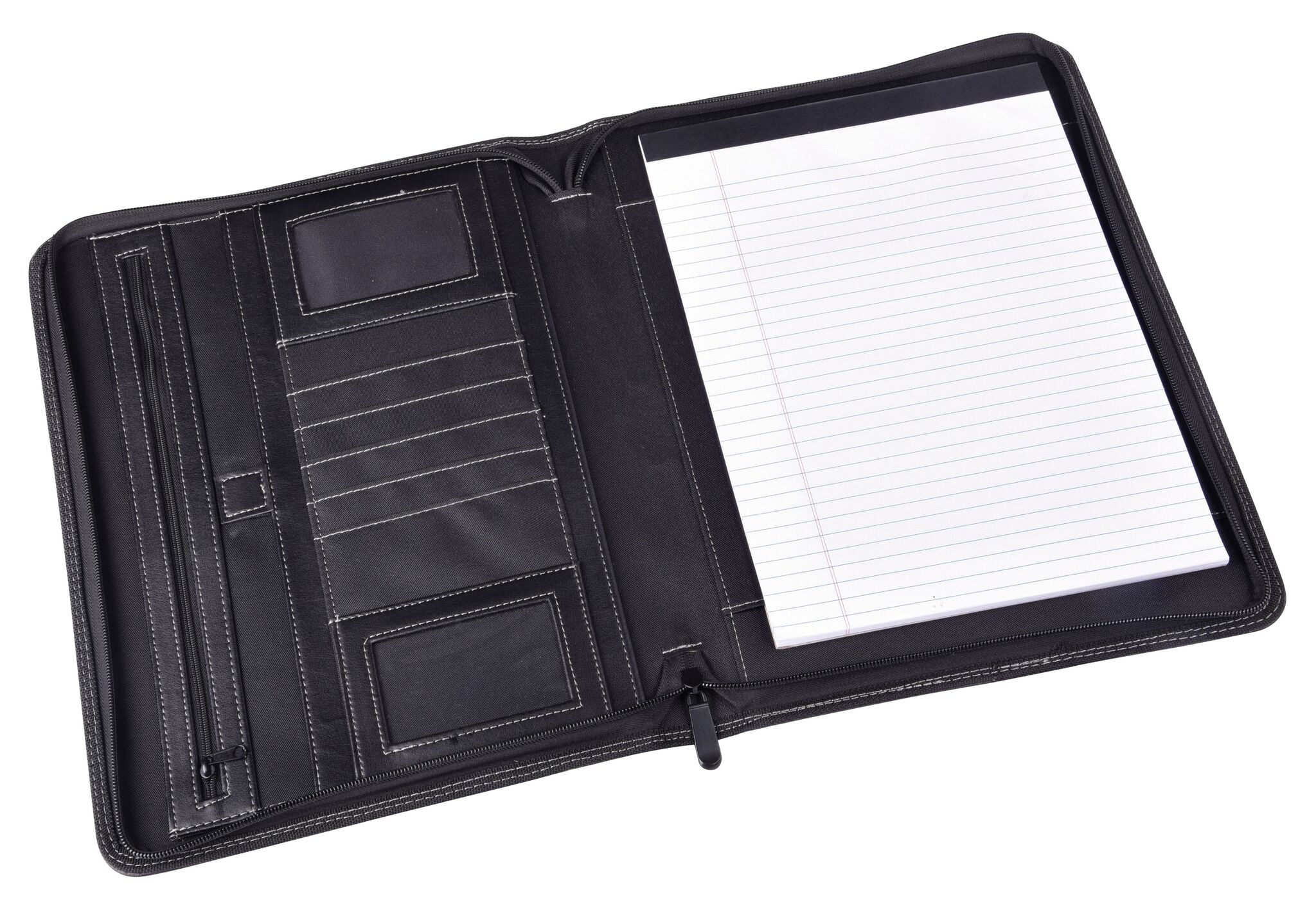 Portfolio BIG BOSS : im DIN-A4-Format, umlaufender Reißverschluss, mit Schreibblock, diversen Einsteckfächern und 1 Reißverschluss-Steckfach, außen elastische Schlaufe für ein Schreibgerät