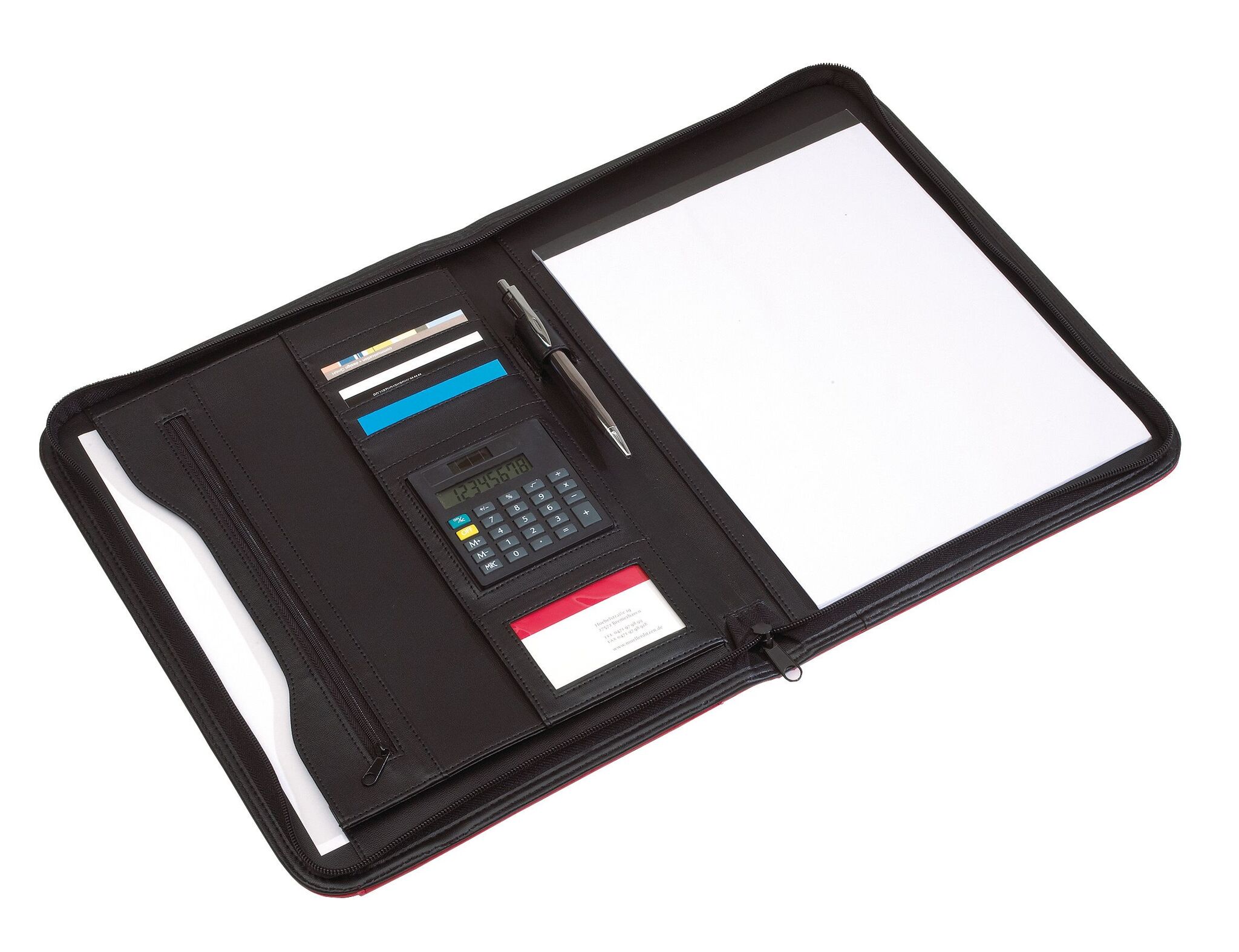 Портфолио GENTLE в формате DIN-A4: молния по периметру, внутри с множеством различных кармашков, один прозрачный кармашек, внутренний карман на молнии, миникалькулятор, блокнот, петля для ручки или карандаша, один внешний карман