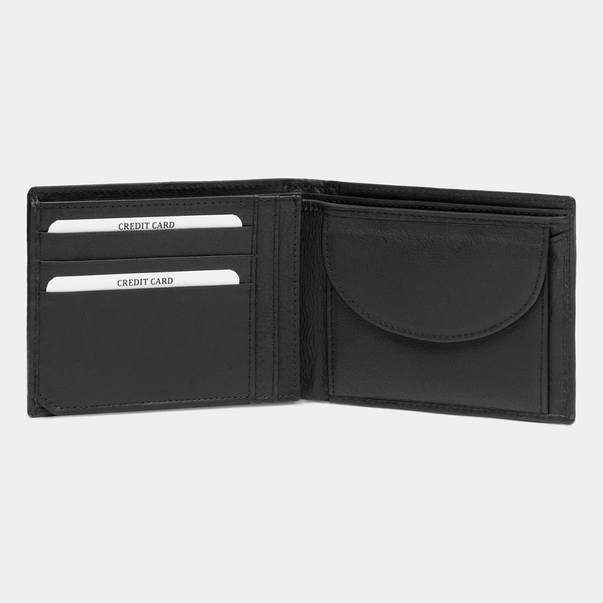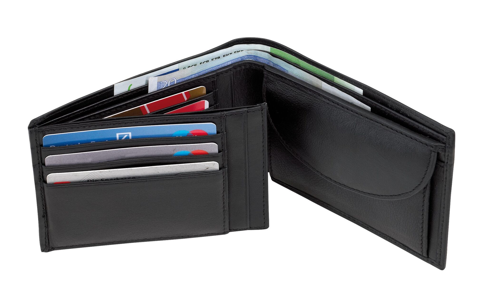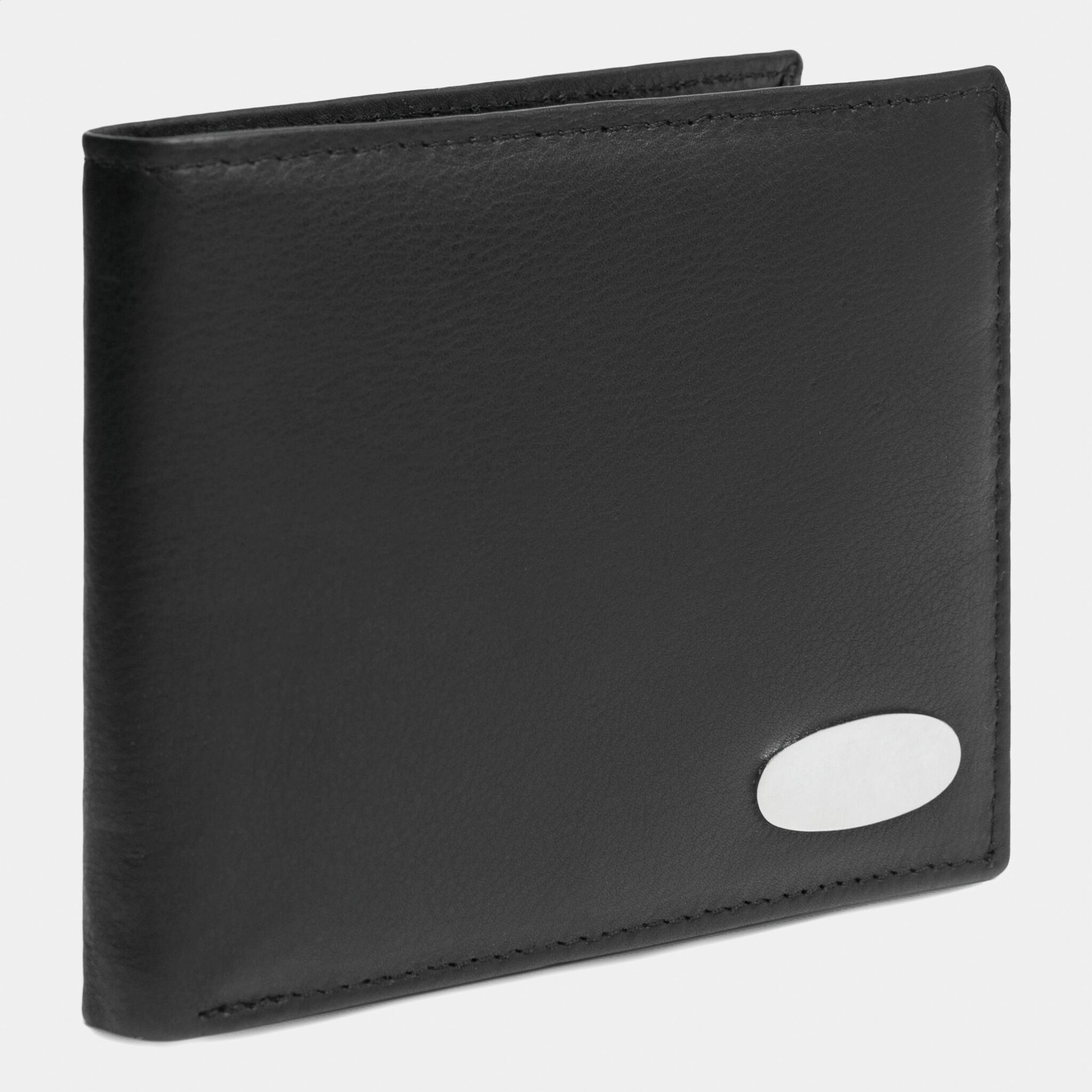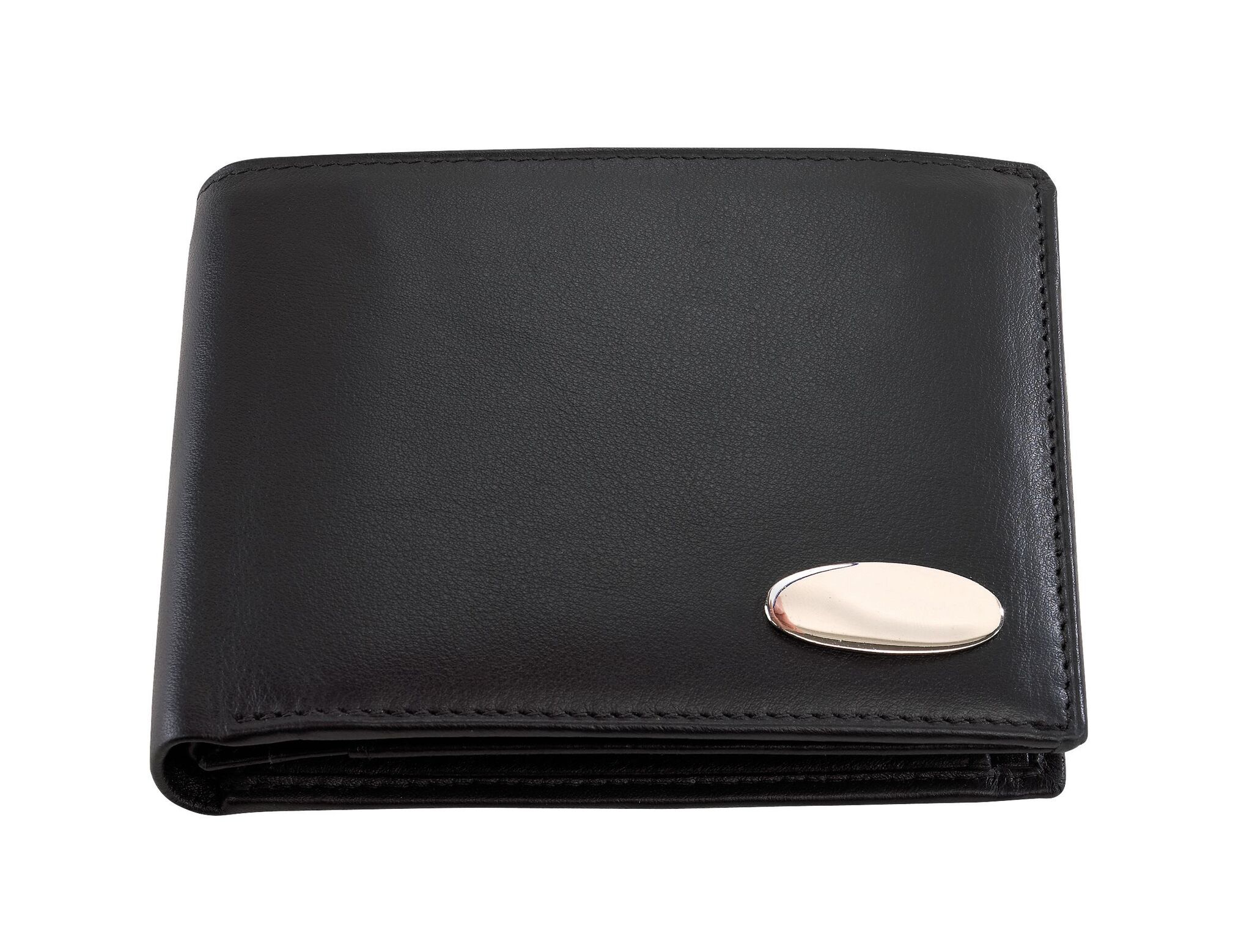 Портмоне из натуральной кожи DAX в горизонтальном формате: с различными отделениями внутри для денег и визитных карточек, отделение с сеткой для удостоверения личности, два больших отделения для купюр, отделение для монет на кнопке - овальная металлическая пластина для нанесения логотипа