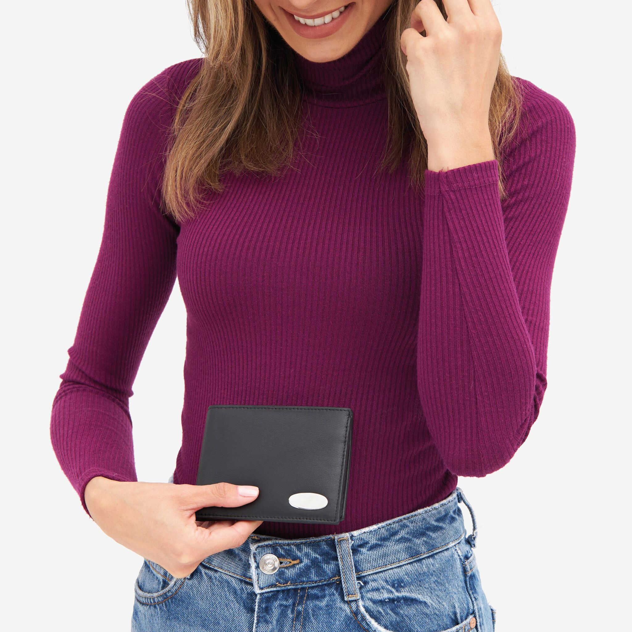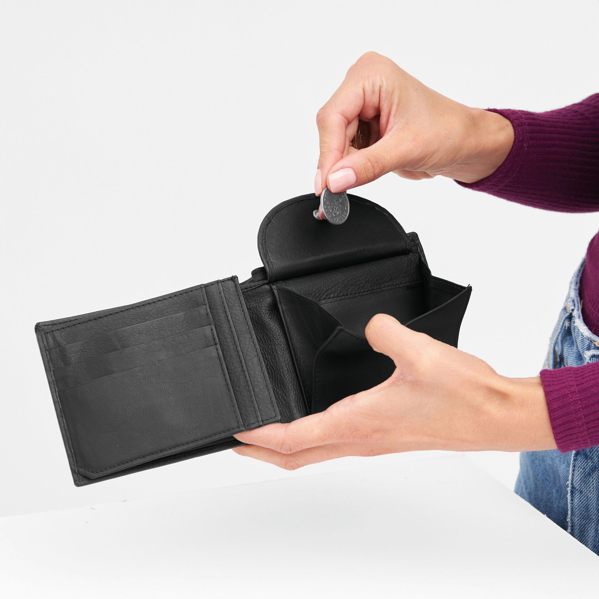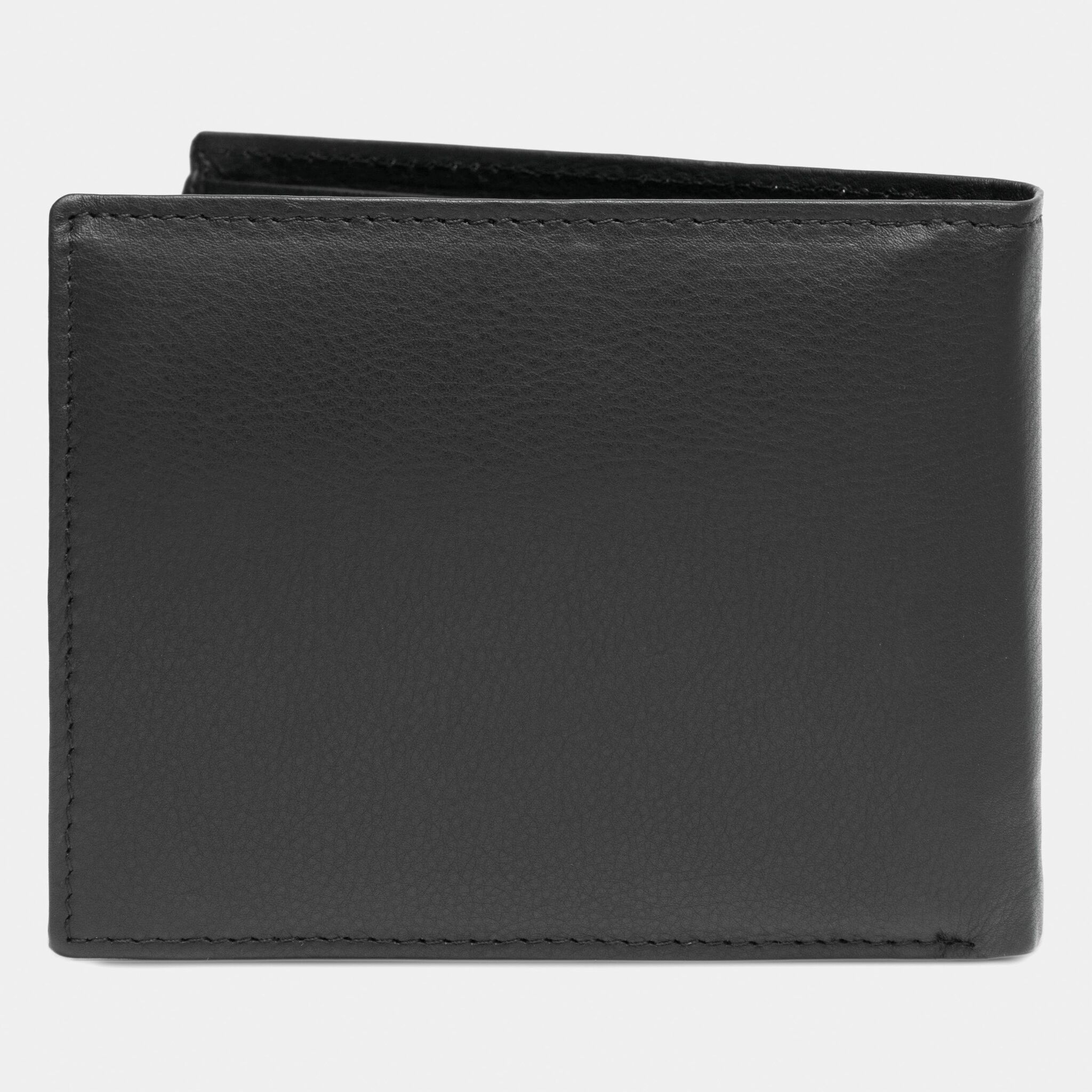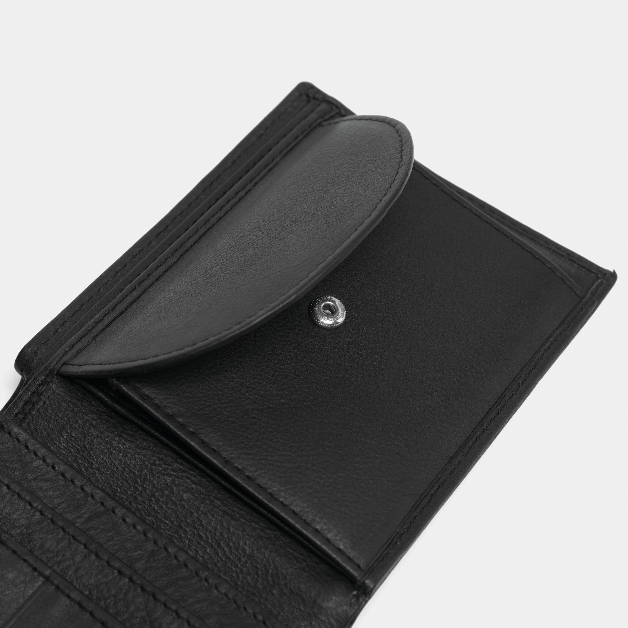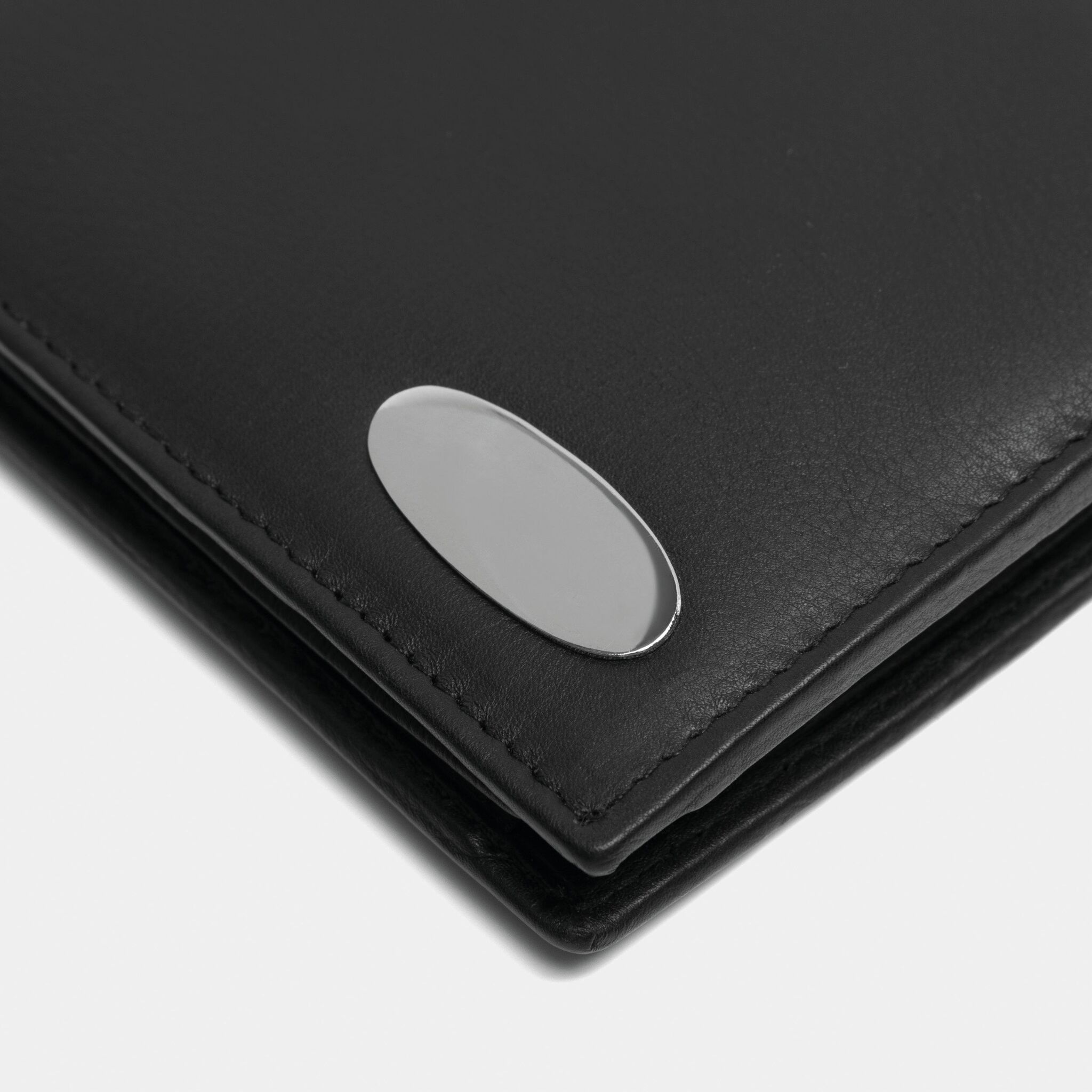 Портмоне из натуральной кожи DAX в горизонтальном формате: с различными отделениями внутри для денег и визитных карточек, отделение с сеткой для удостоверения личности, два больших отделения для купюр, отделение для монет на кнопке - овальная металлическая пластина для нанесения логотипа