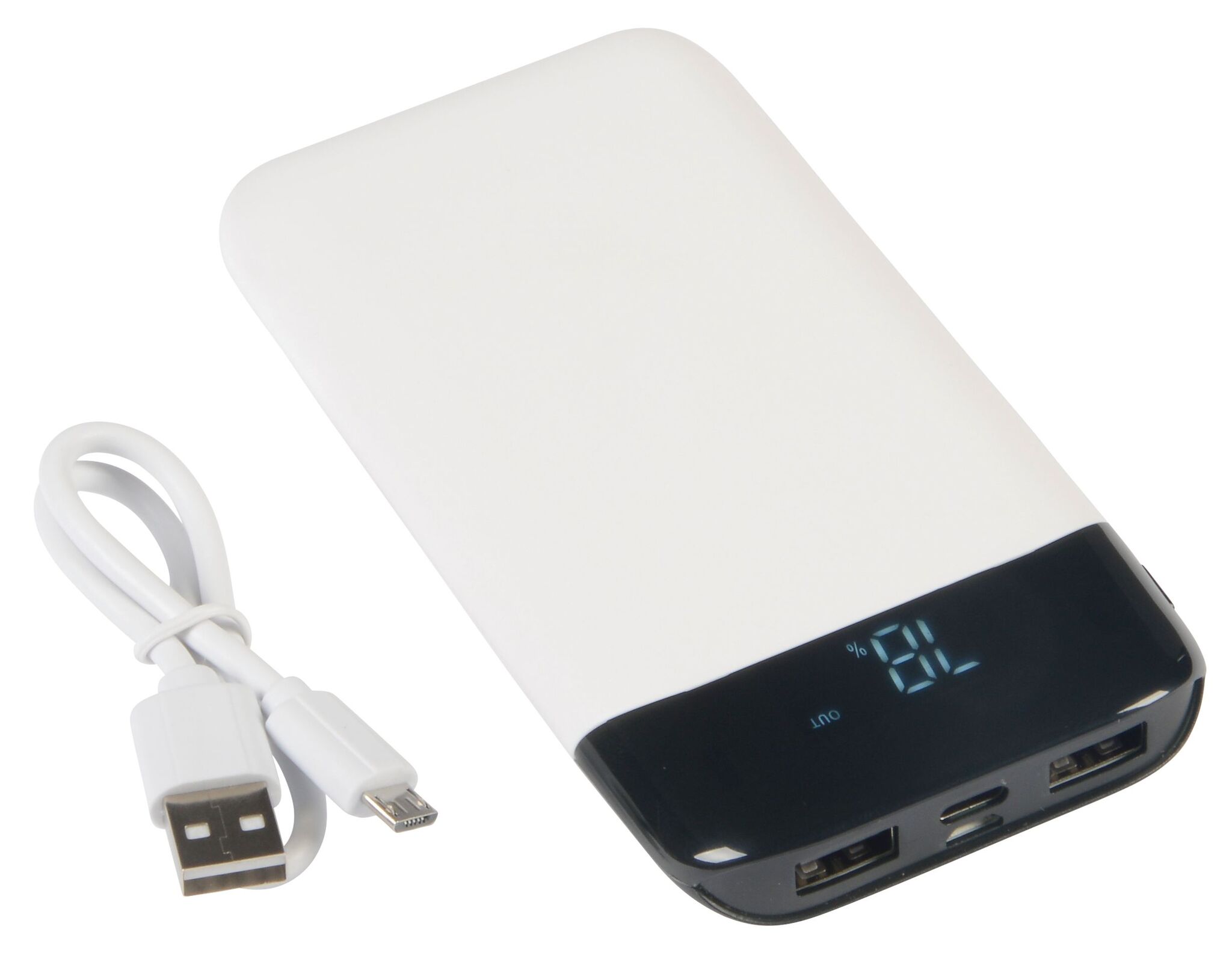 Повербанк BIG CAP – идеальный источник энергии в пути: подходит для смартфонов и USB-устройств; в наборе USB-кабель с разъемом Micro-USB и USB Type-C (длина: ок. 30 см), выключатель, входная мощность: 5V/2A, емкость 8.000 mAh, индикатор уровня зарядки в процентах