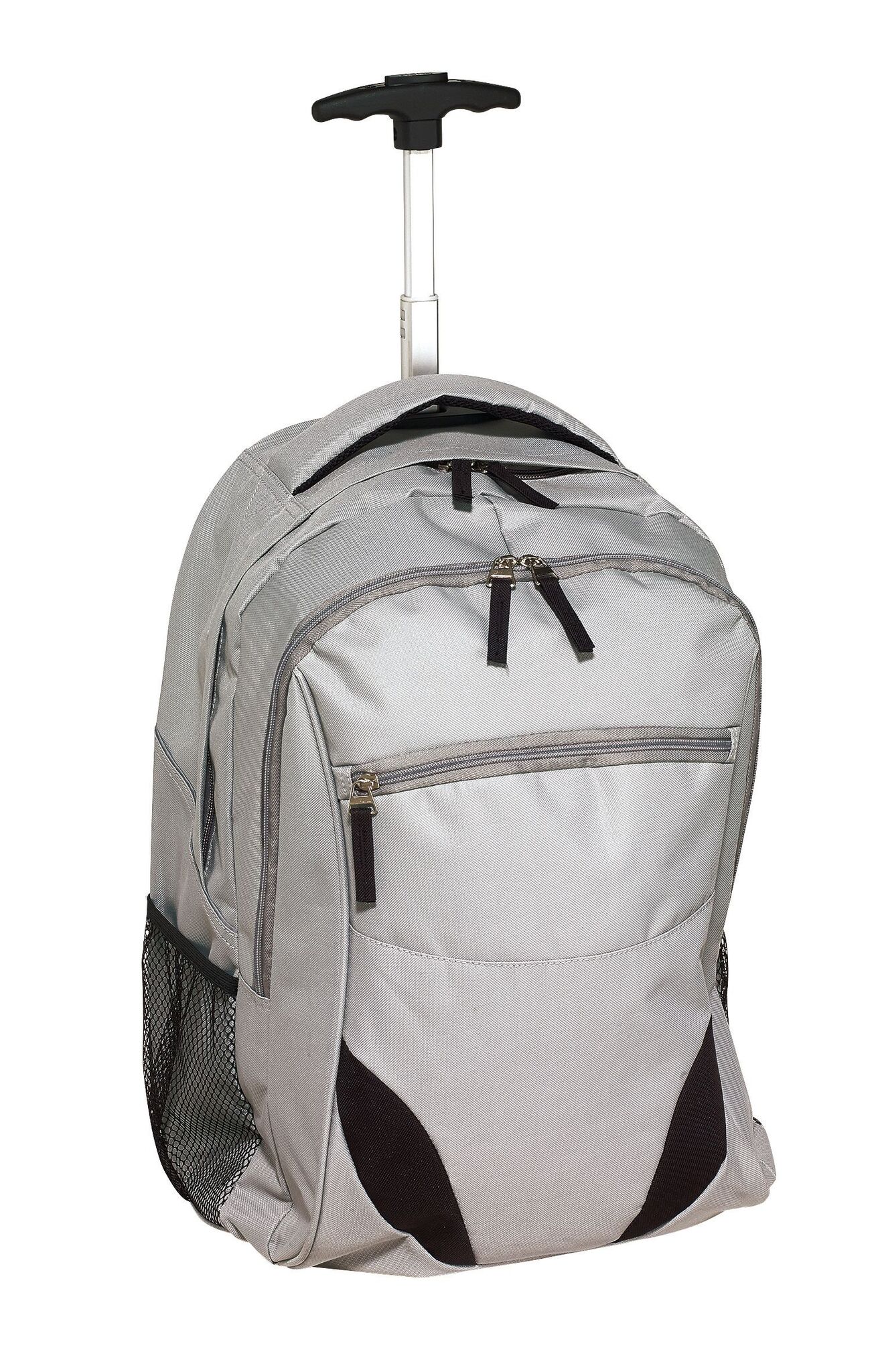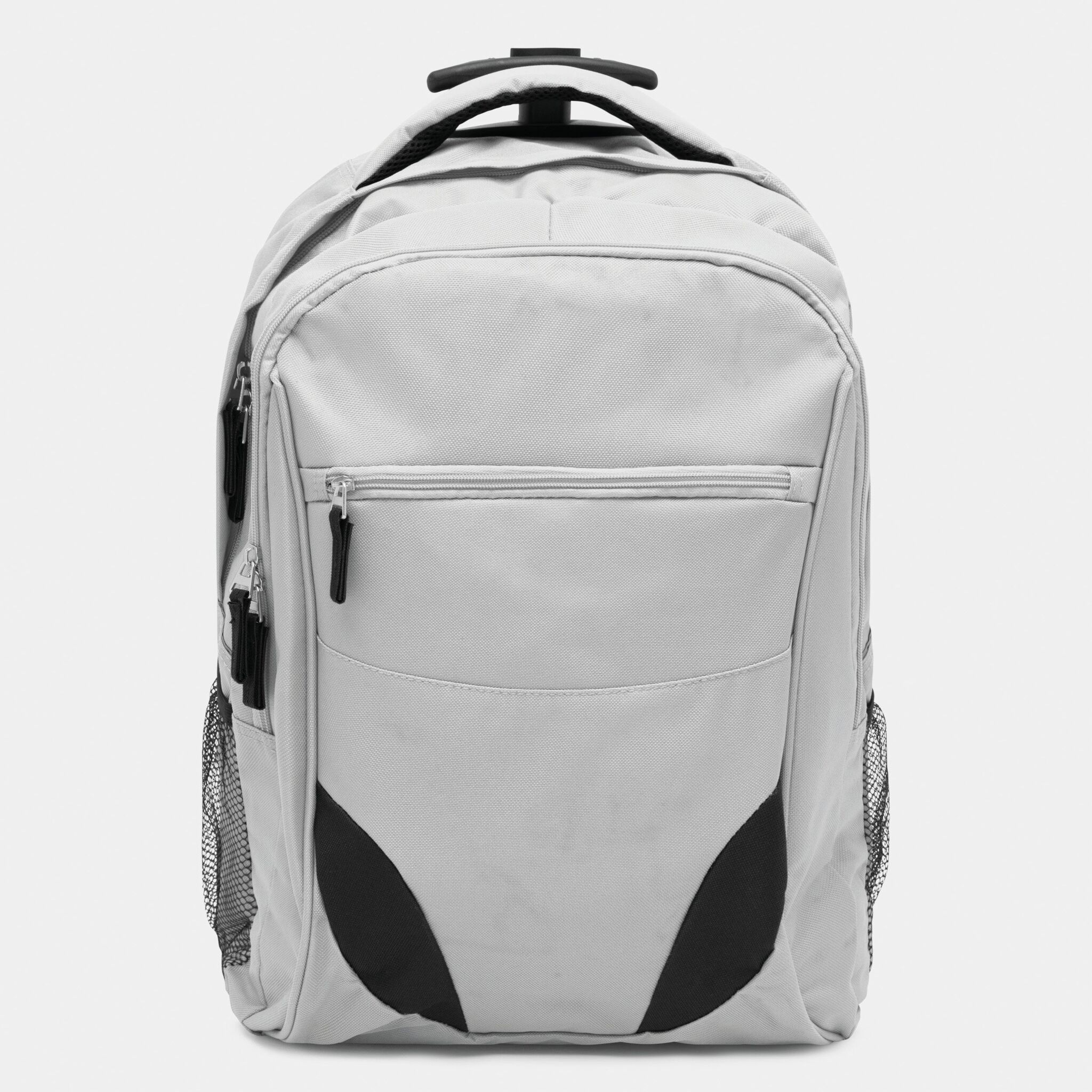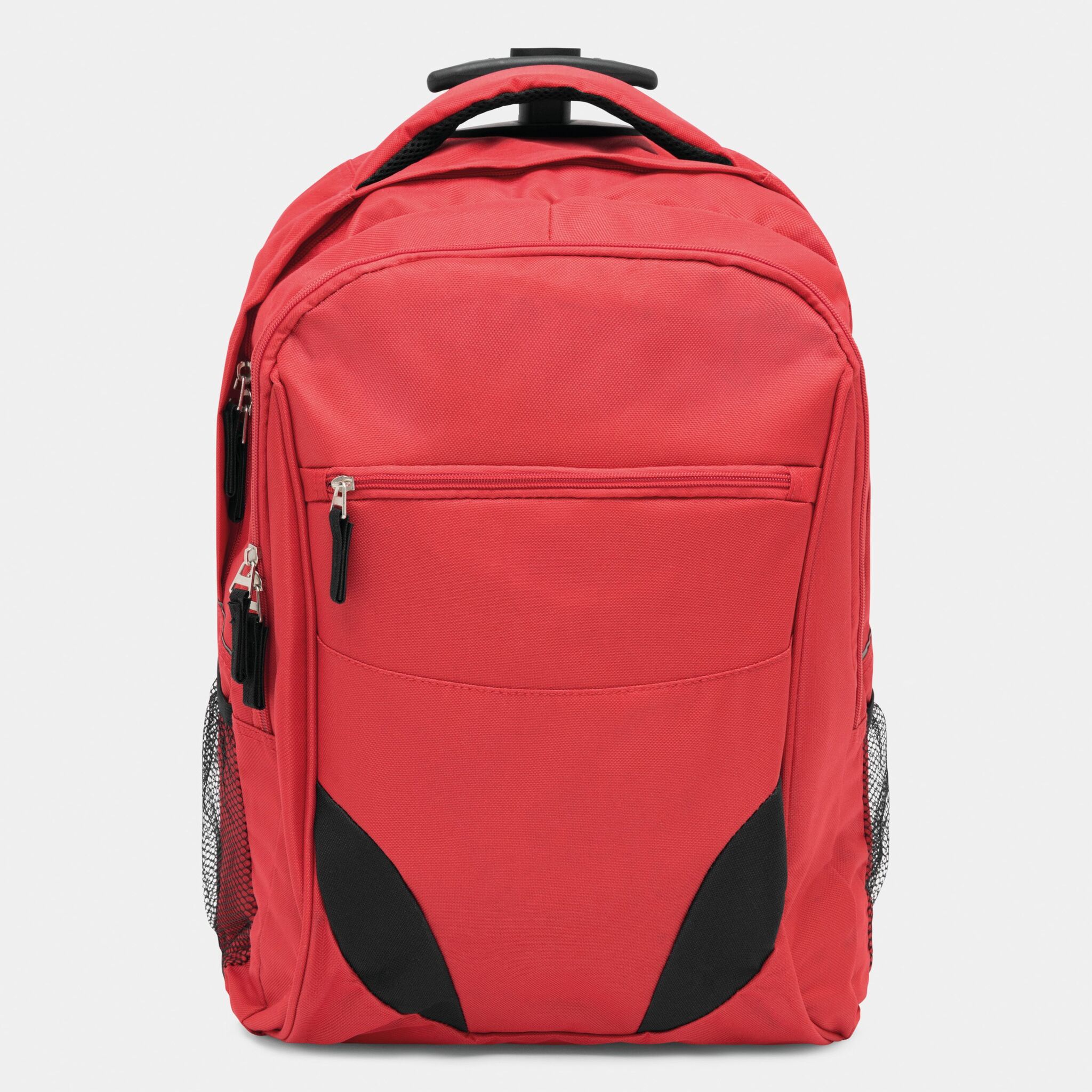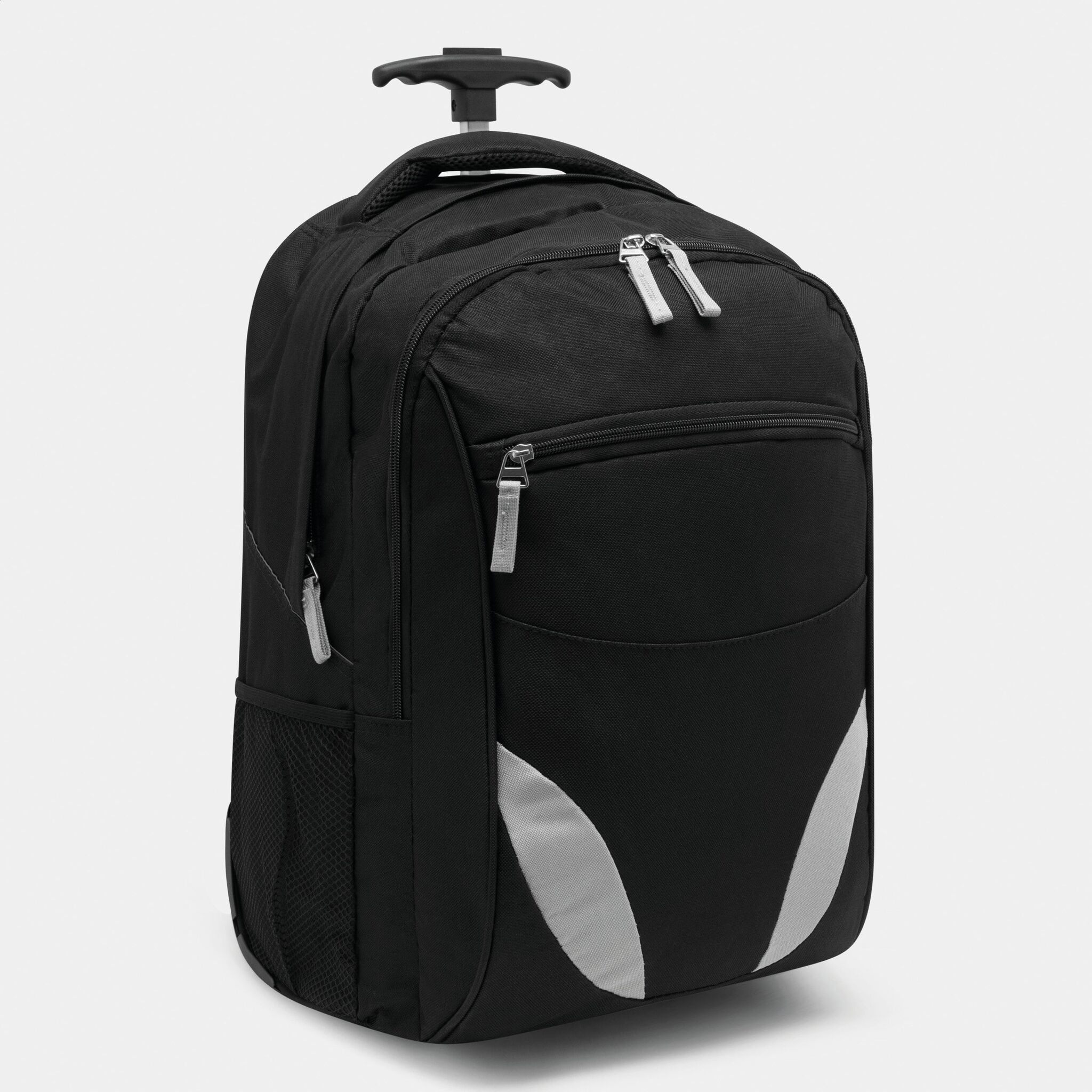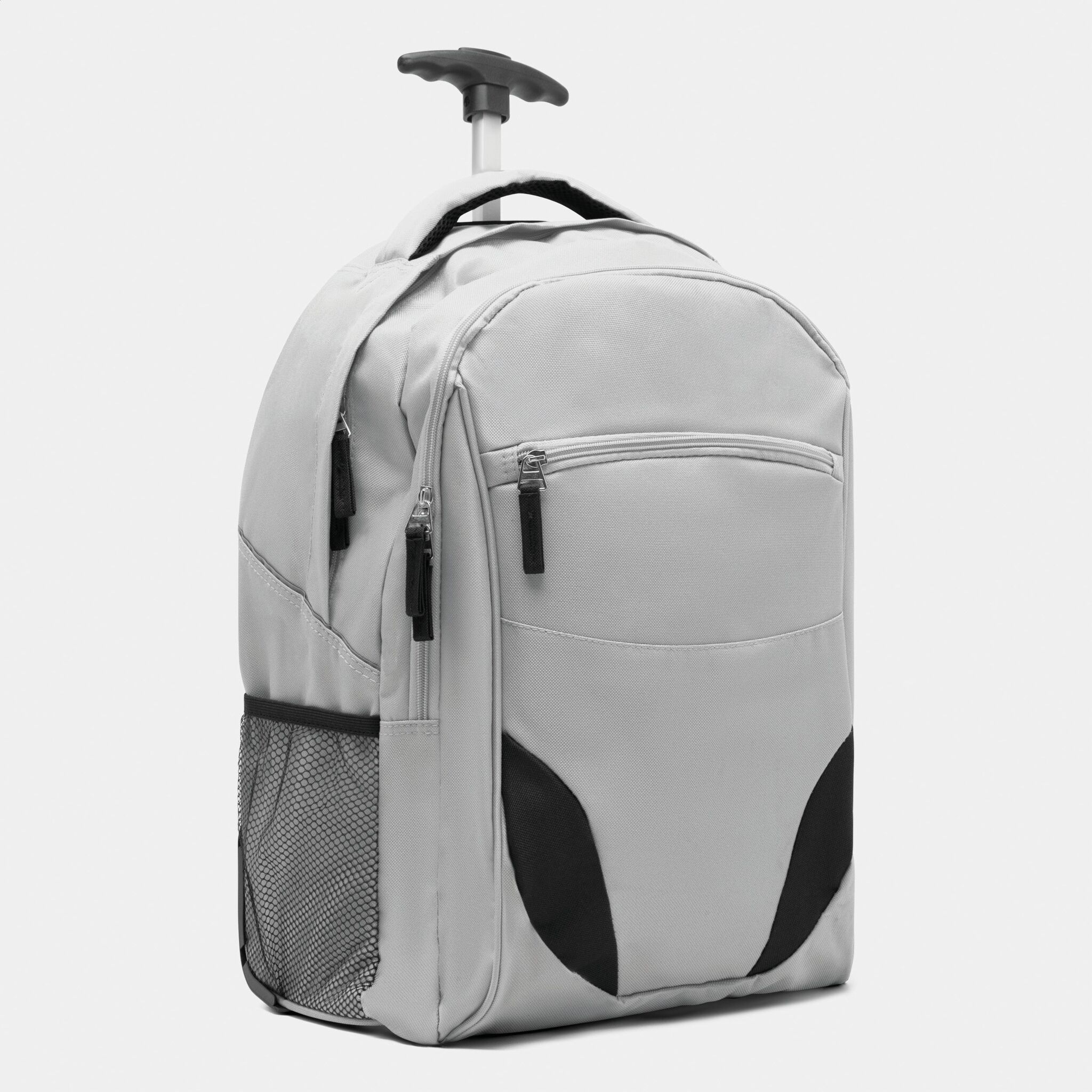 Pюкзак на колесах TRAILER небольшой передний карман на замке, большой передний карман с органайзером для замка, главное отделение с профилированным карманом для ноутбука, 2 боковых кармана из сетки, профилированные плечи и лямки, карман на молнии для лямок; телескопическая ручка, ручка для переноса,2 легко скользящих колеса