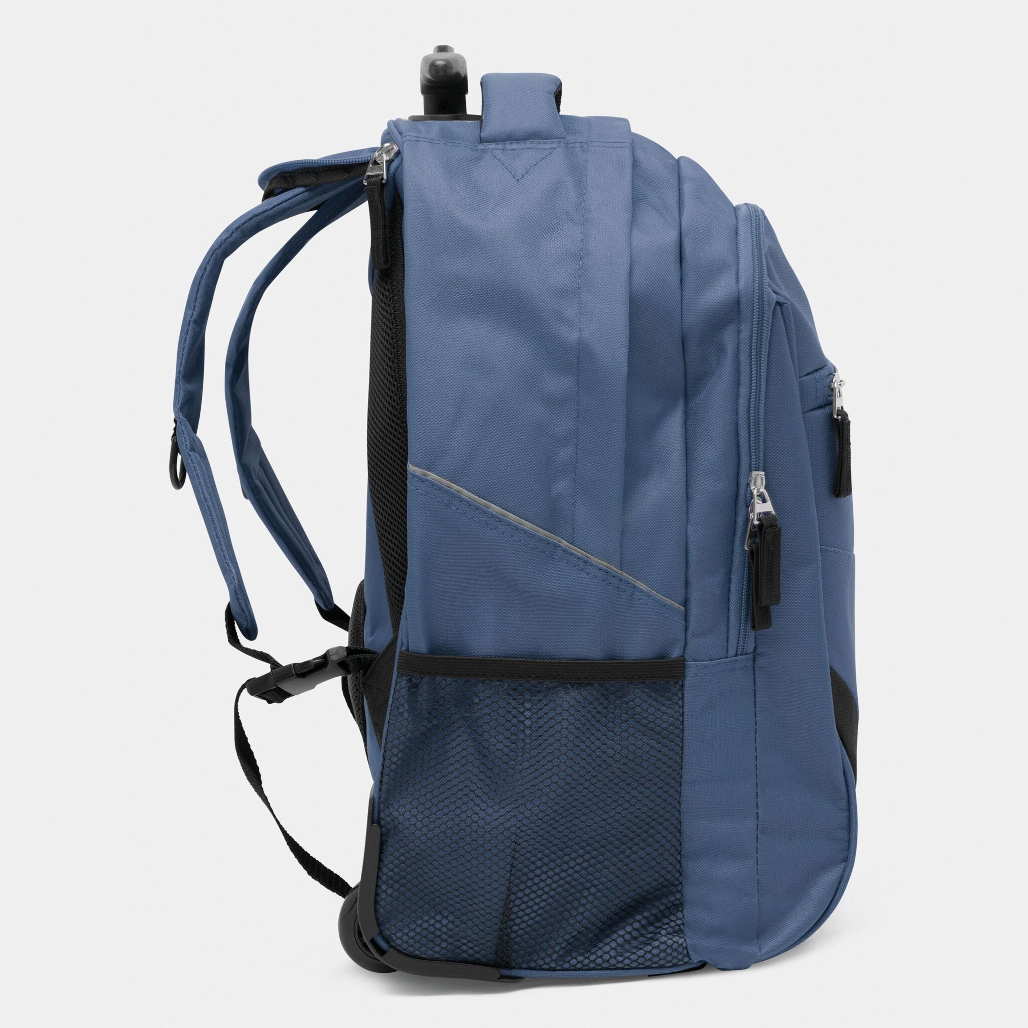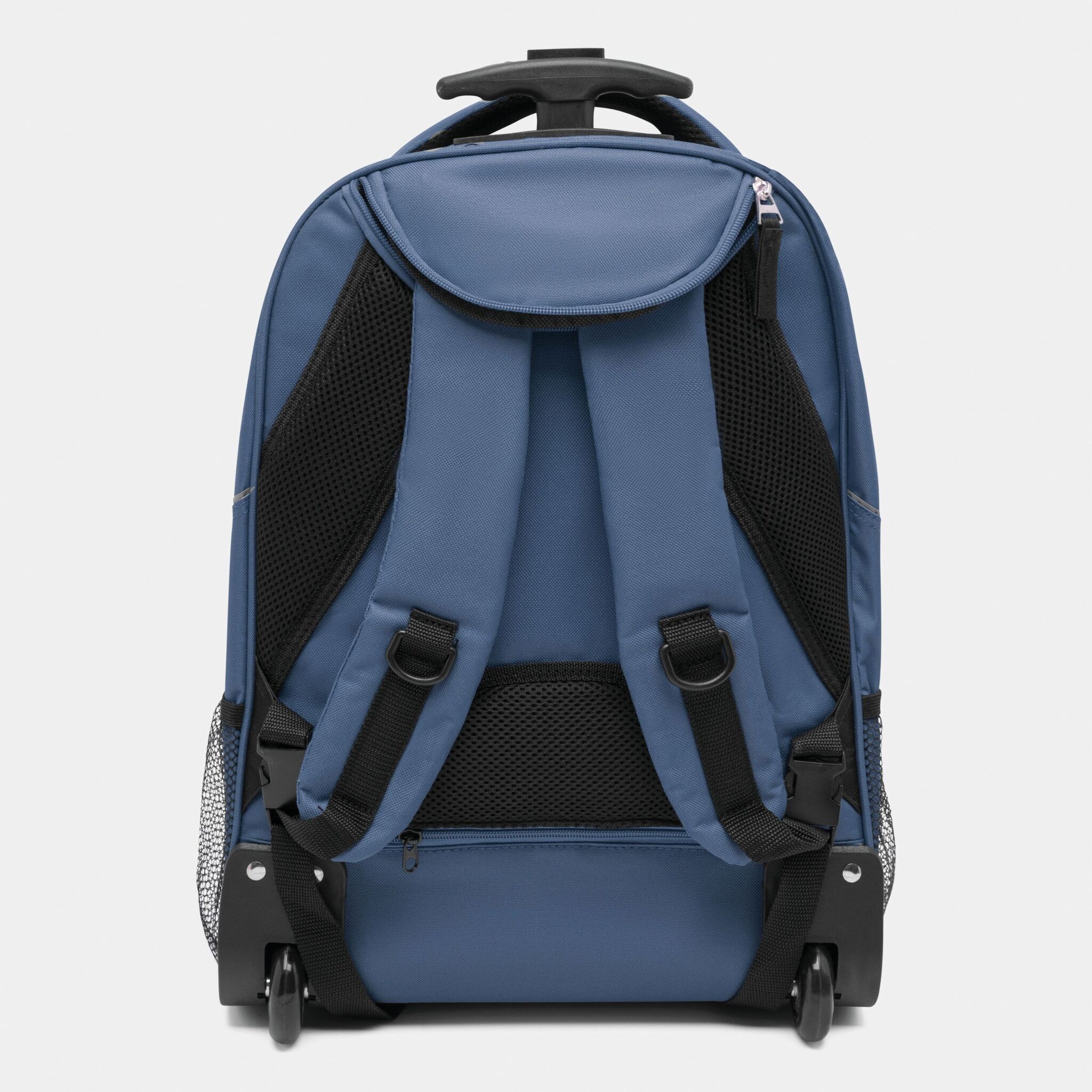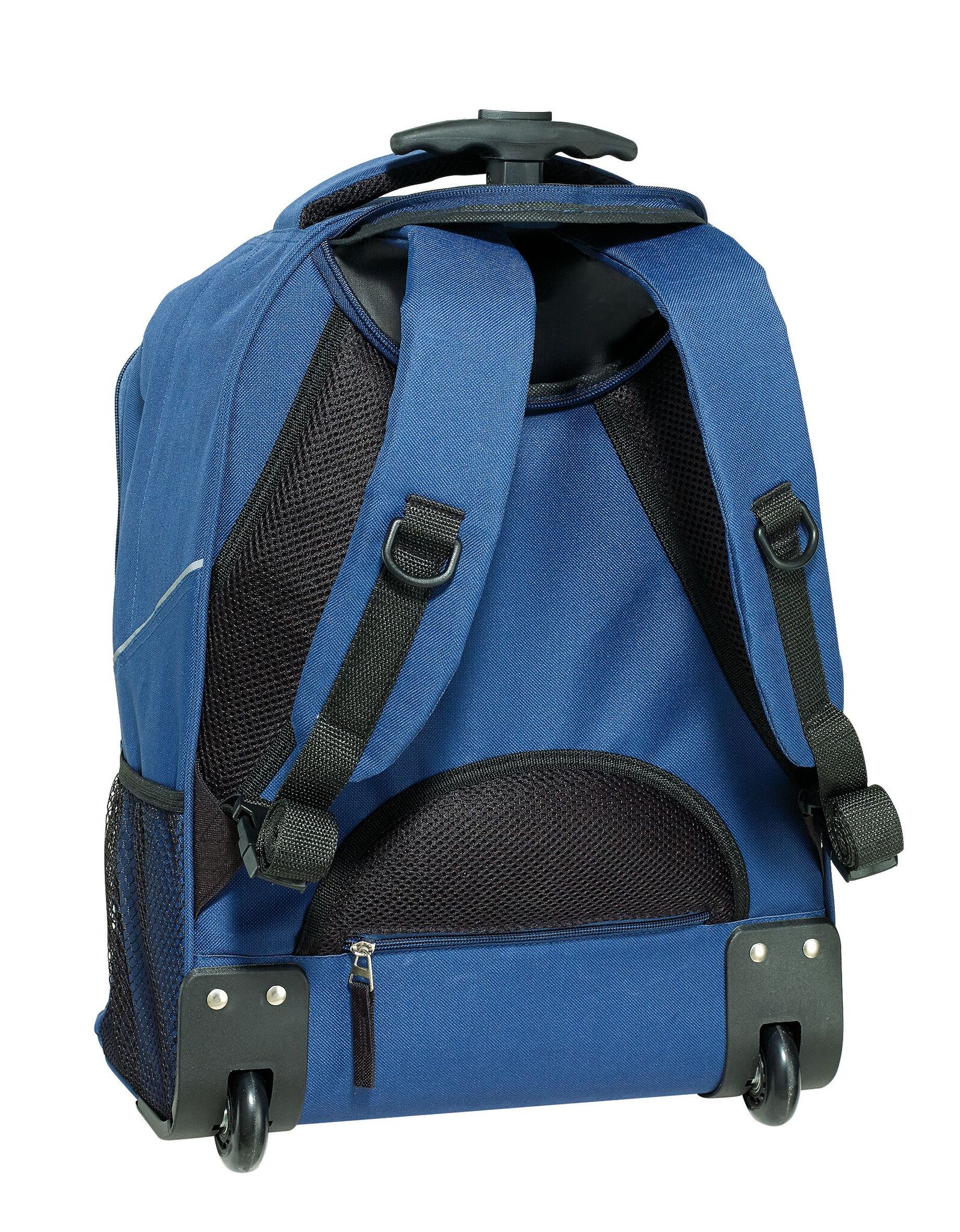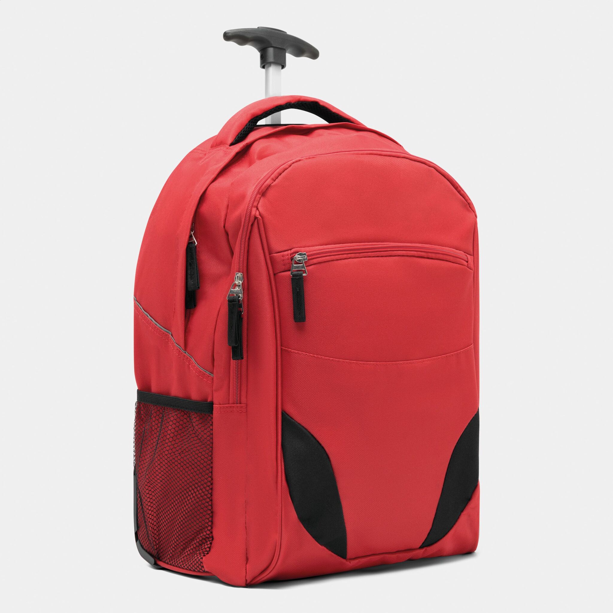 Pюкзак на колесах TRAILER небольшой передний карман на замке, большой передний карман с органайзером для замка, главное отделение с профилированным карманом для ноутбука, 2 боковых кармана из сетки, профилированные плечи и лямки, карман на молнии для лямок; телескопическая ручка, ручка для переноса,2 легко скользящих колеса