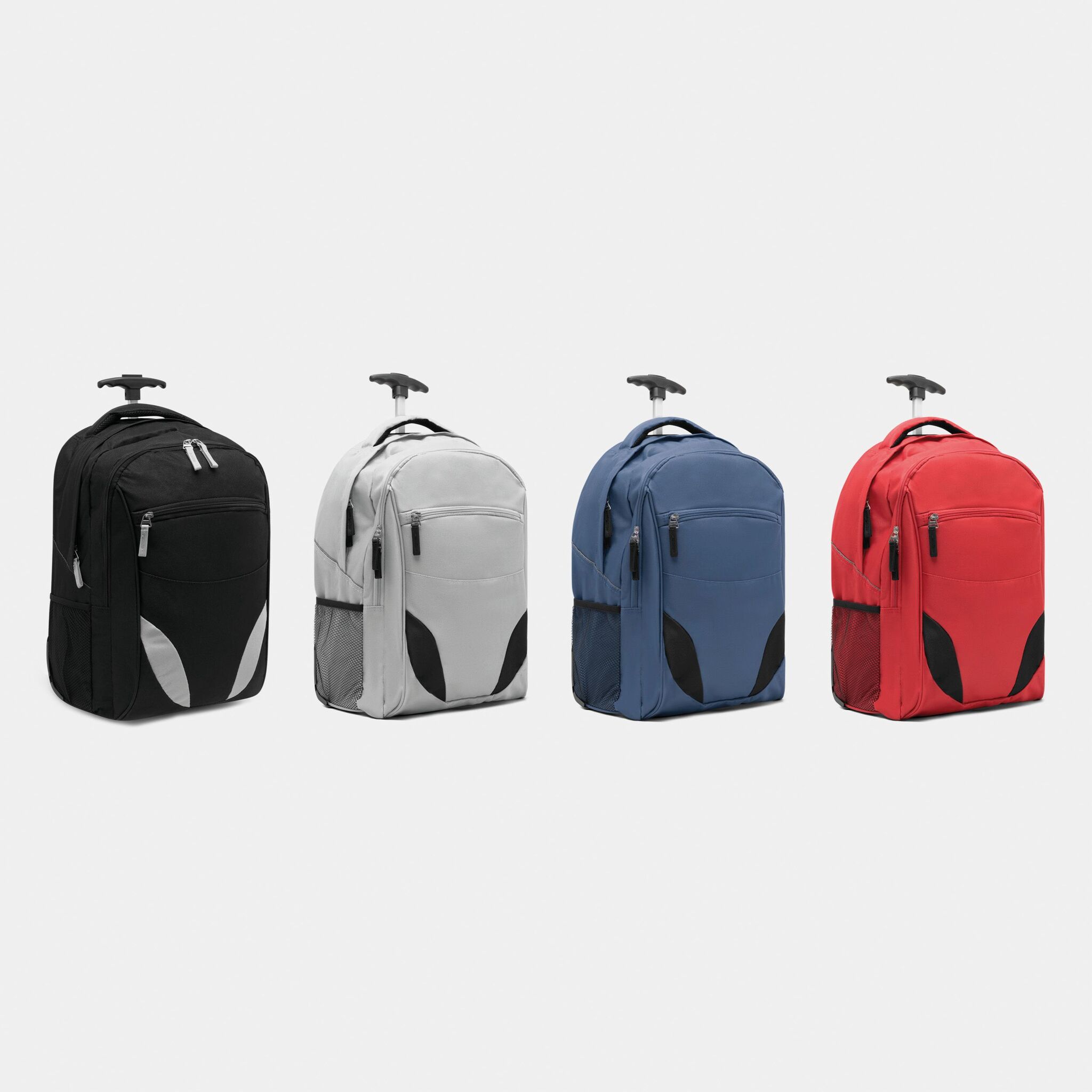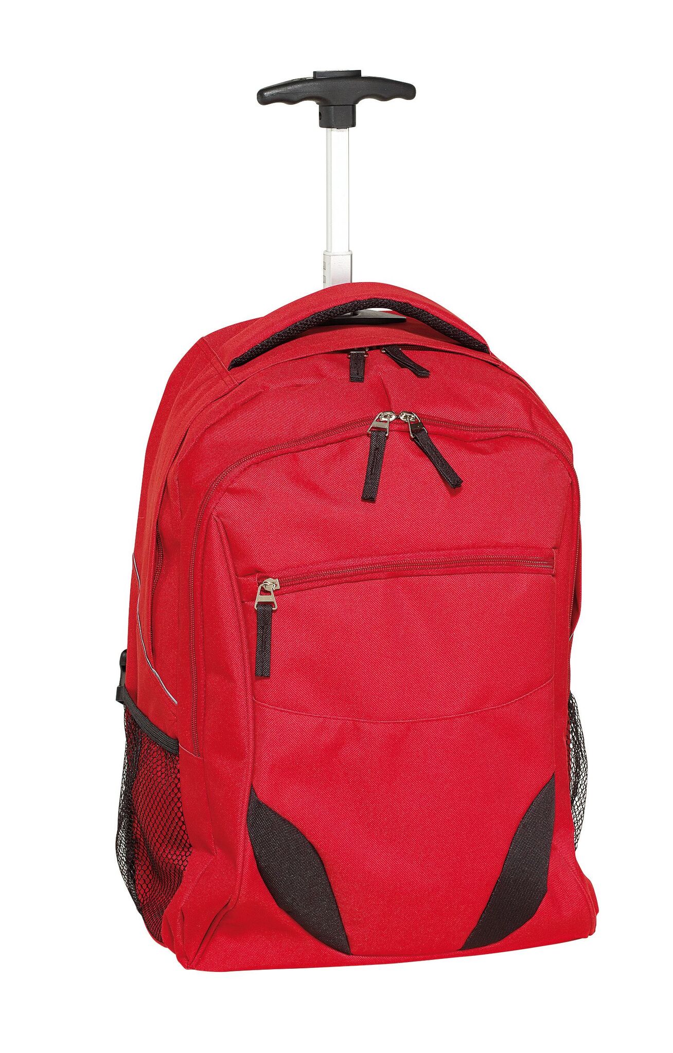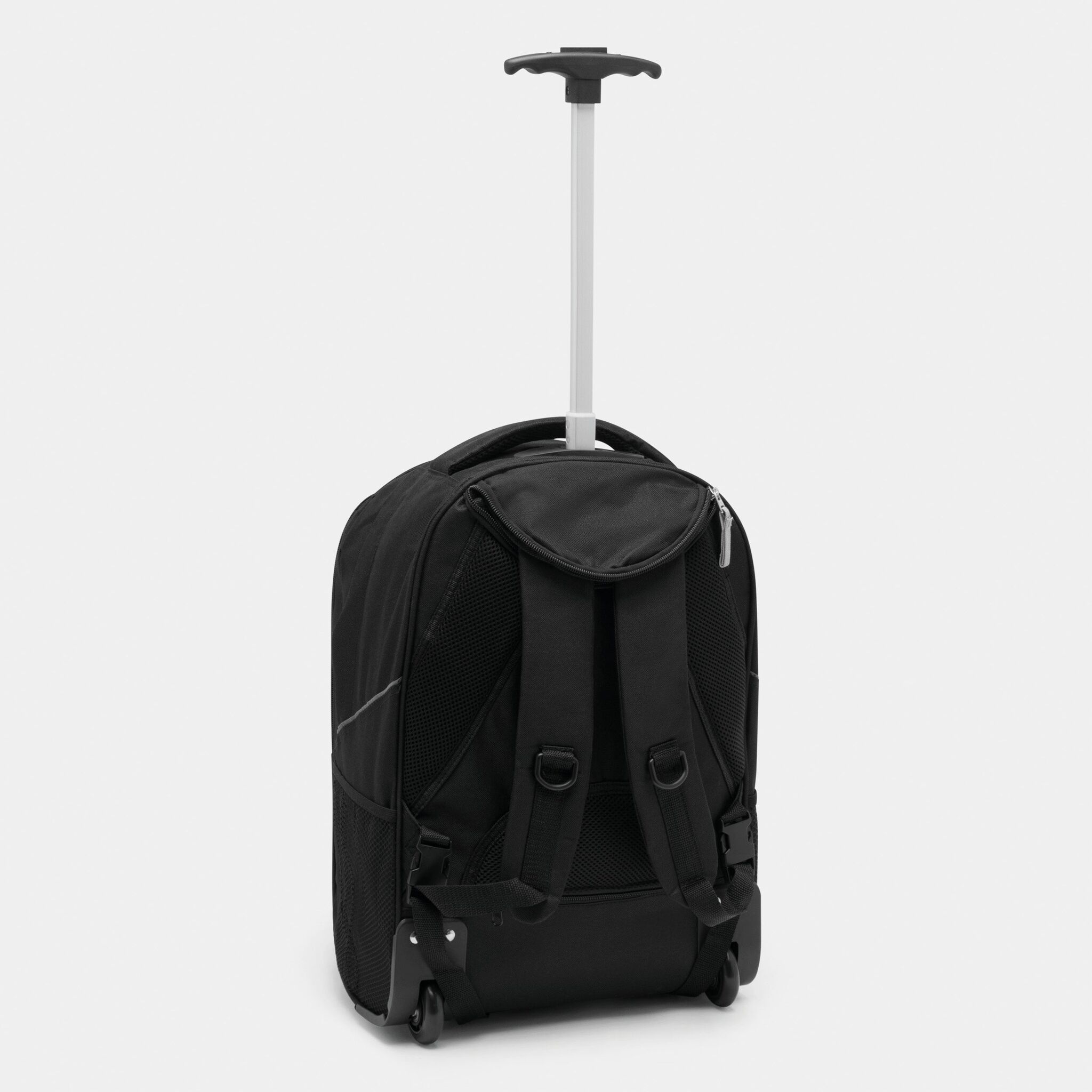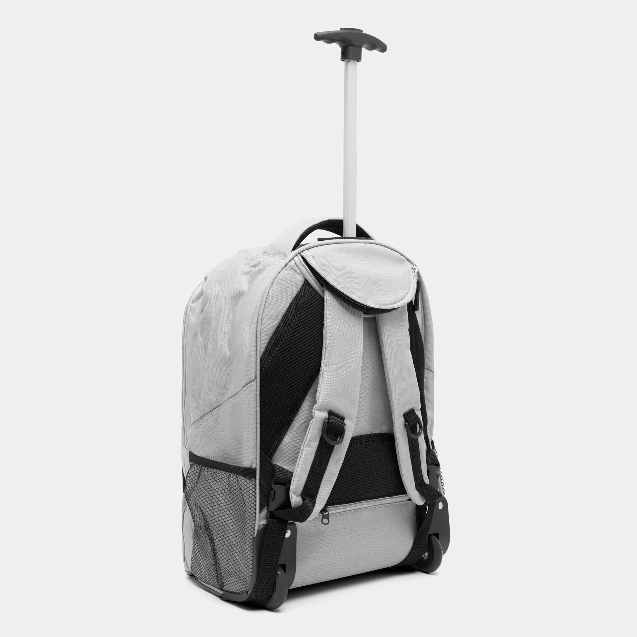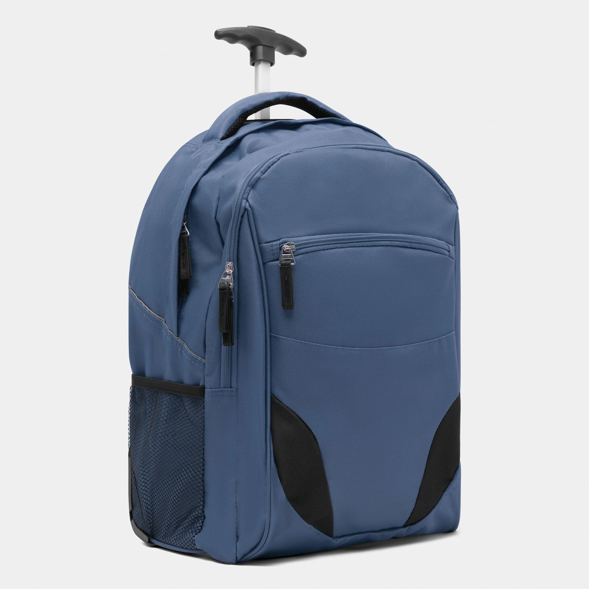 Pюкзак на колесах TRAILER небольшой передний карман на замке, большой передний карман с органайзером для замка, главное отделение с профилированным карманом для ноутбука, 2 боковых кармана из сетки, профилированные плечи и лямки, карман на молнии для лямок; телескопическая ручка, ручка для переноса,2 легко скользящих колеса
