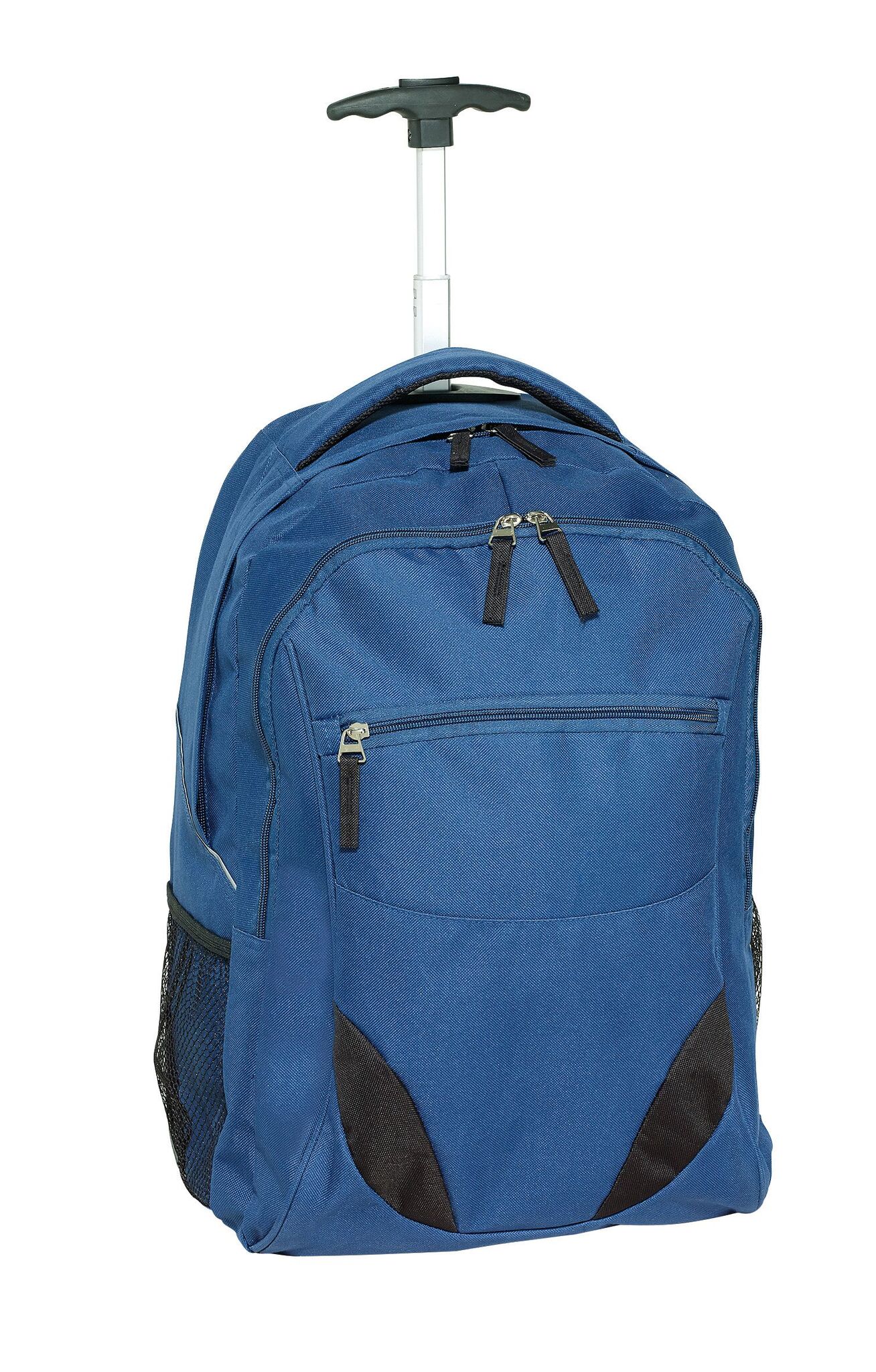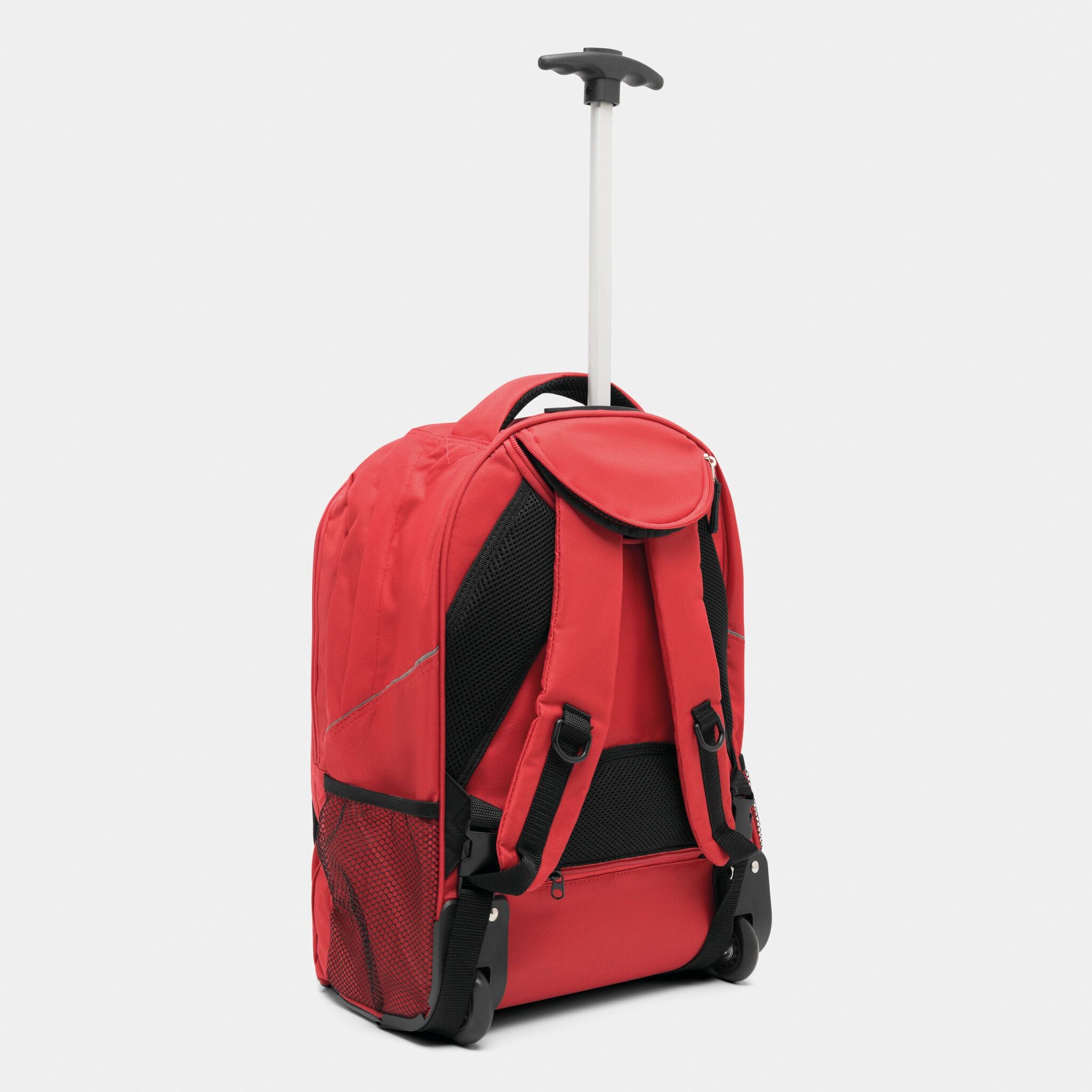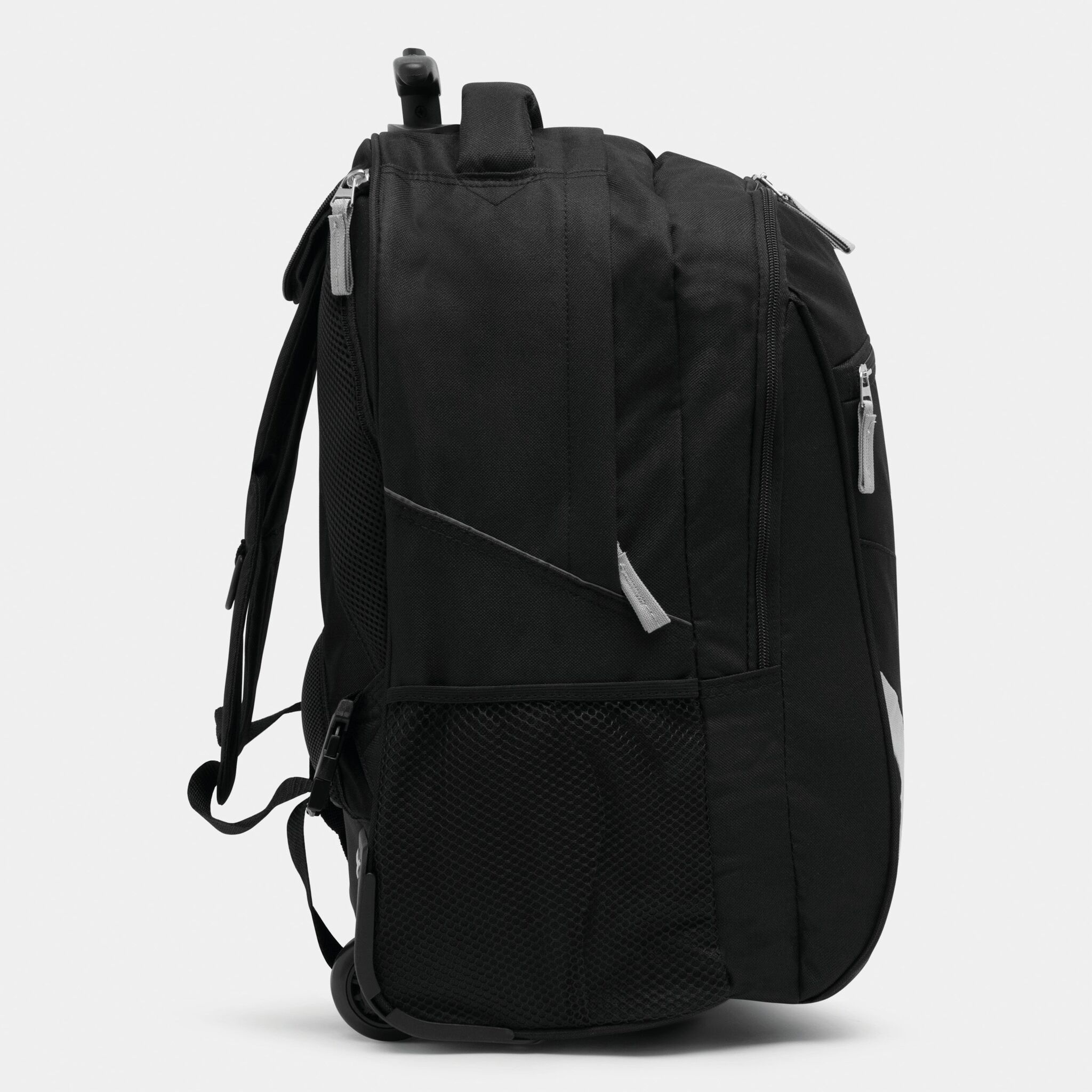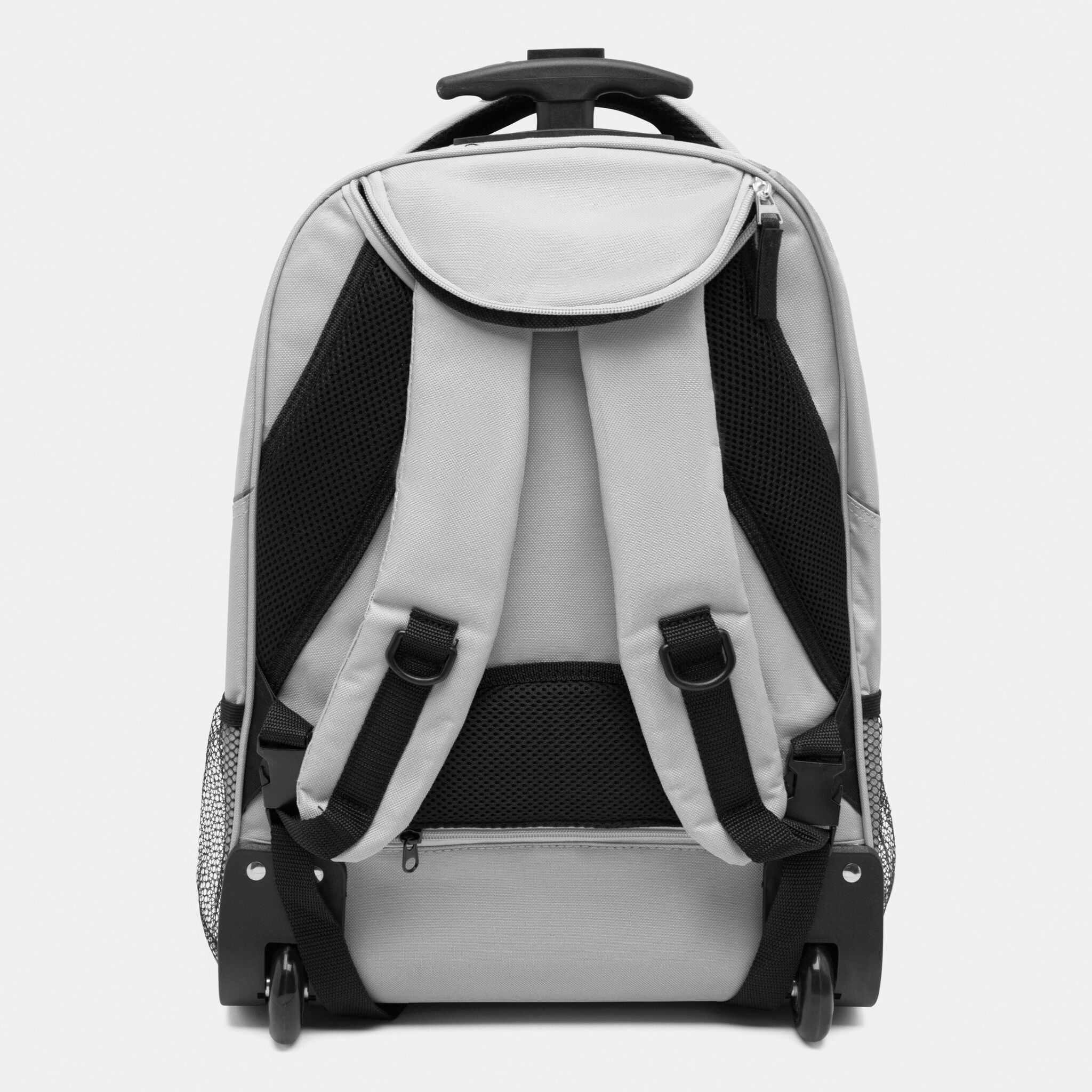 Pюкзак на колесах TRAILER небольшой передний карман на замке, большой передний карман с органайзером для замка, главное отделение с профилированным карманом для ноутбука, 2 боковых кармана из сетки, профилированные плечи и лямки, карман на молнии для лямок; телескопическая ручка, ручка для переноса,2 легко скользящих колеса