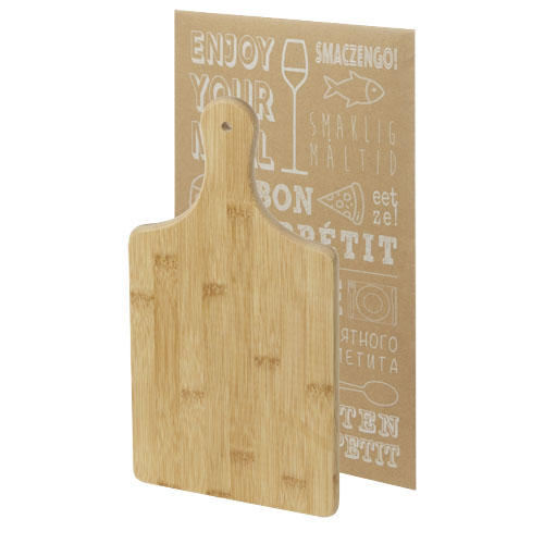 Разделочная доска из бамбука, который добывается и производится в соответствии со стандартами устойчивого развития. Доску также можно использовать для подачи тапас.