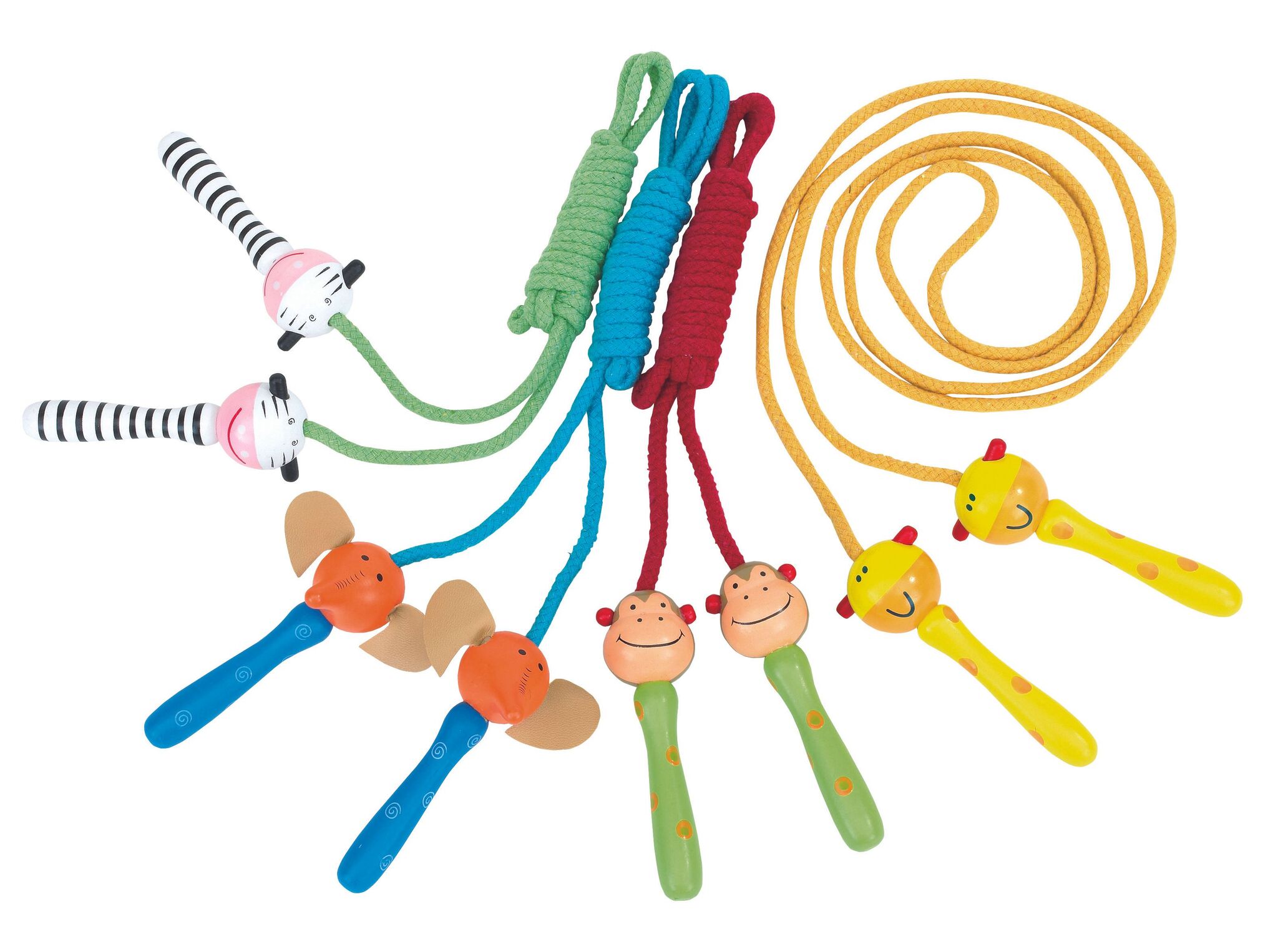 Разноцветные скакалки ANIMAL ANIMATION с деревянными ручками-игрушками, 4-х видов: слон, обезьяна, зебра, жираф