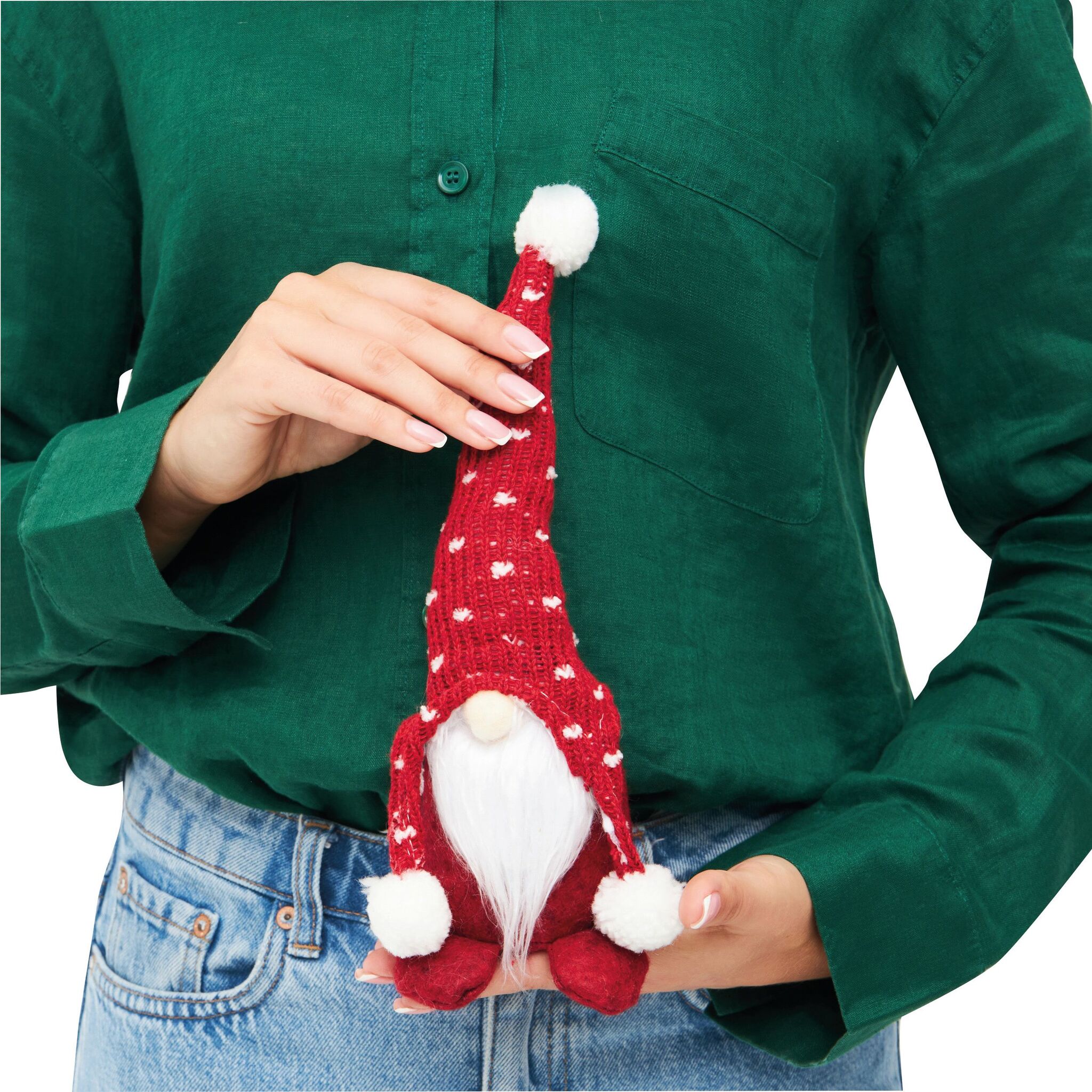 Рождественский гномик FRANZ : шерстяная остроконечная шапка с белым помпоном, шапке можно придать свободную форму благодаря встроенной проволоке, декоративная фигурка наполненная стабилизирующим гравием для обеспечения вертикального положения, с подарочной биркой для печати