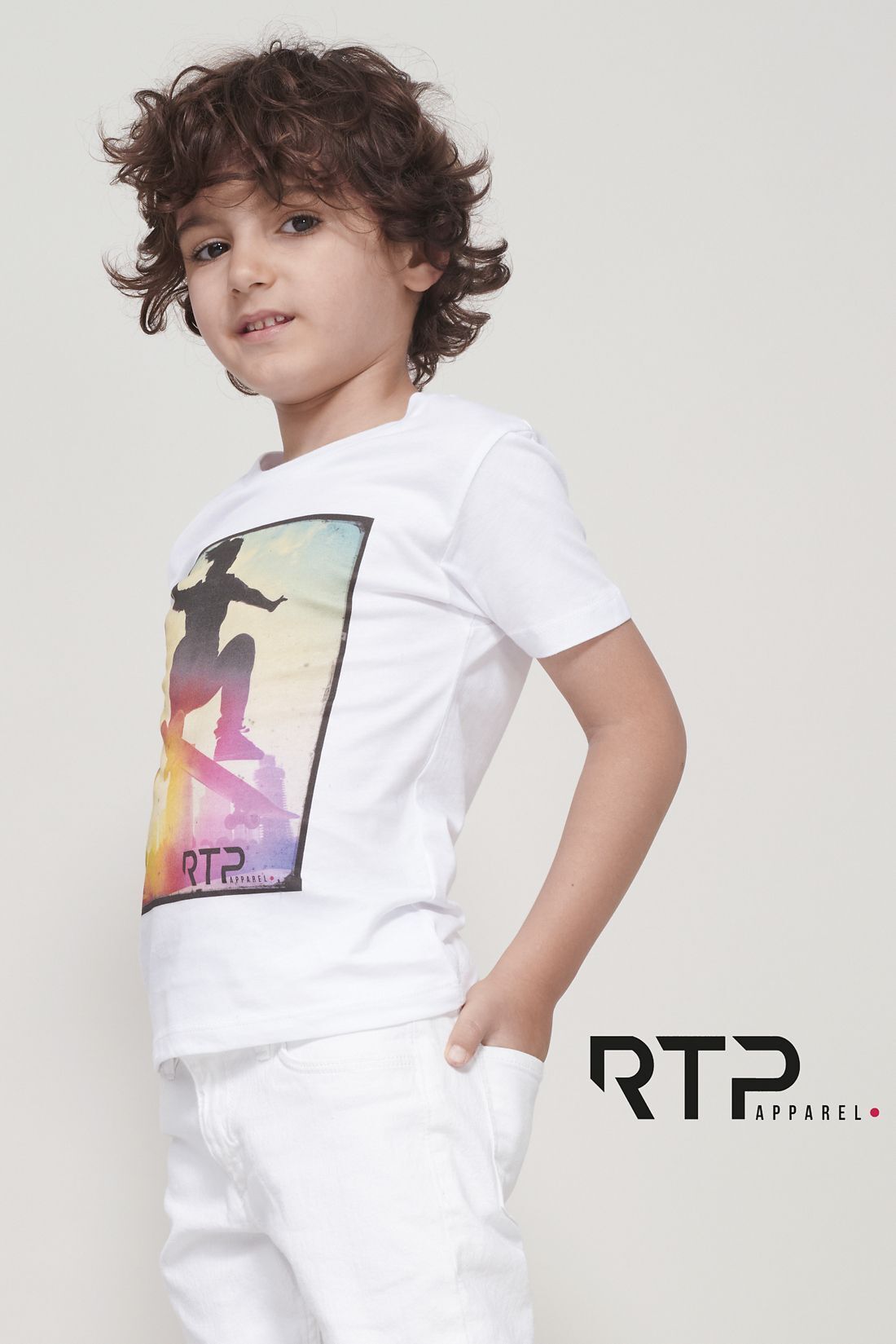 ДЕТСКАЯ ФУТБОЛКА ИЗ КРОЕНОГО ТРИКОТАЖА С КОРОТКИМ РУКАВОМ. Покрой и пошив с натуральной отделкой для более мягкого качества; Круглый ребристый воротник и внутренняя горловина; Современный крой; Область печати спереди: 25 x 21 см, для детской футболки размера 6; Размер этой области варьируется в зависимости от размера изделия (см. таблицу размеров области печати)