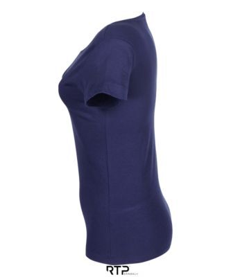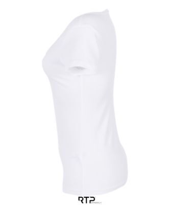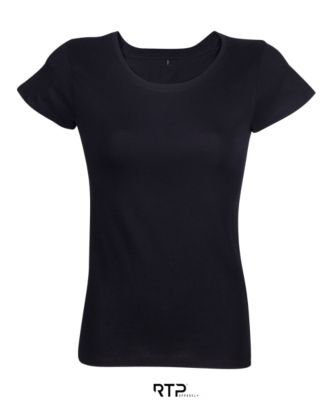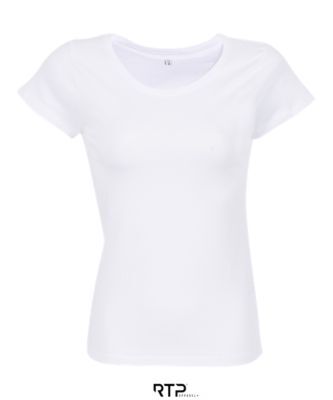 ЖЕНСКАЯ ФУТБОЛКА ИЗ КРОЕНОГО ТРИКОТАЖА С КОРОТКИМ РУКАВОМ. Вырезано и сшито; Круглый ребристый воротник и внутренняя горловина; Современный покрой; Площадь печати спереди: 44 x 29 см, для женской футболки размера M; Размер этой области зависит от размера изделия (см. таблицу размеров области печати).; Продается по 10 штук в упаковке одного цвета и размера