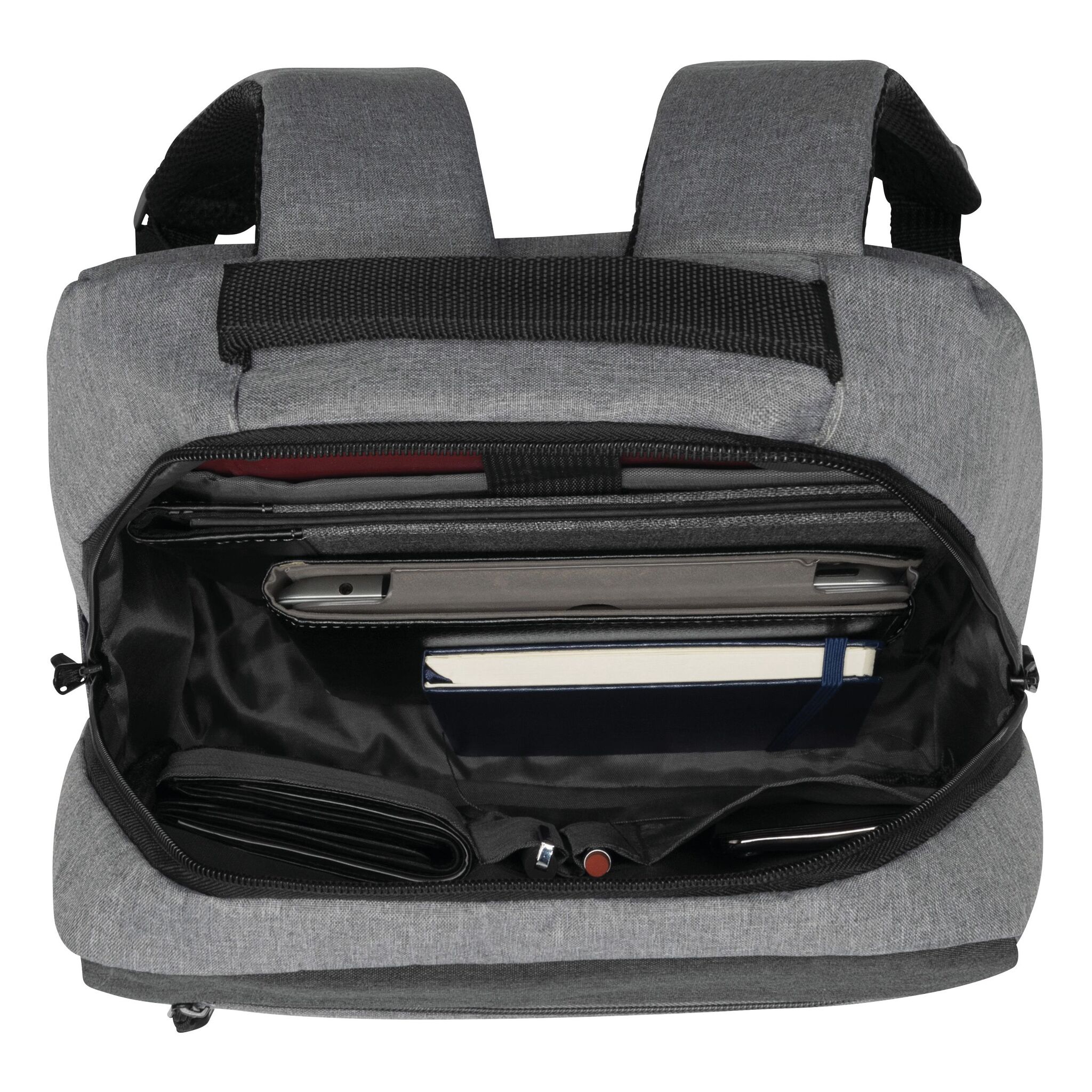 Рюкзак NORDIC LINE : 2 передних кармана на молнии, основное отделение на молнии и мягкий внутренний карман для ноутбука или планшета, органайзер с 4-мя накладными карманами, 1 накладной карман сбоку, ручка для переноски с мягкой подкладкой, мягкие эргономичные плечевые ремни и мягкая прокладка в стороне, прилегающей к спине
