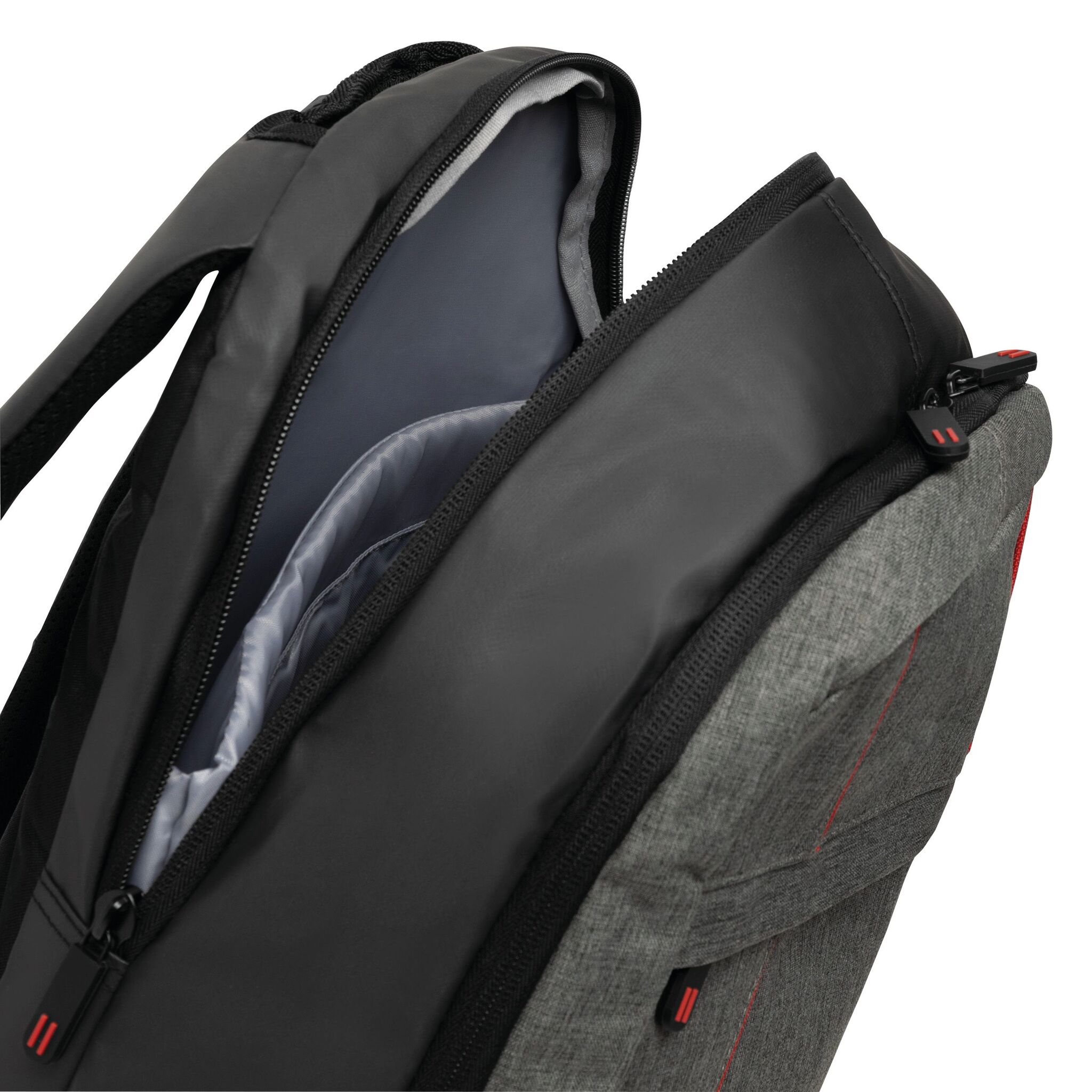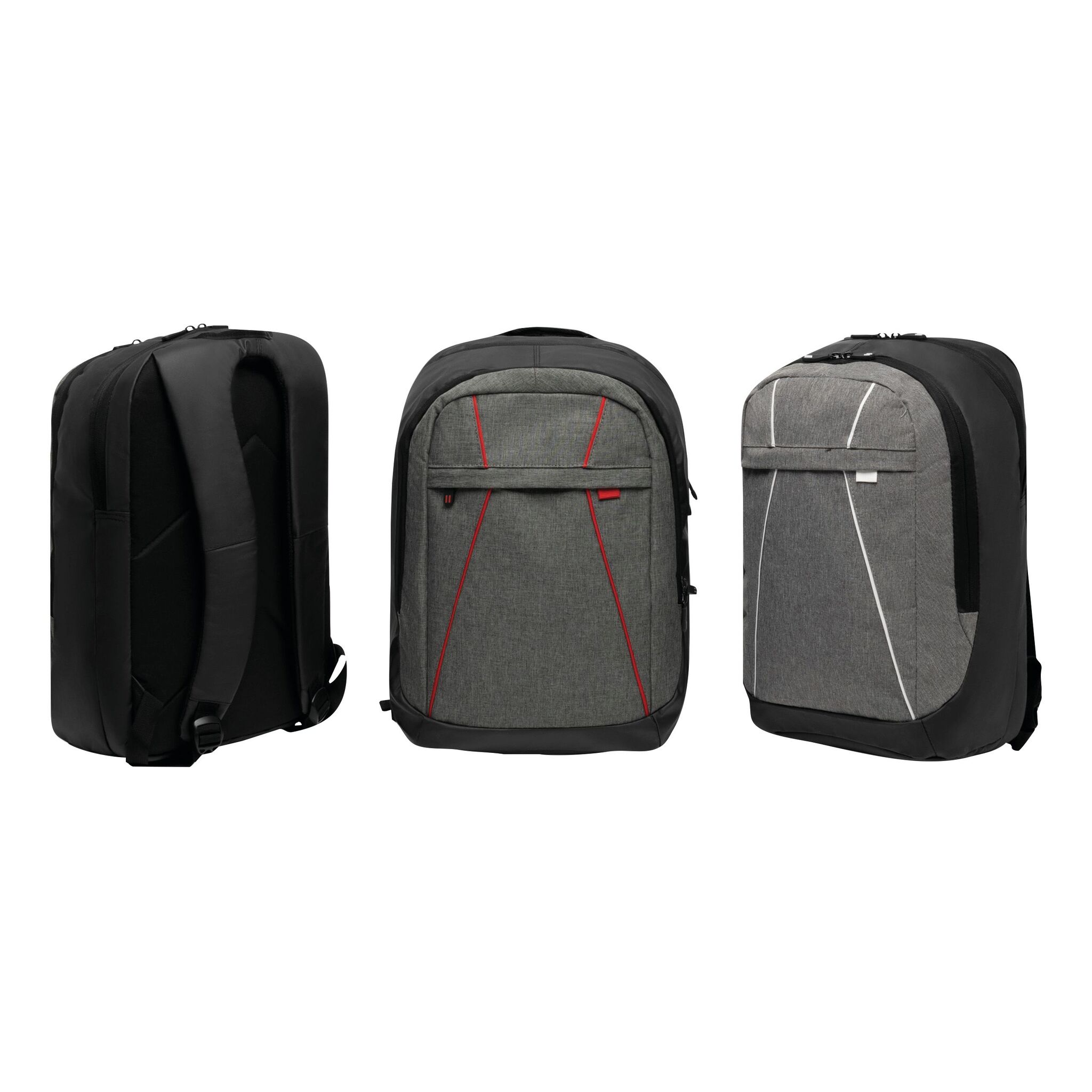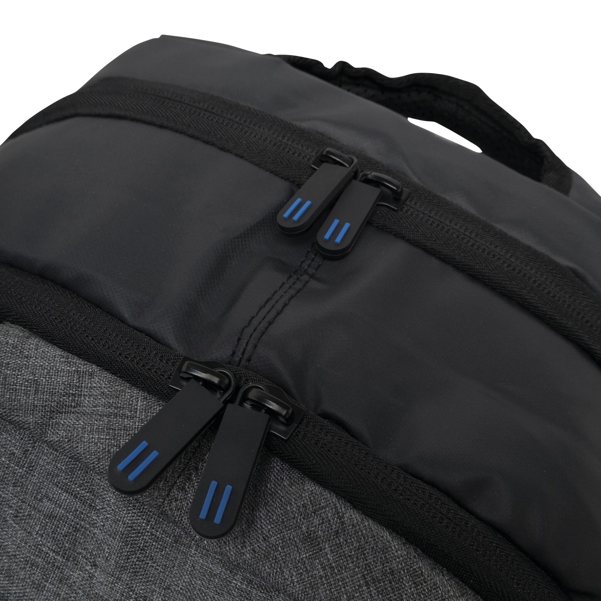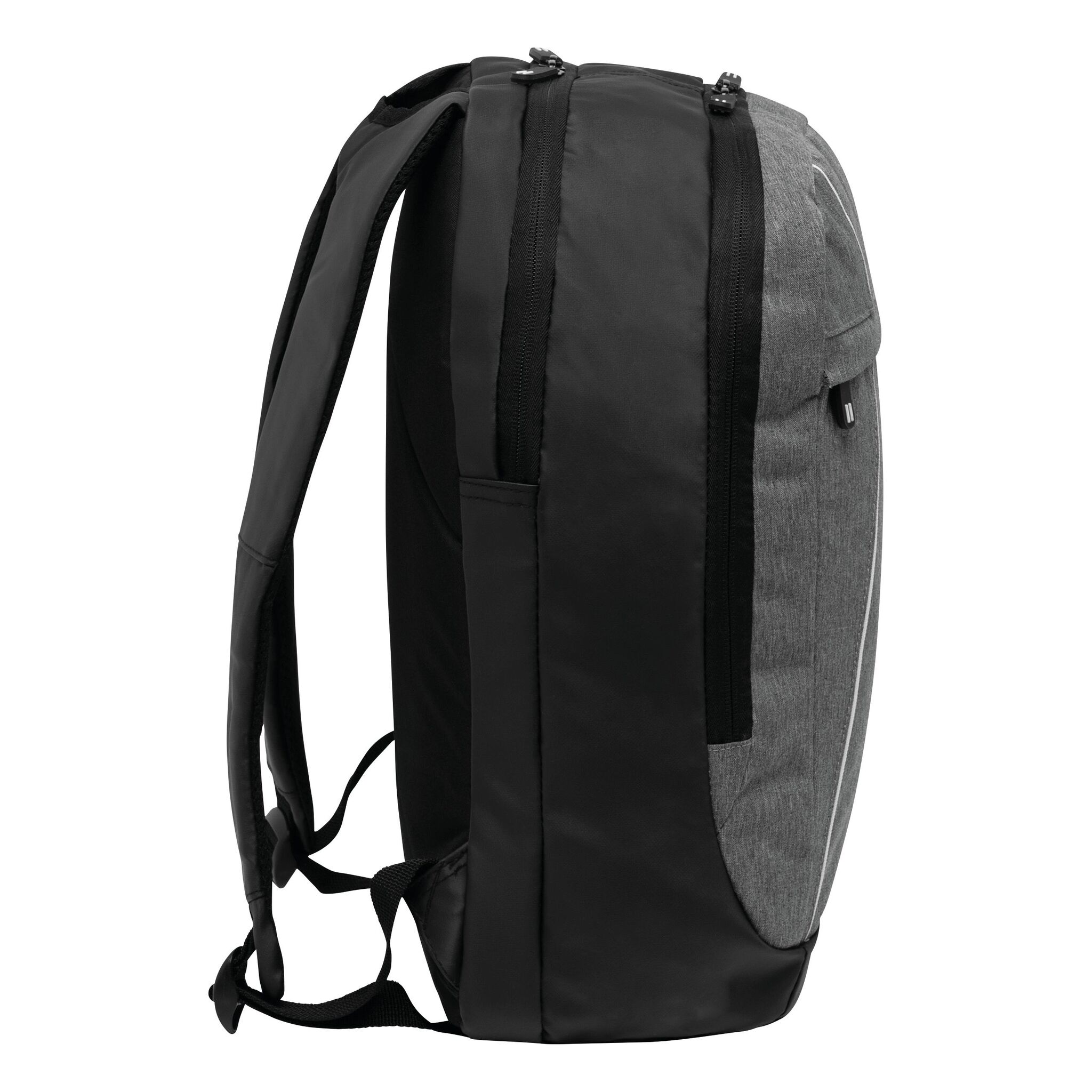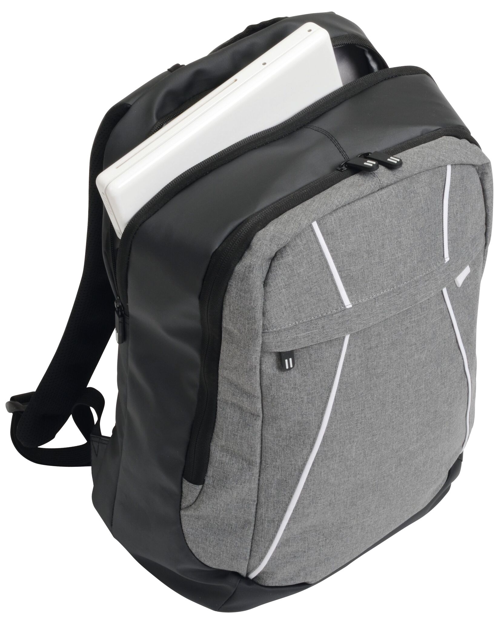 Рюкзак SPLIT : 1 наружный карман на молнии, 2 главных отдела на молнии, один главный отдел с уплотненным карманом для ноутбука и 1 вставным карманом, другой главный отдел с маленьким органайзером, переносная ручка, уплотненные наплечные лямки и спинка