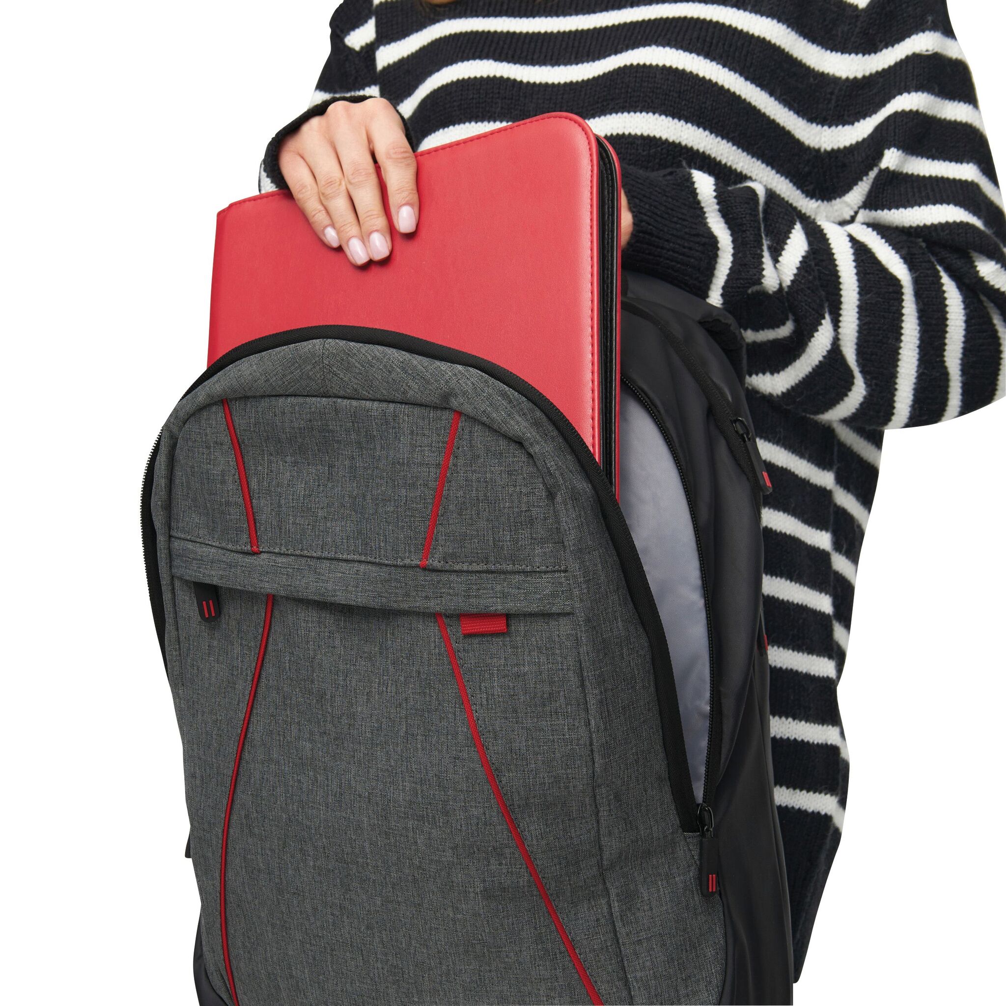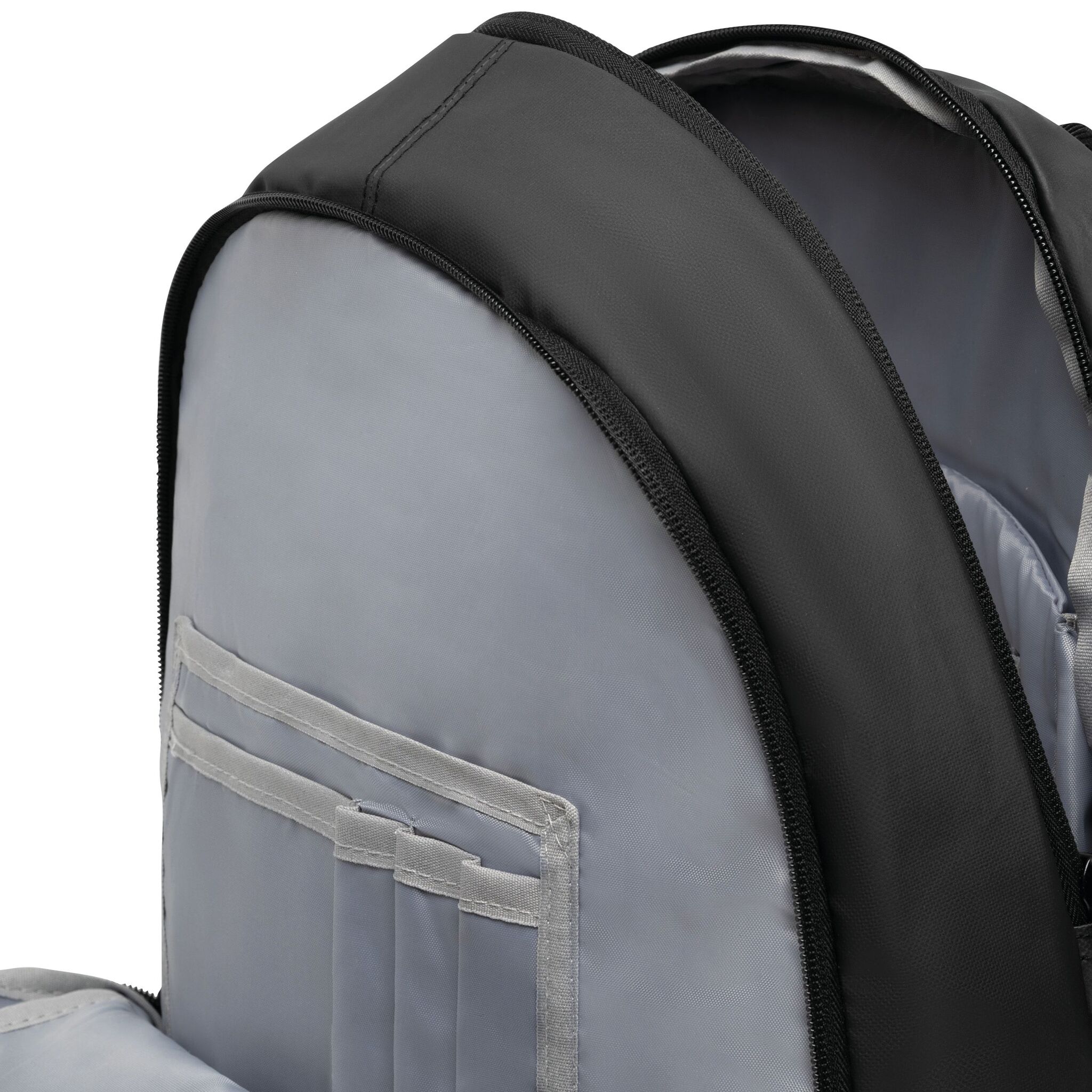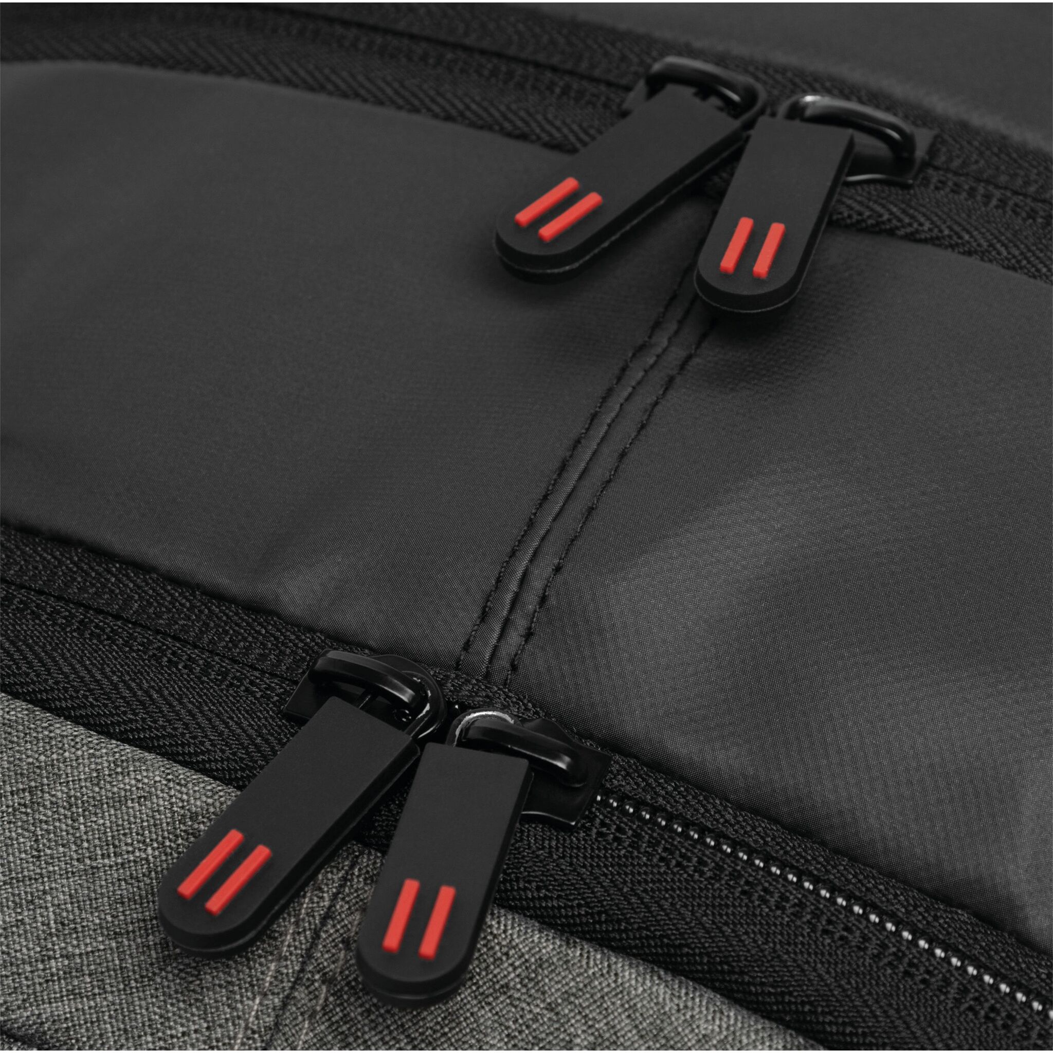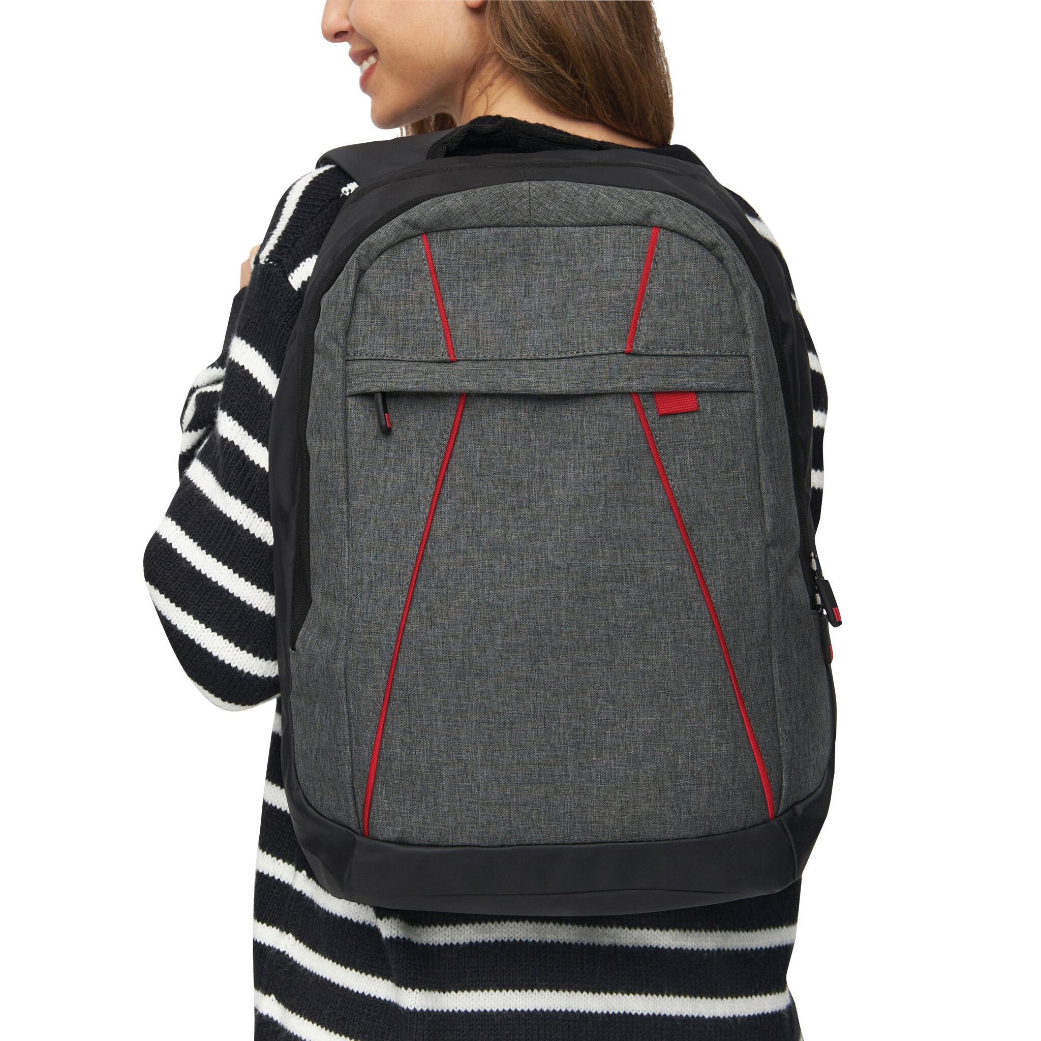Рюкзак SPLIT : 1 наружный карман на молнии, 2 главных отдела на молнии, один главный отдел с уплотненным карманом для ноутбука и 1 вставным карманом, другой главный отдел с маленьким органайзером, переносная ручка, уплотненные наплечные лямки и спинка